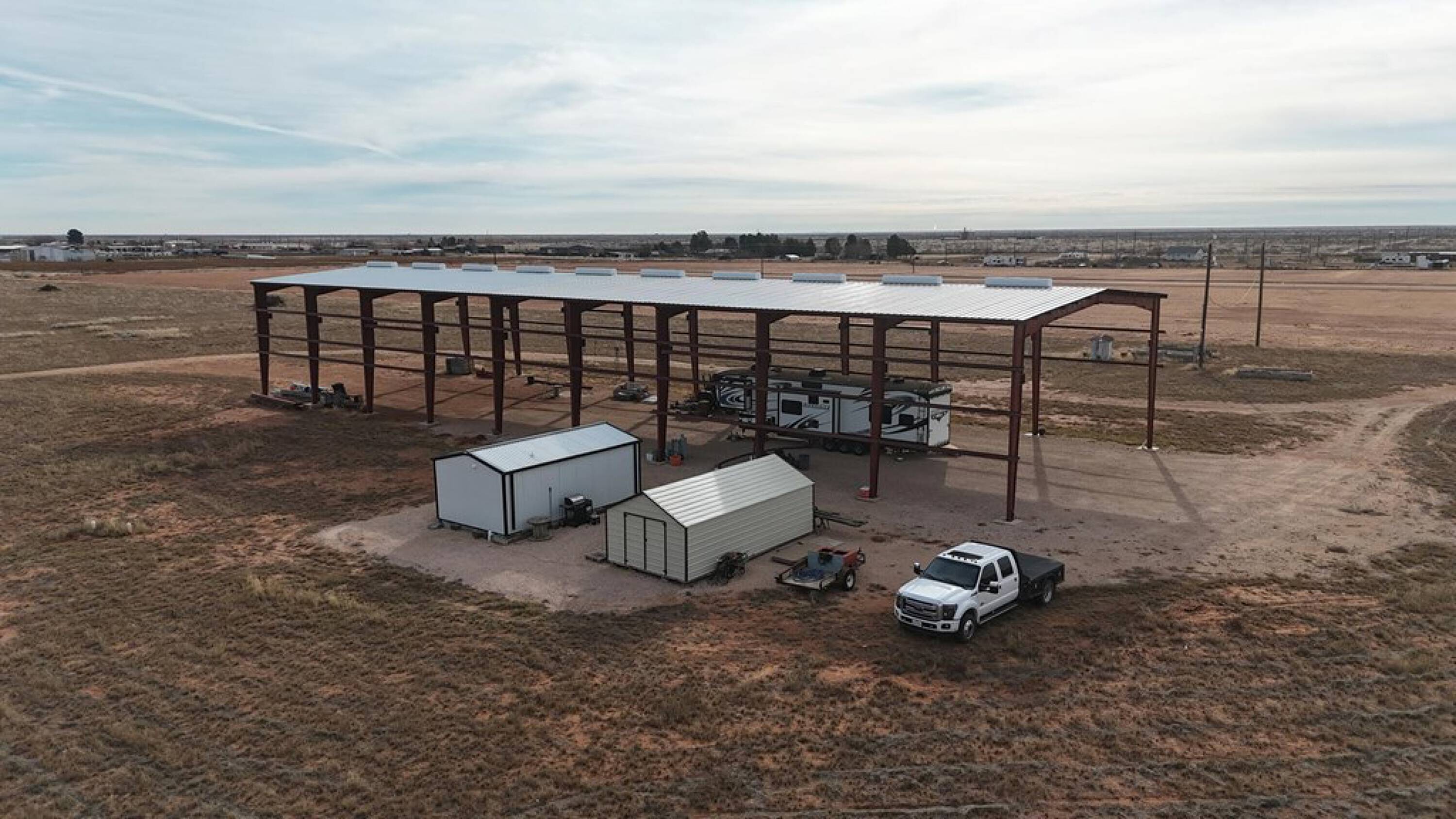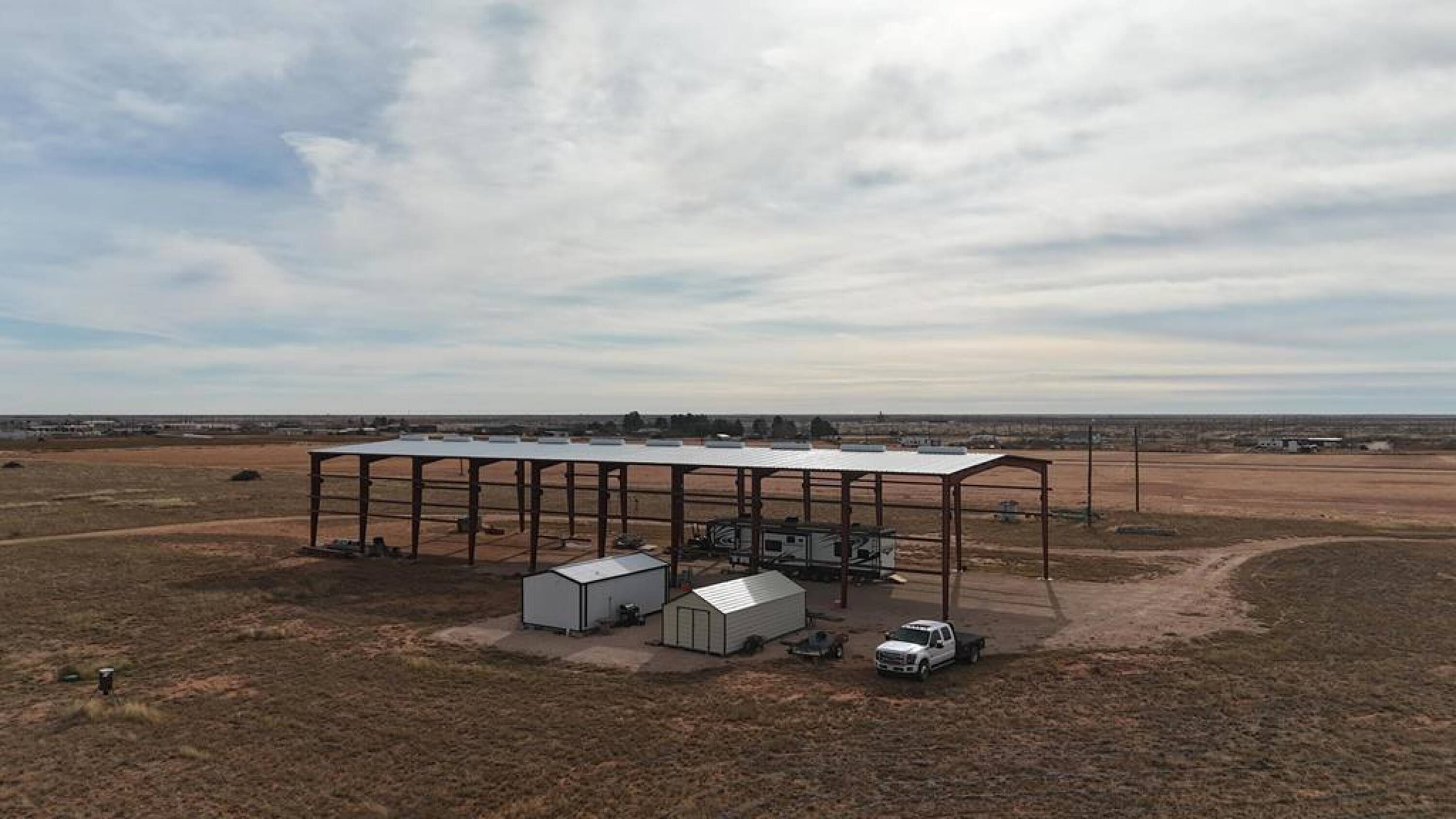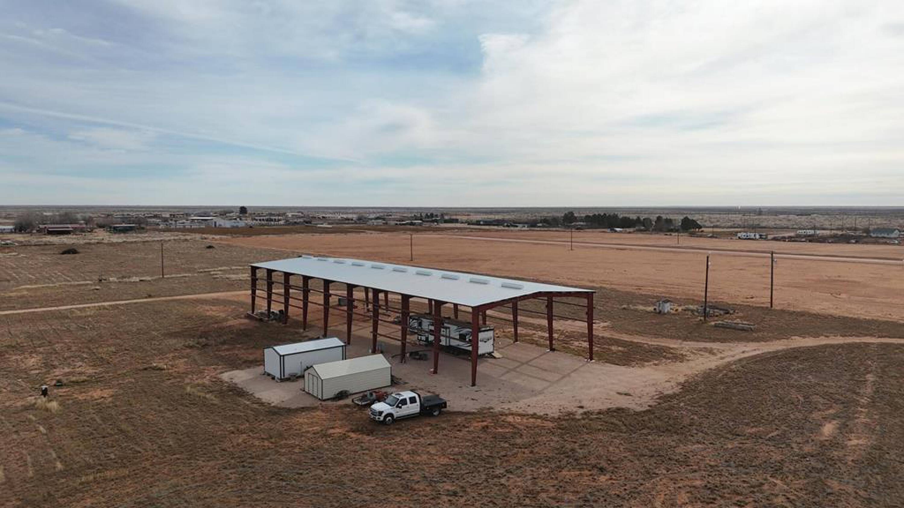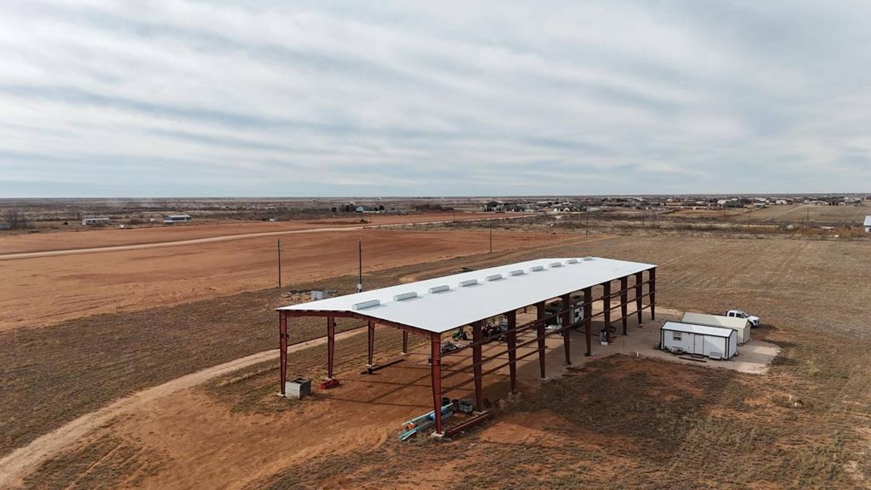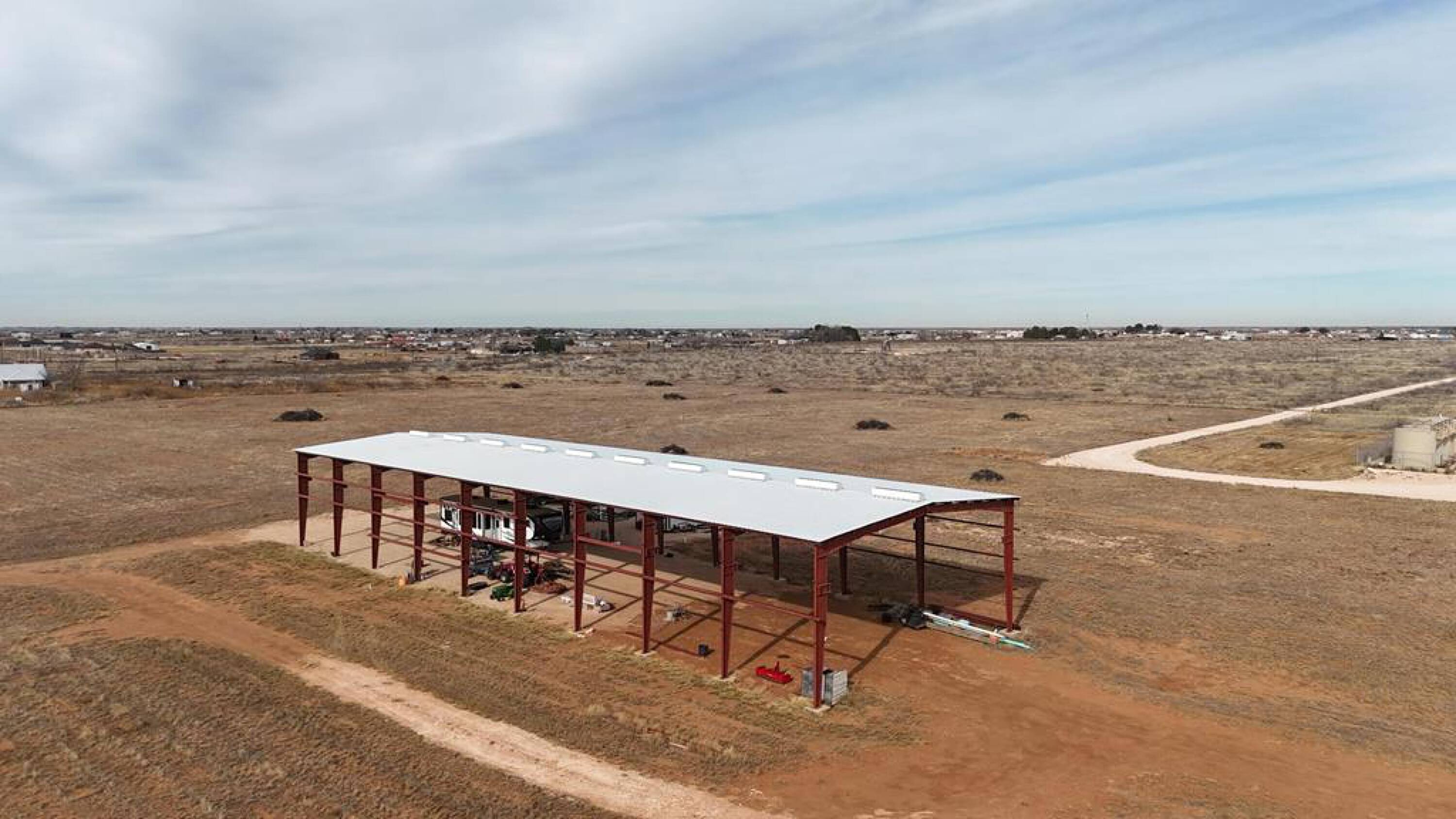 Land with infrastructure and a large steel building included.
