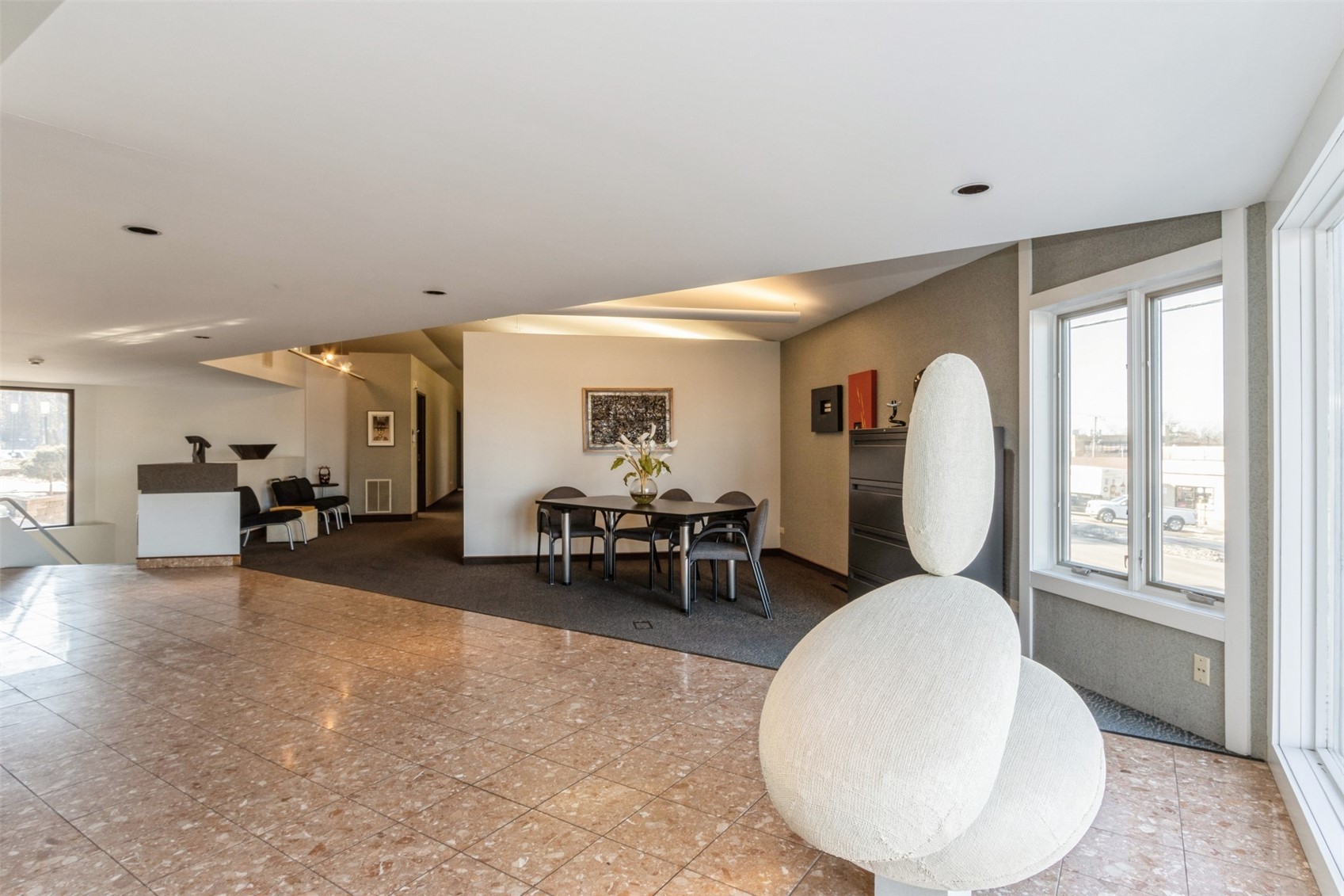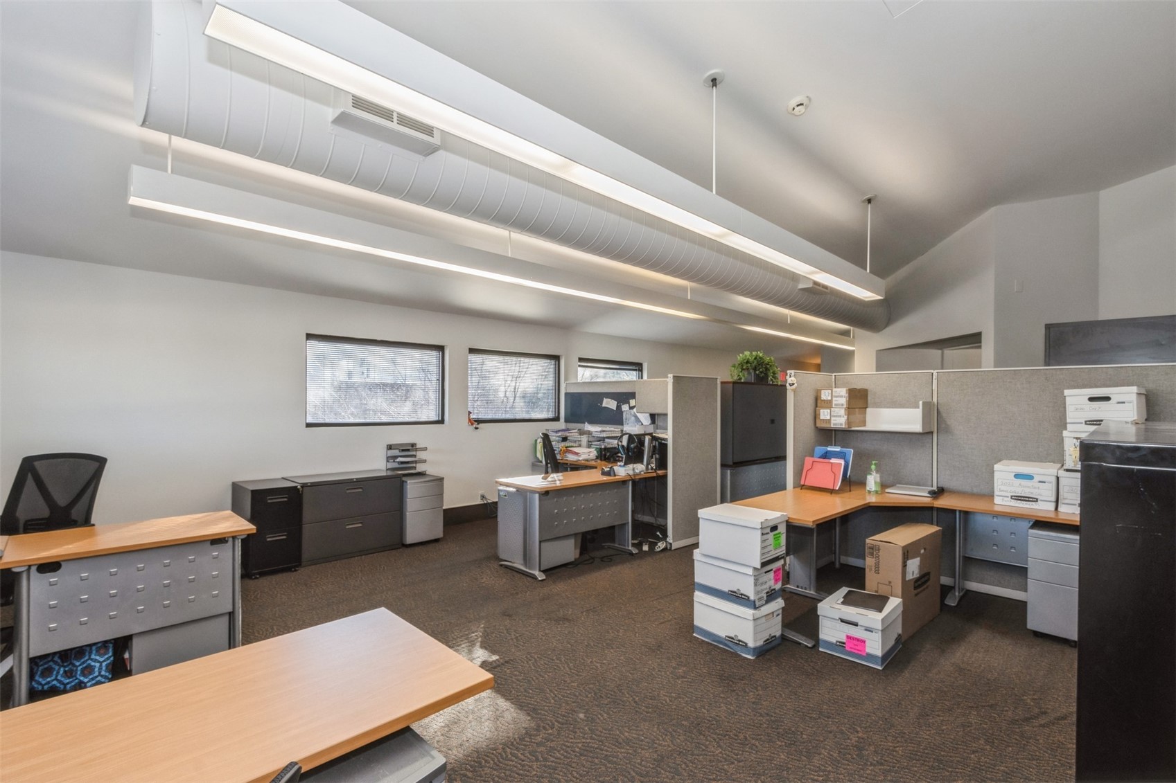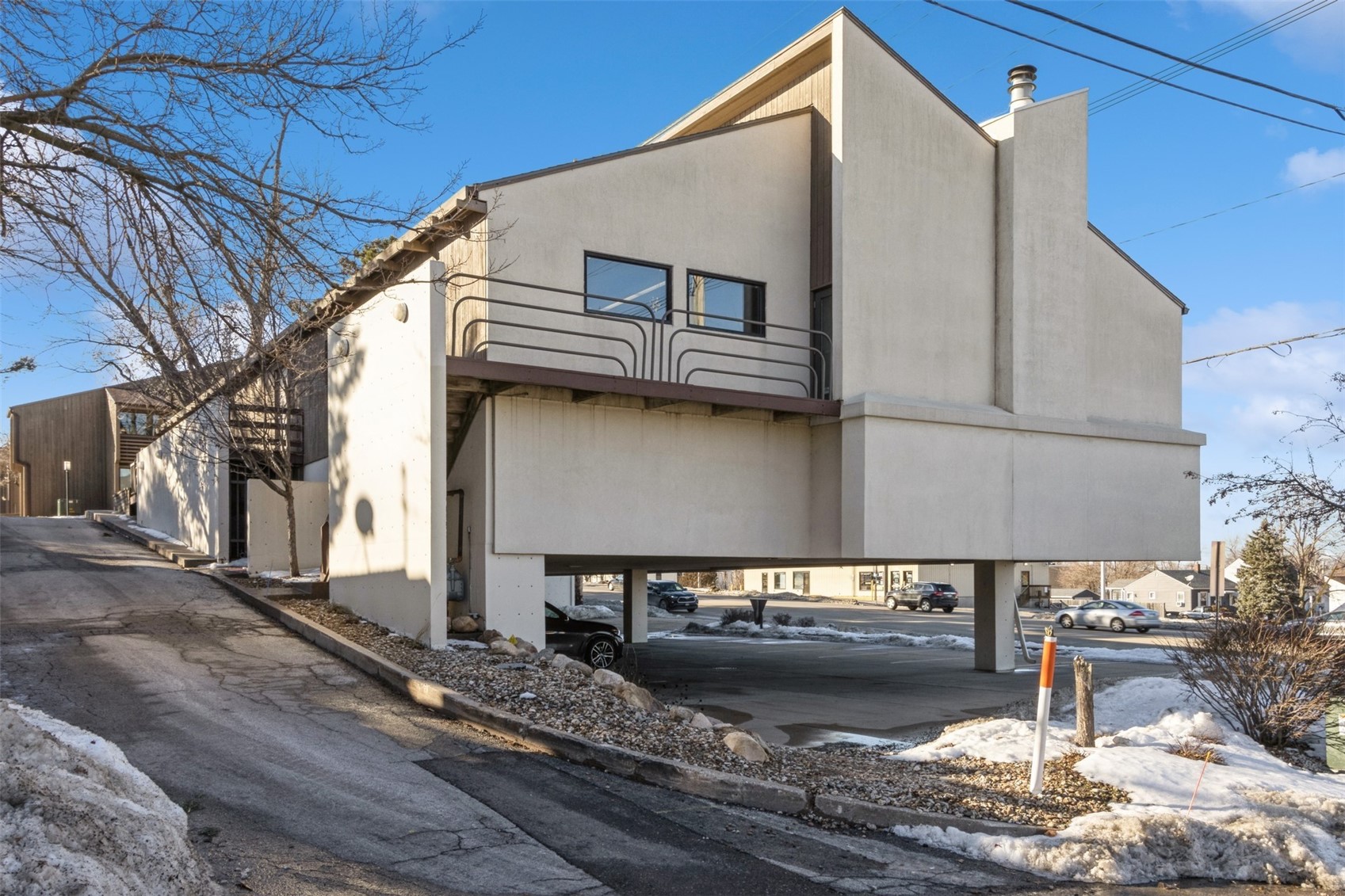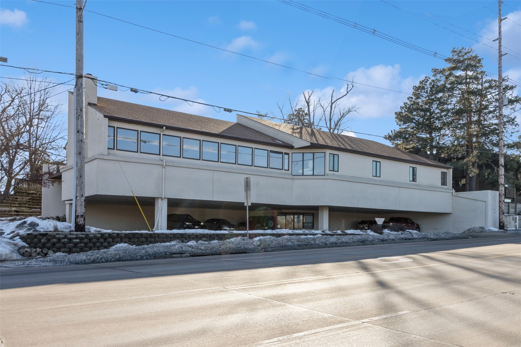 Architecturally unique office building featuring covered parking and flexible space.