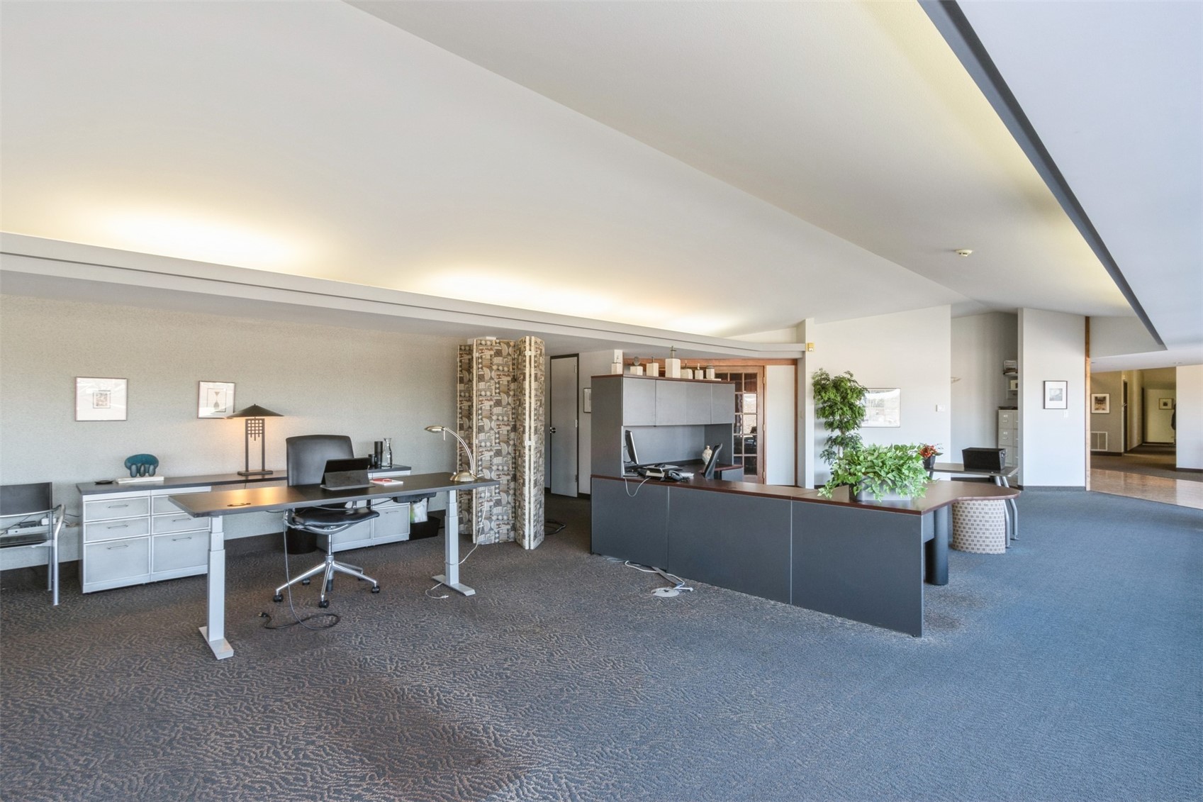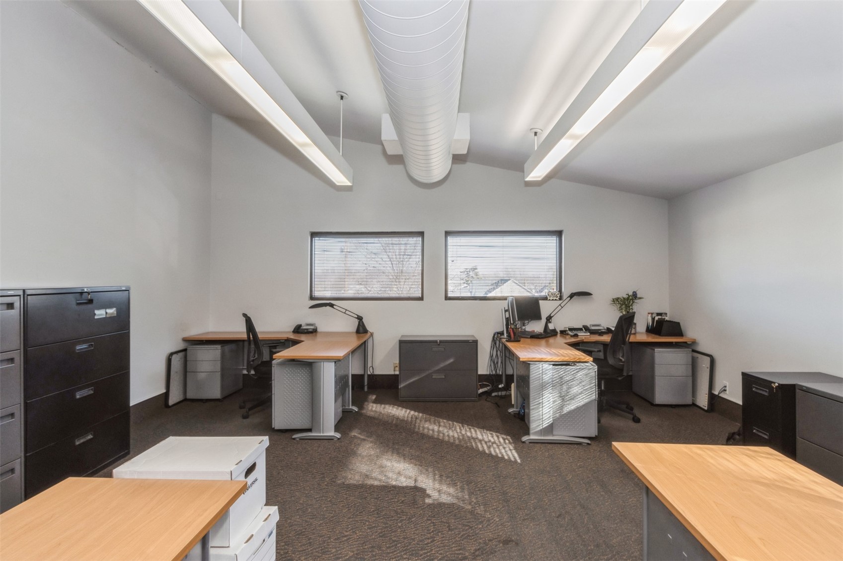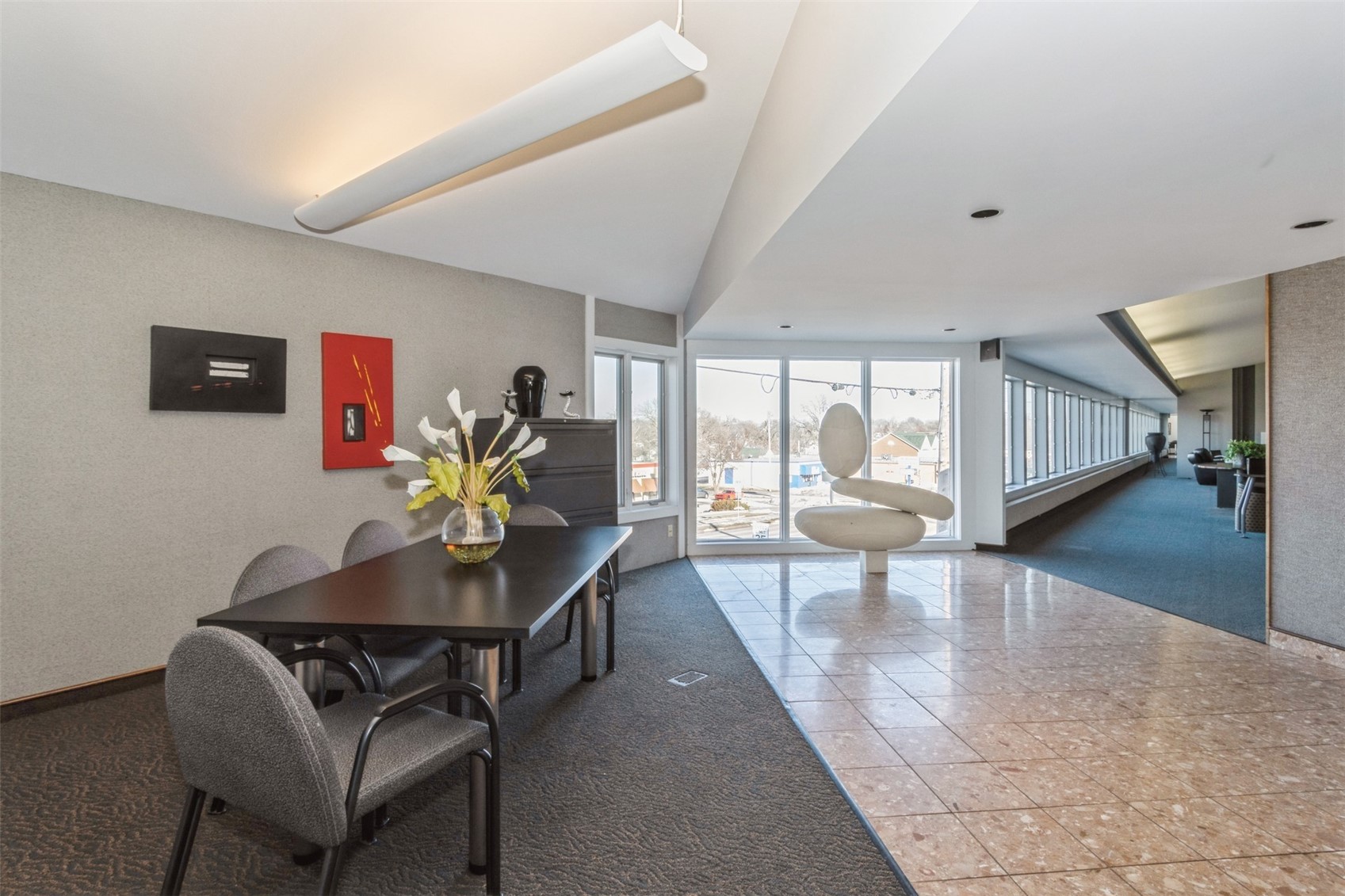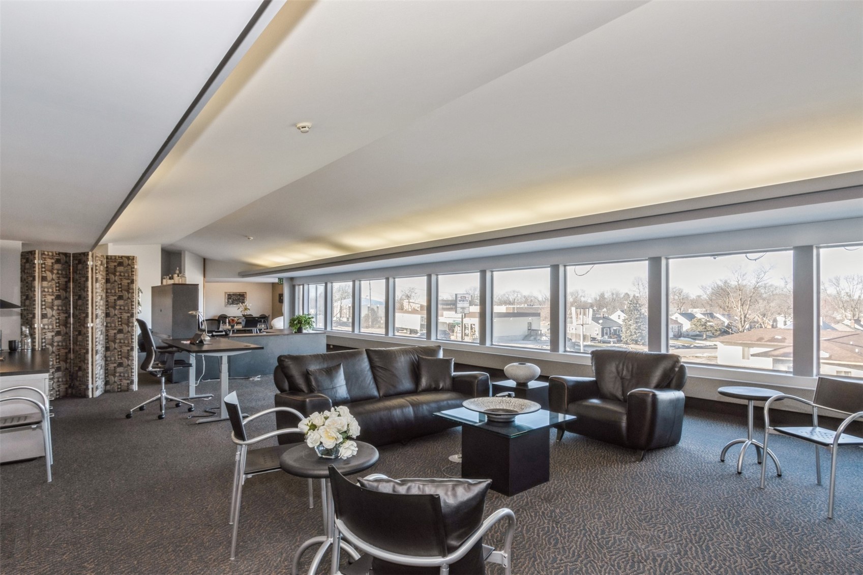Architecturally unique office building featuring covered parking and flexible space.