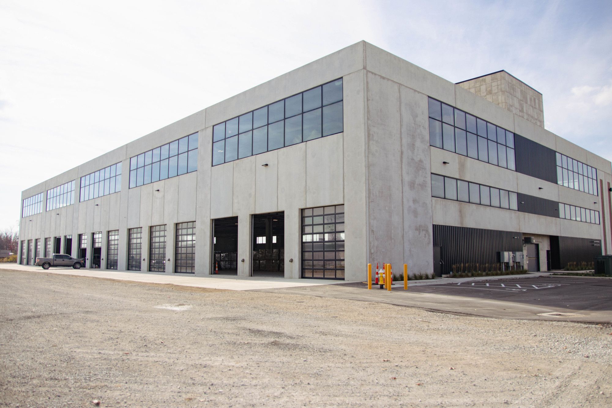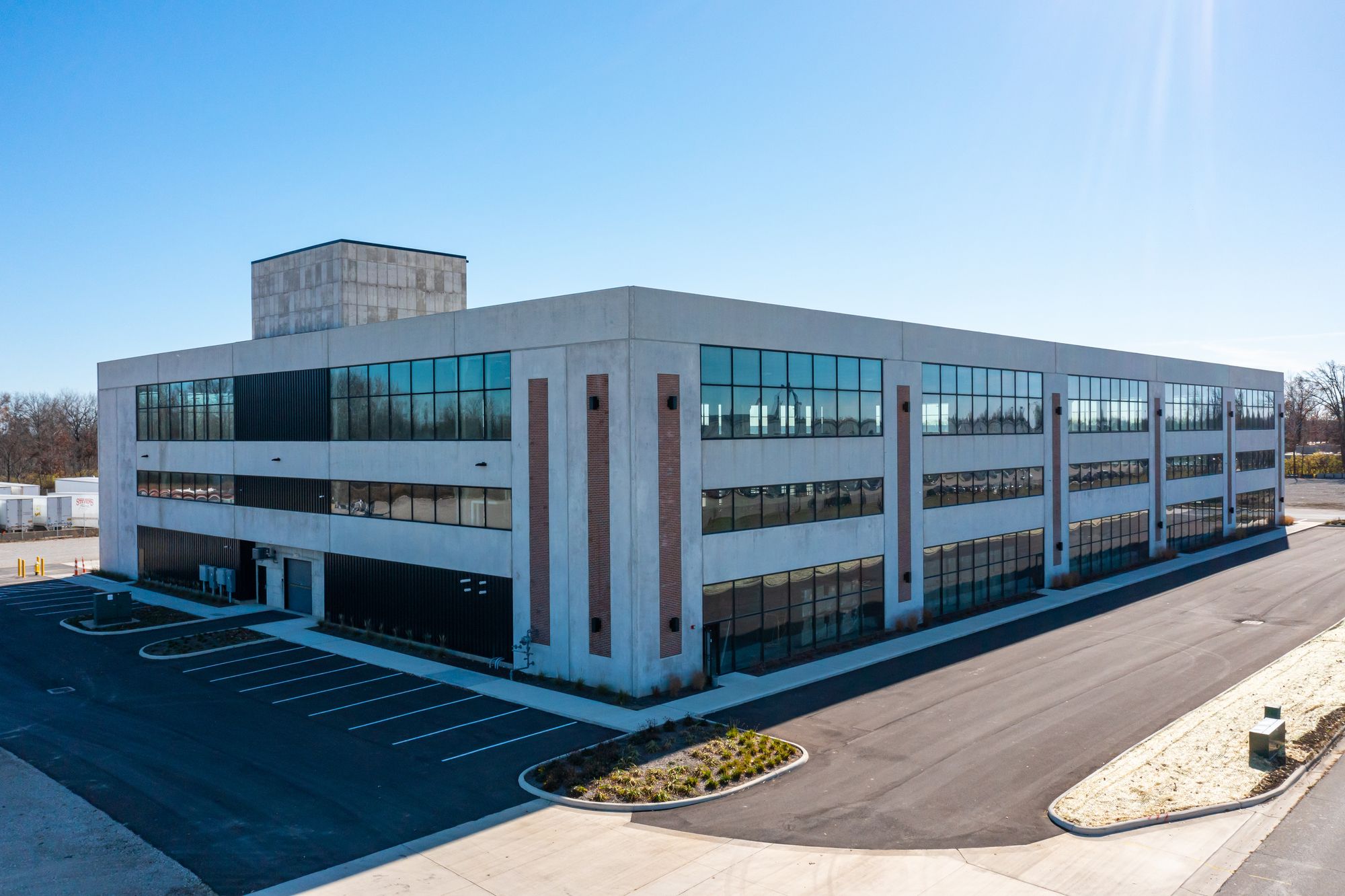 Two-story industrial/flex building with rooftop deck and freight elevator.