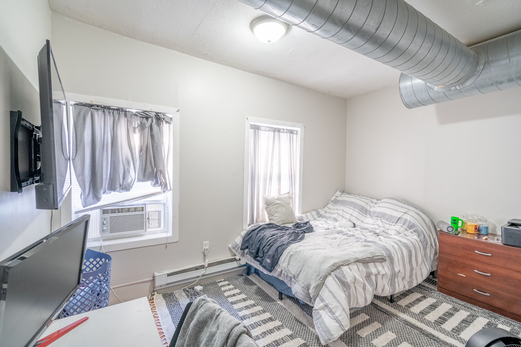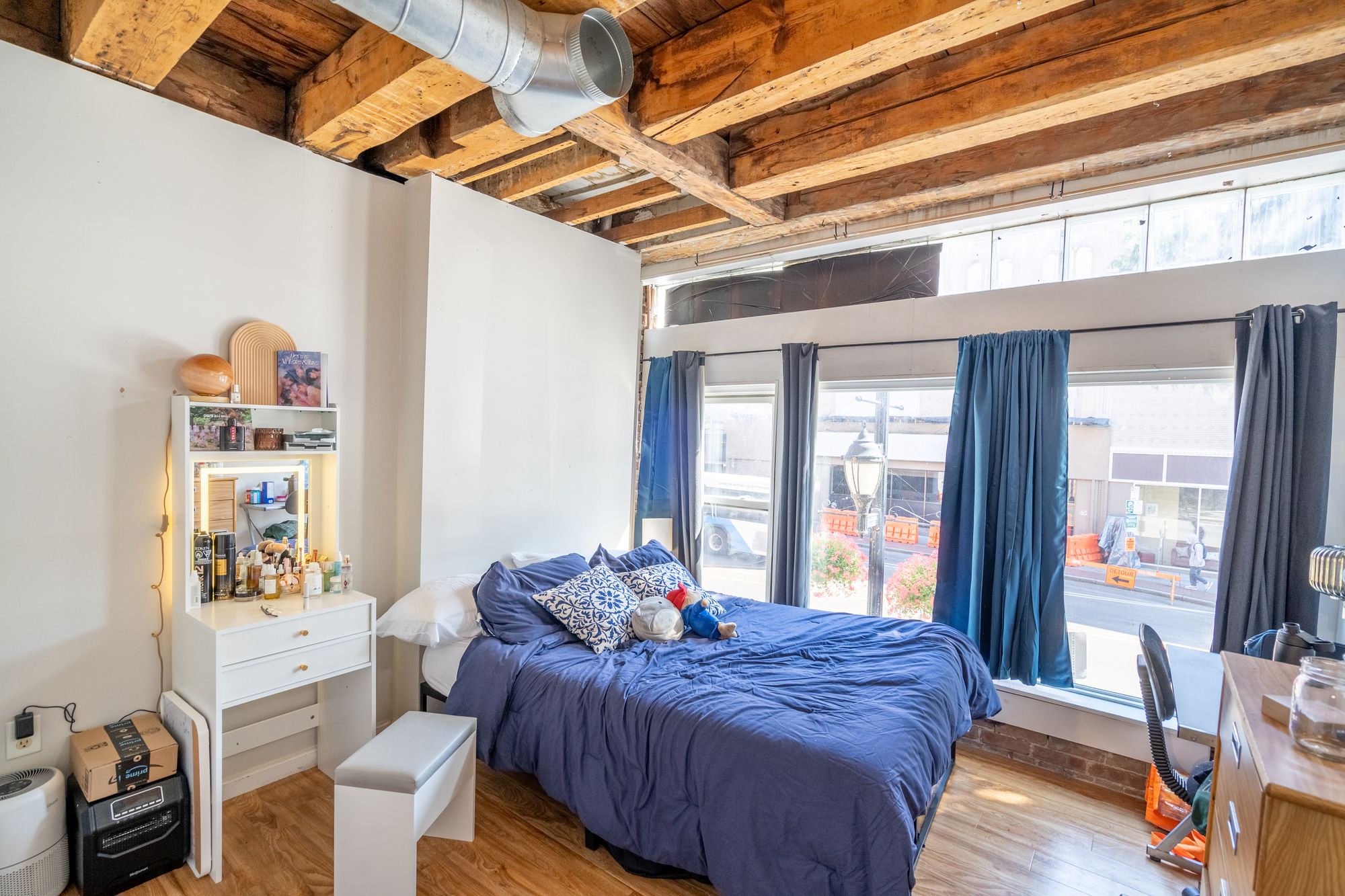 Two mixed-use buildings in a high-traffic, walkable downtown location.