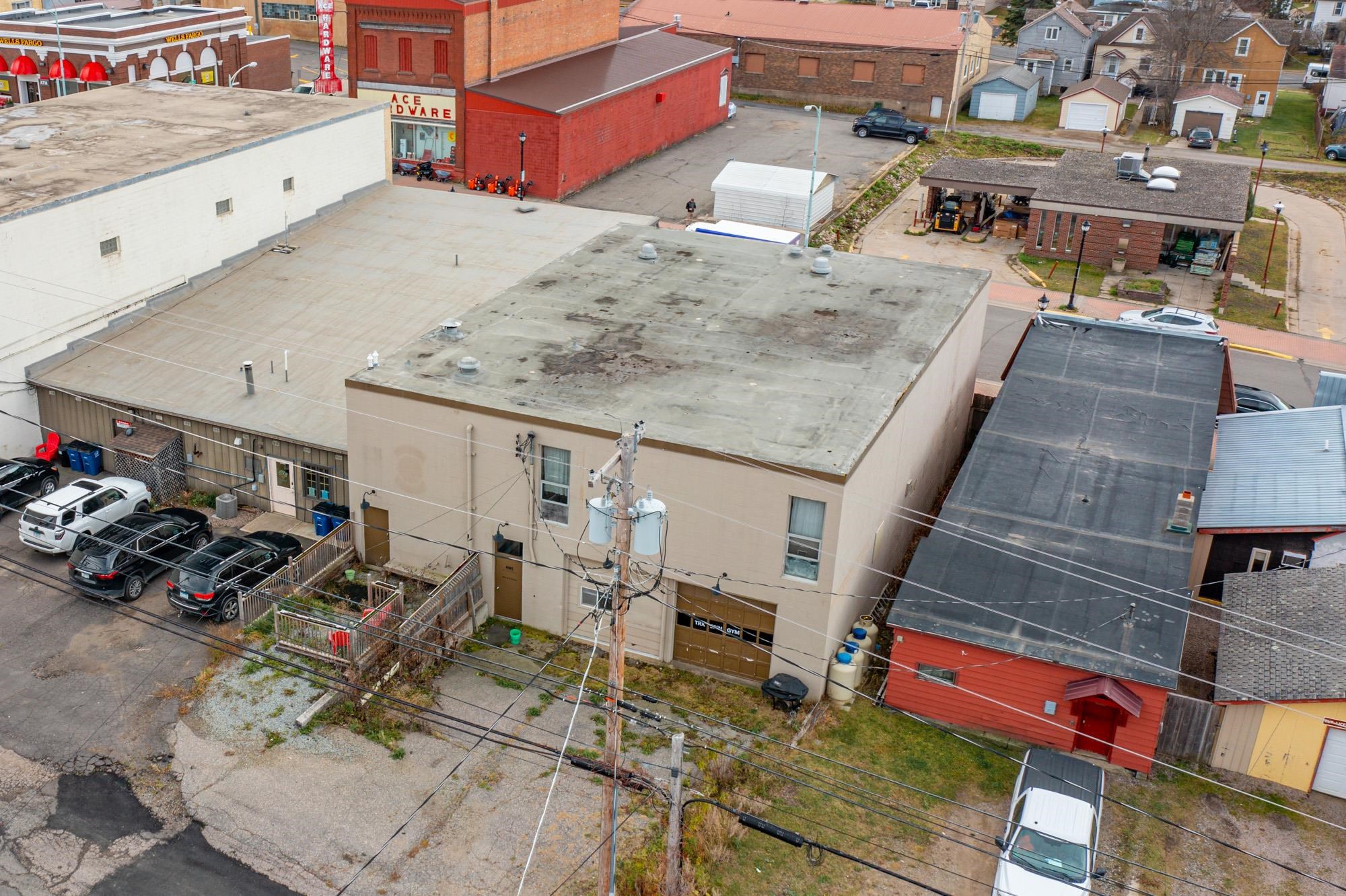 Two-level commercial building in downtown Ely with business potential.