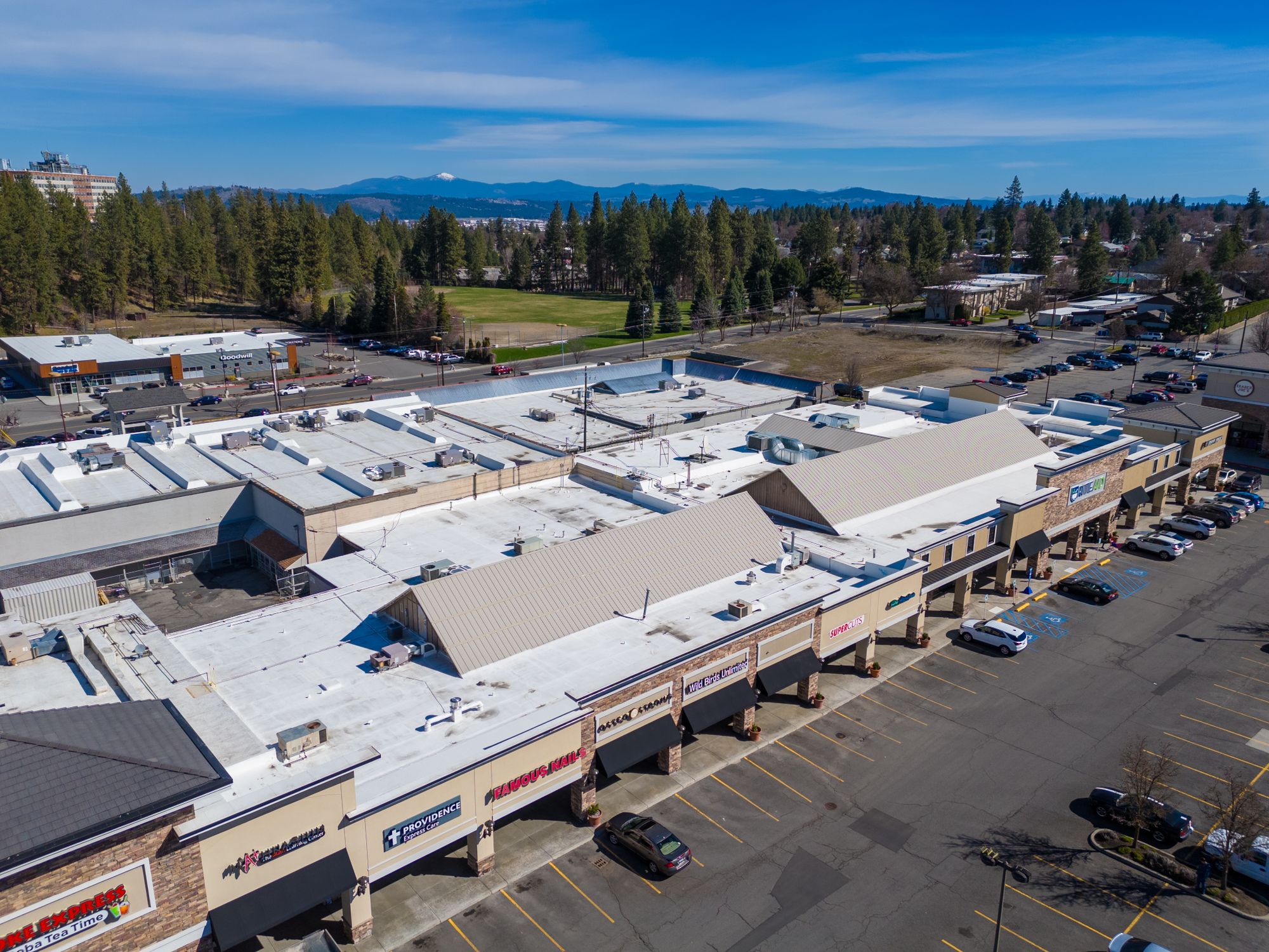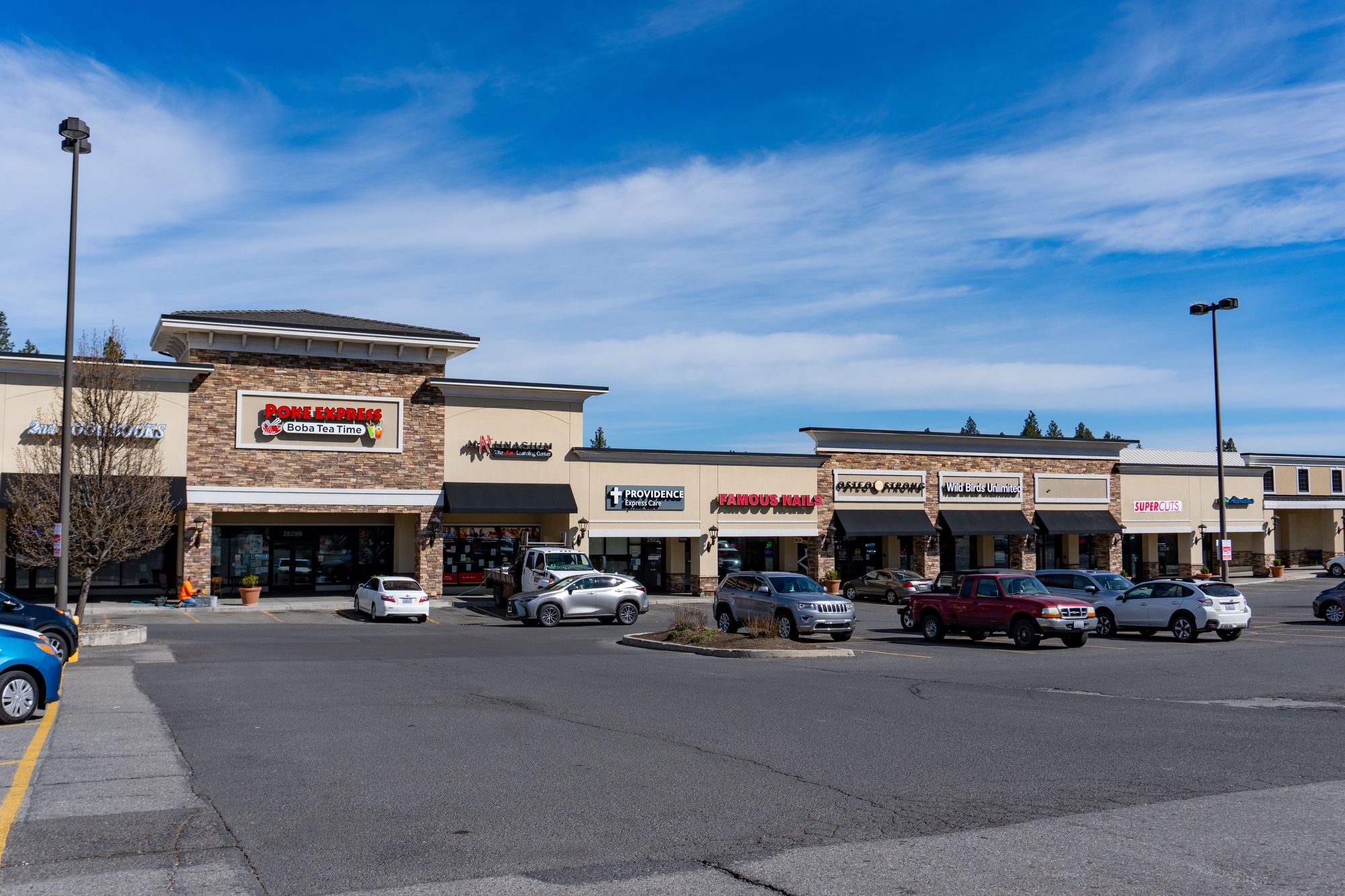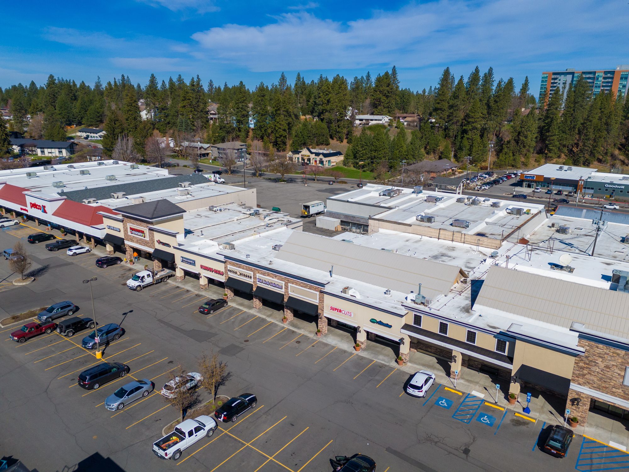 Large retail center on Spokane's South Hill, multiple spaces available.