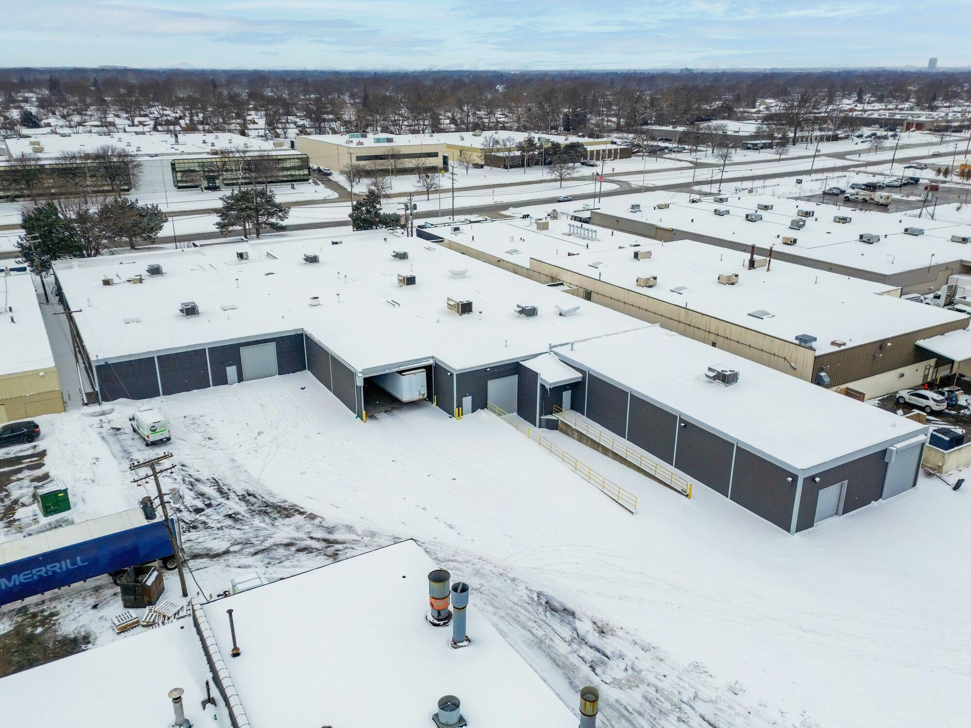 Warehouse/Manufacturing facility with heavy power, truckwell, and excess parking.