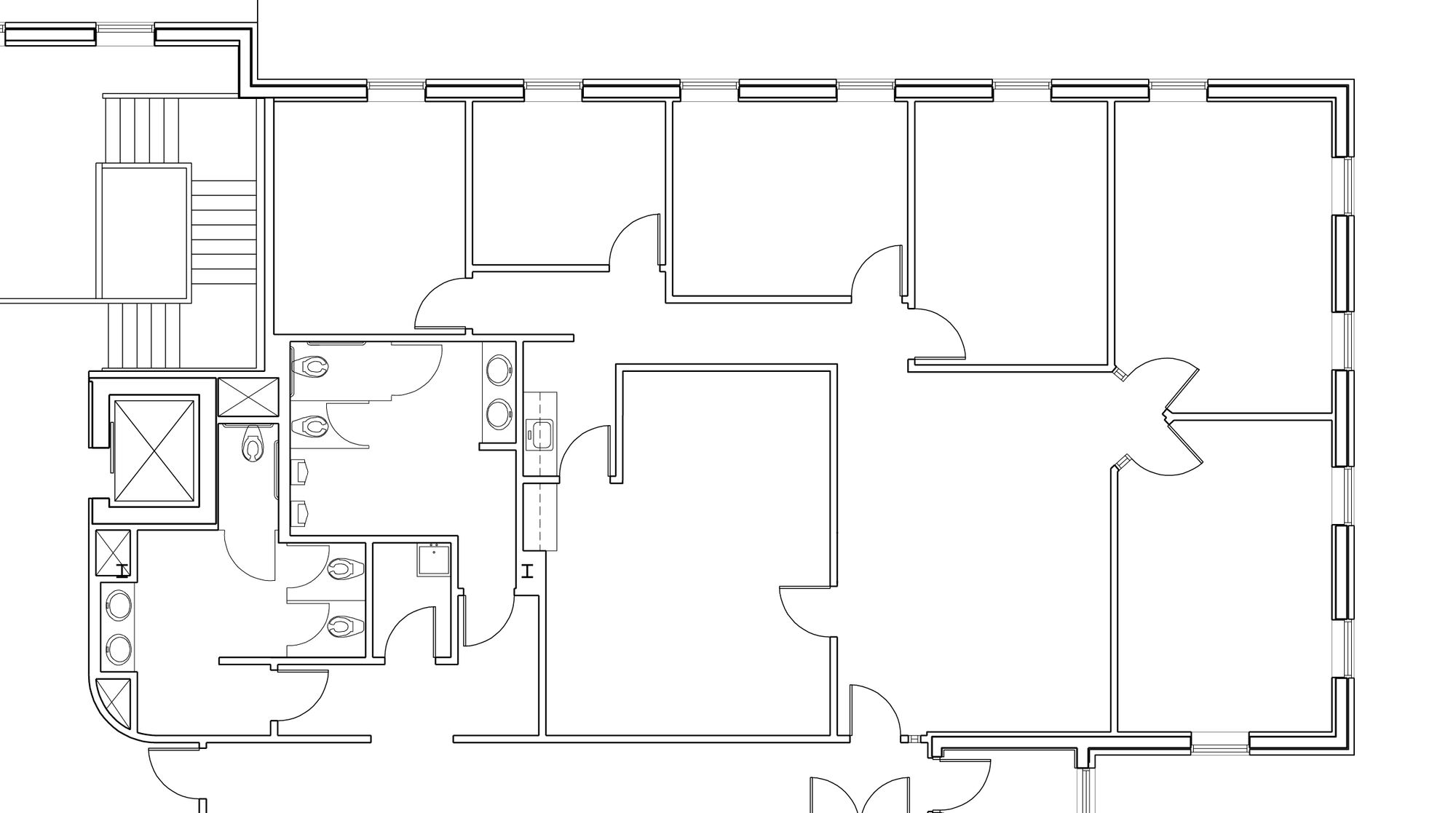 Two-story office building with recent renovations and basement storage.