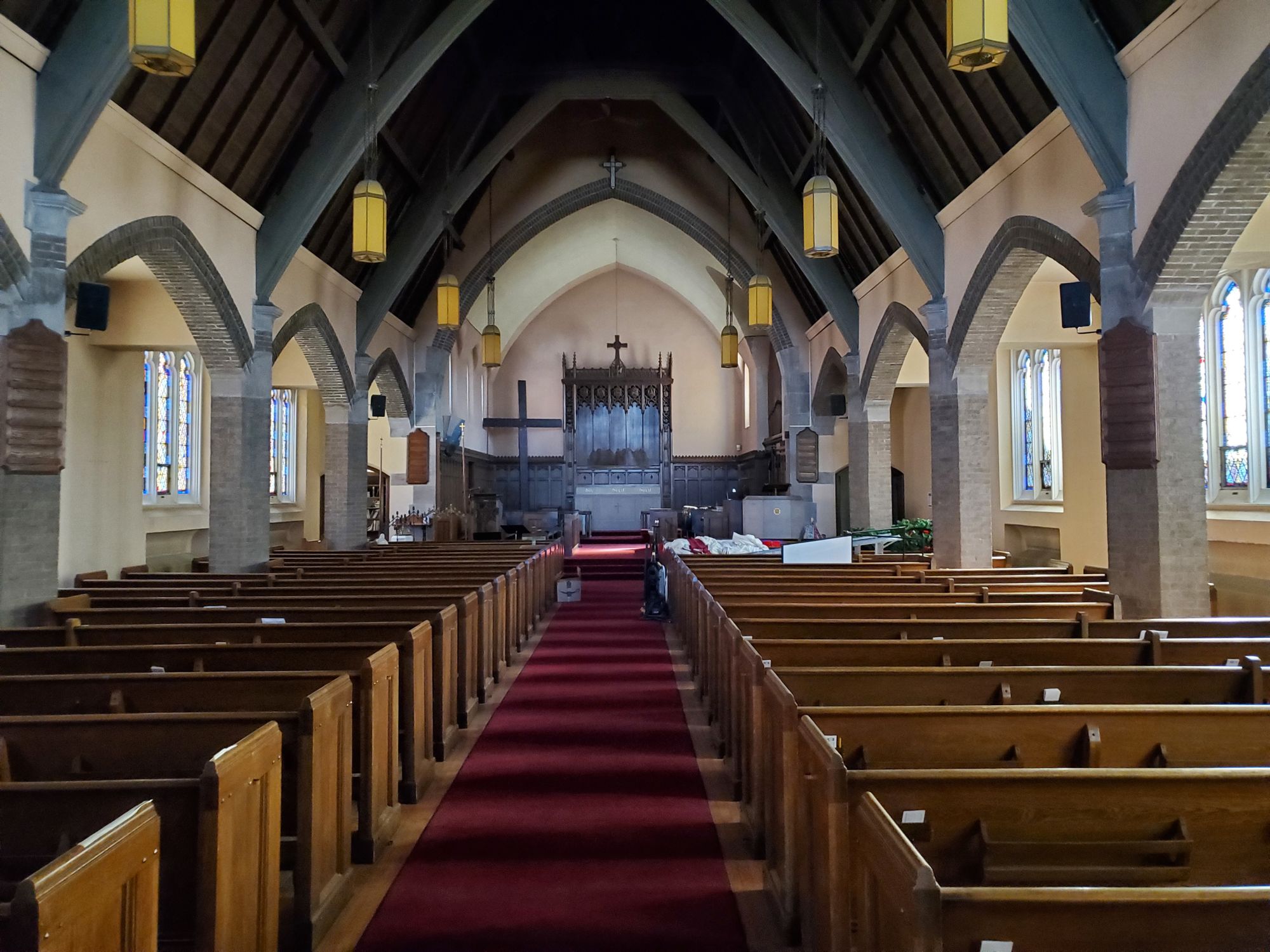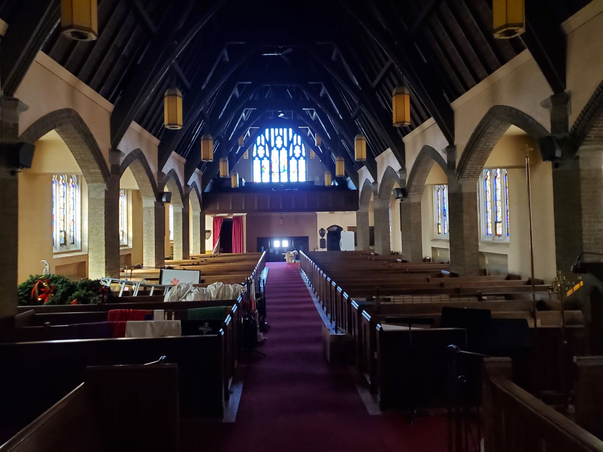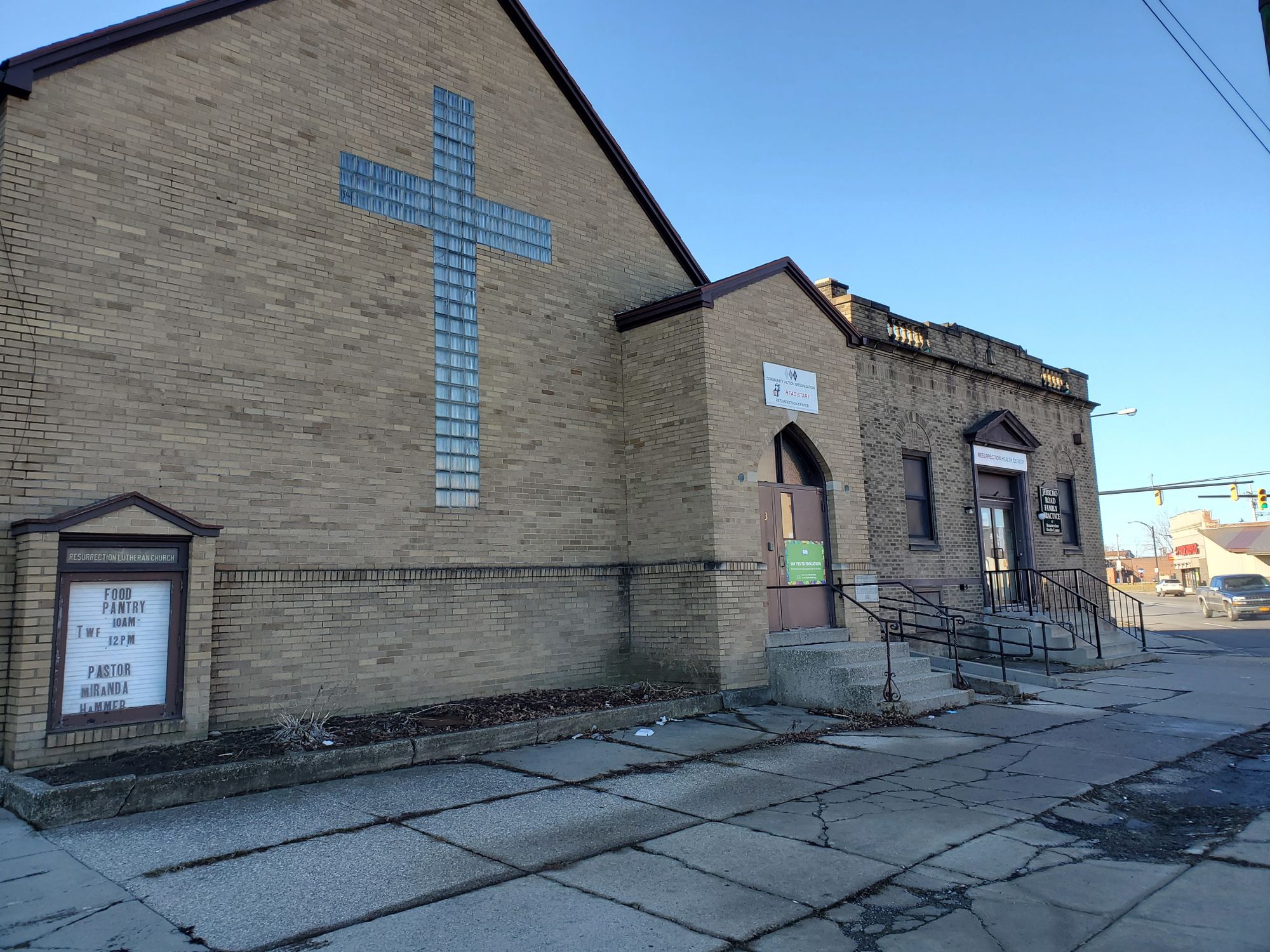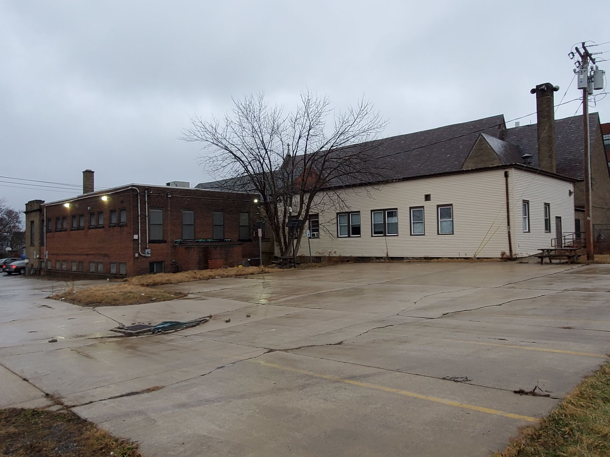 Six contiguous parcels with church, office, and community center.