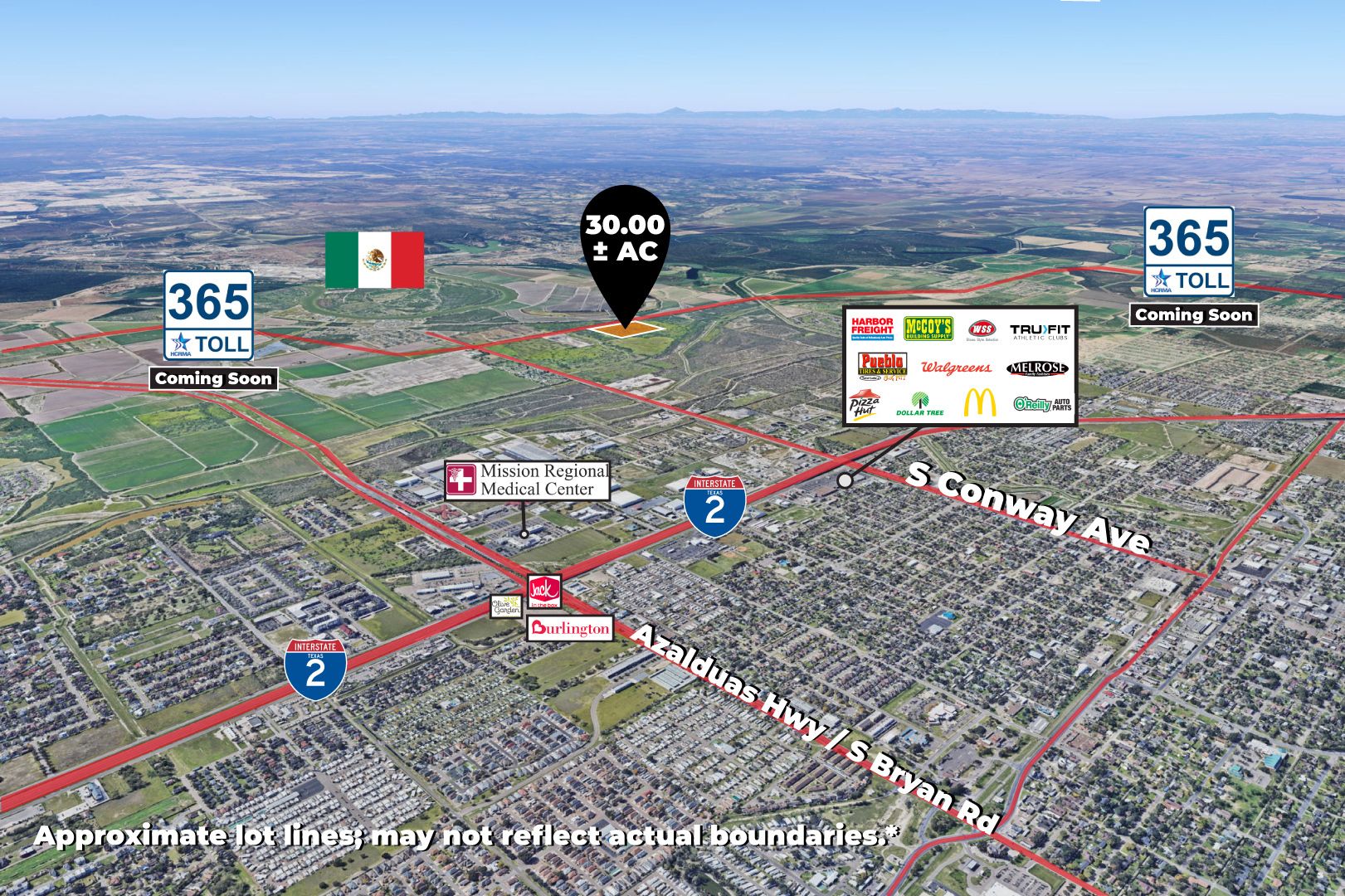 Premier development tract with frontage on Military Highway in Mission, TX.