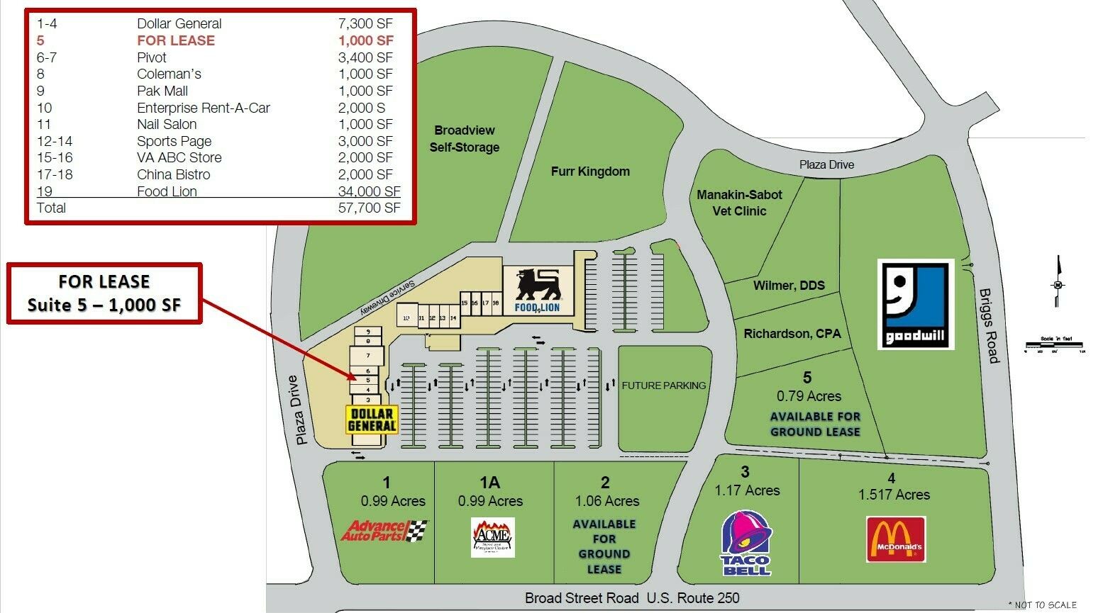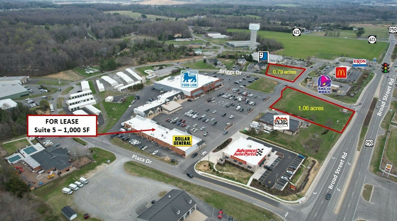 Retail space for lease near Food Lion and Dollar General.