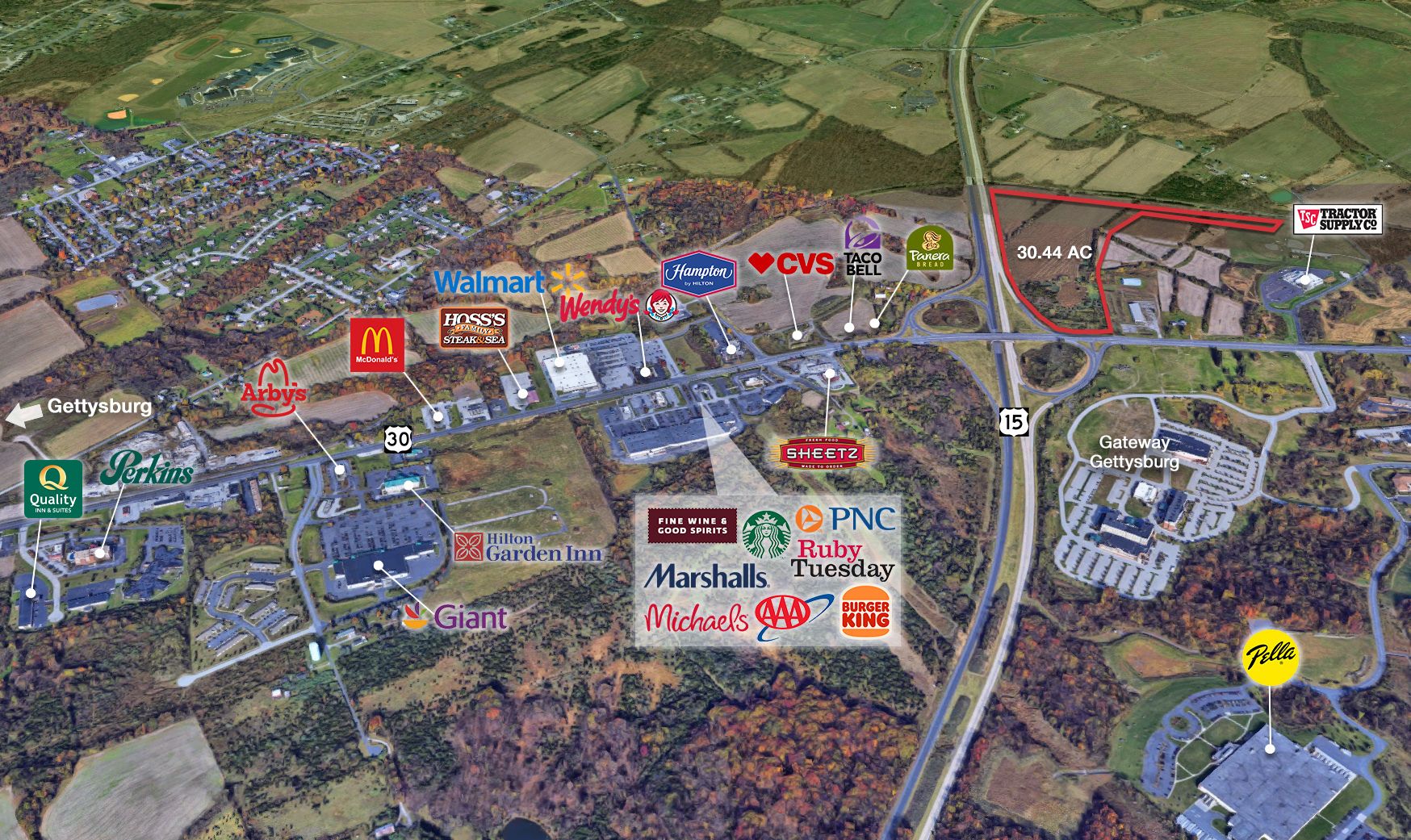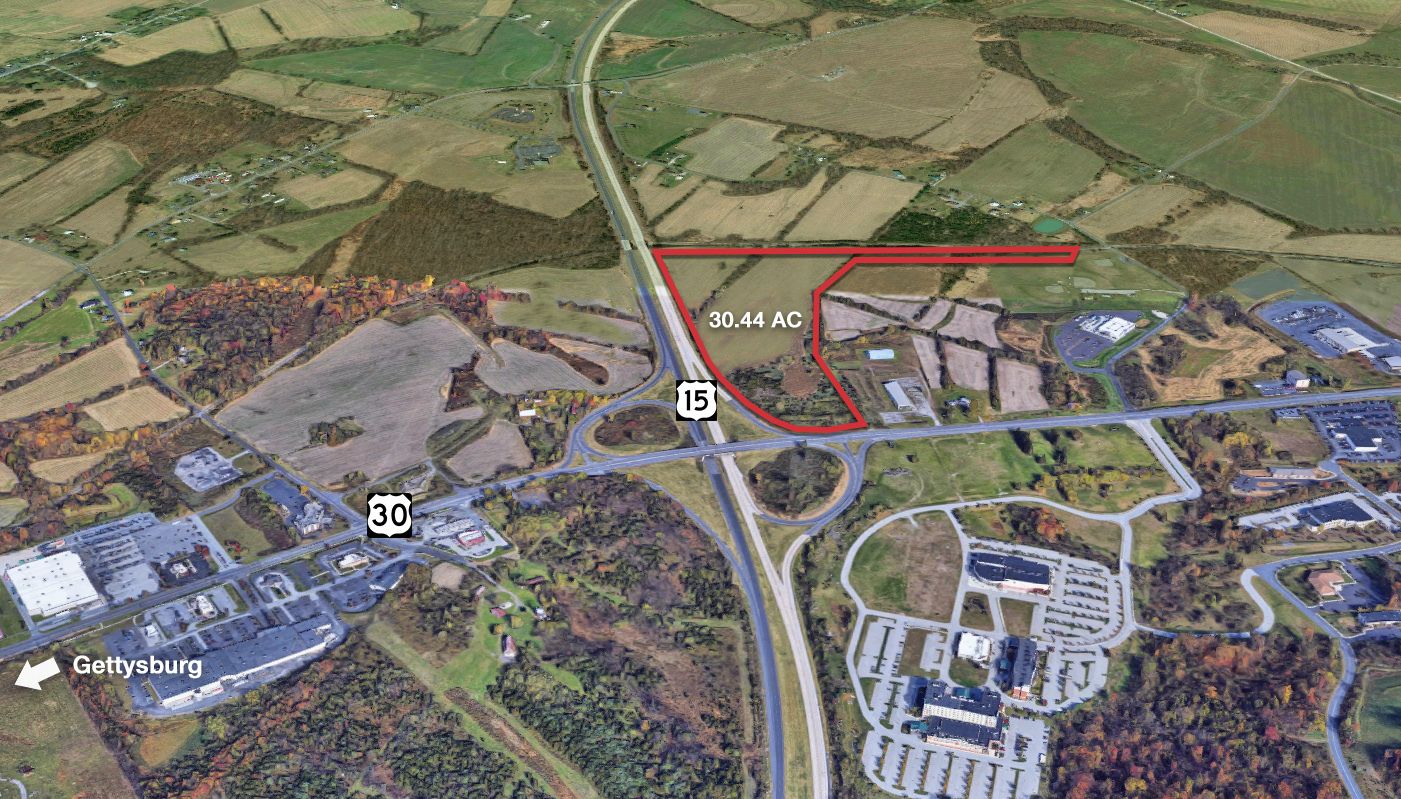 30.44 acres in Gettysburg's commercial corridor, suitable for warehouses.