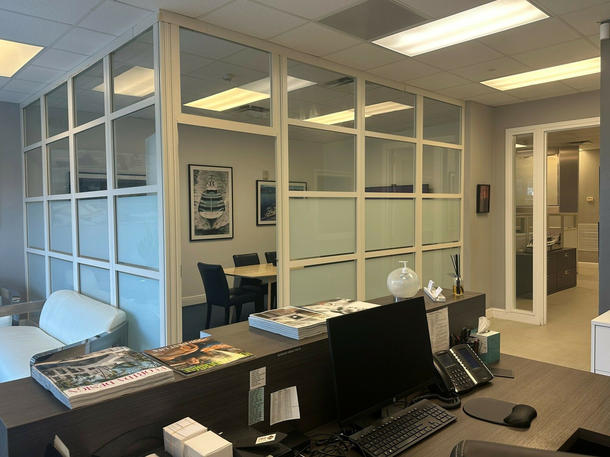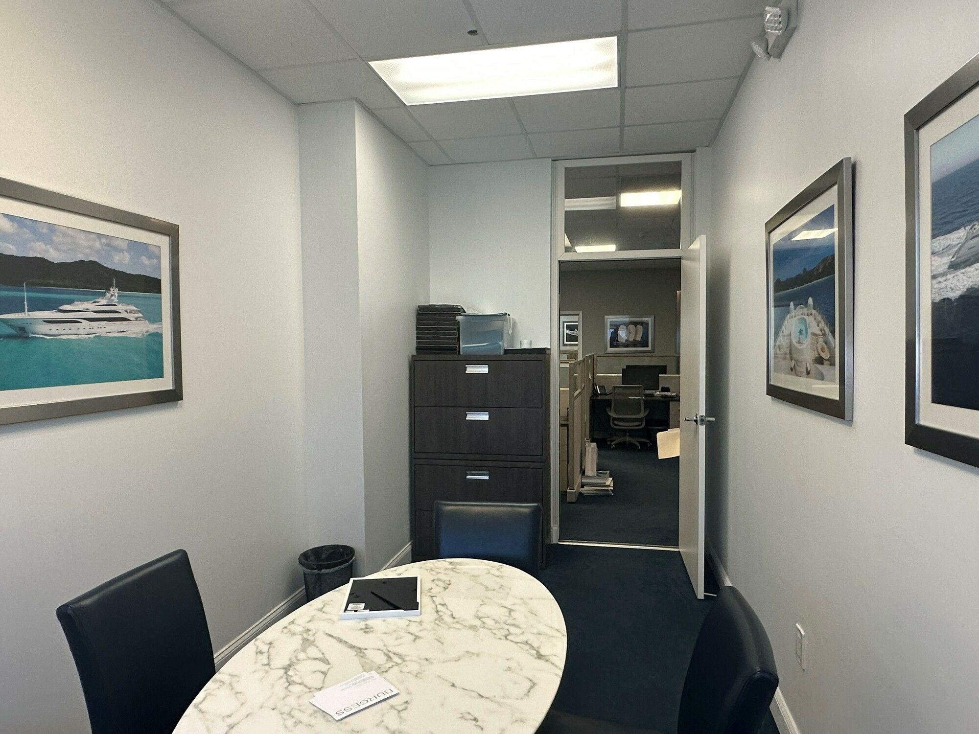 Renovated office suite with marina views available for lease.