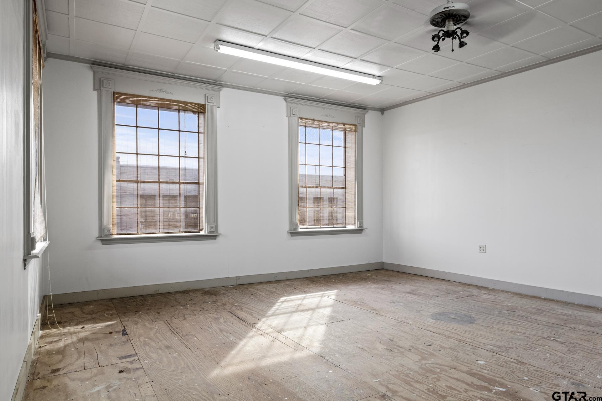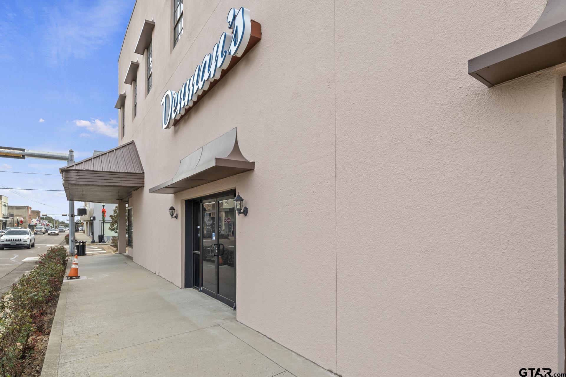 Three-story mixed-use building in historic downtown Mt Pleasant, Texas.