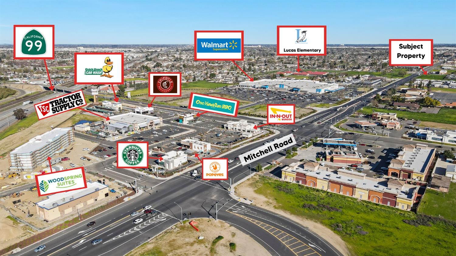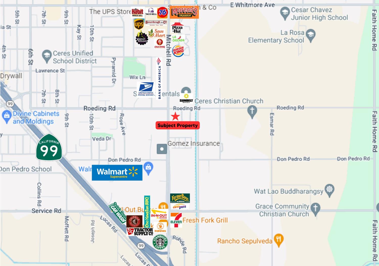 Two-acre highway commercial parcel near Walmart and Ceres Gateway Center.