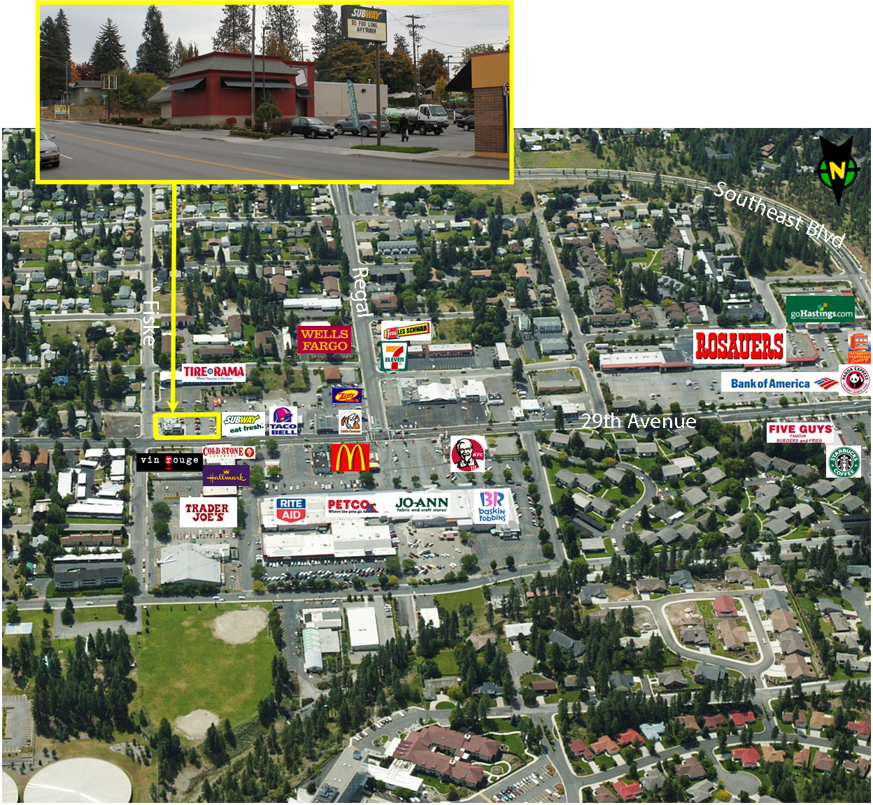 Retail space on Spokane's South Hill, corner lot location.