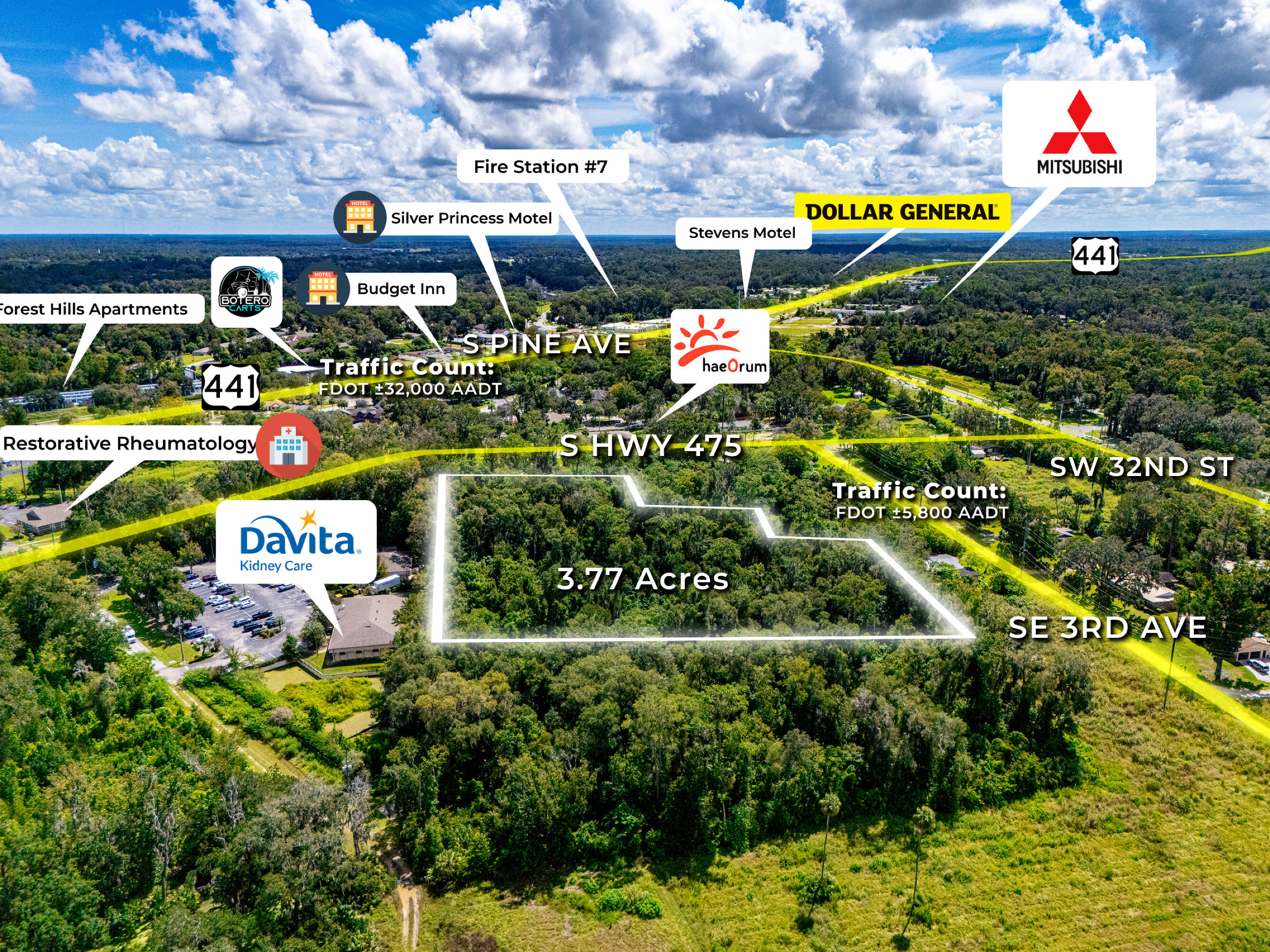3.77-acre commercial site zoned B-4 in Ocala, Florida.