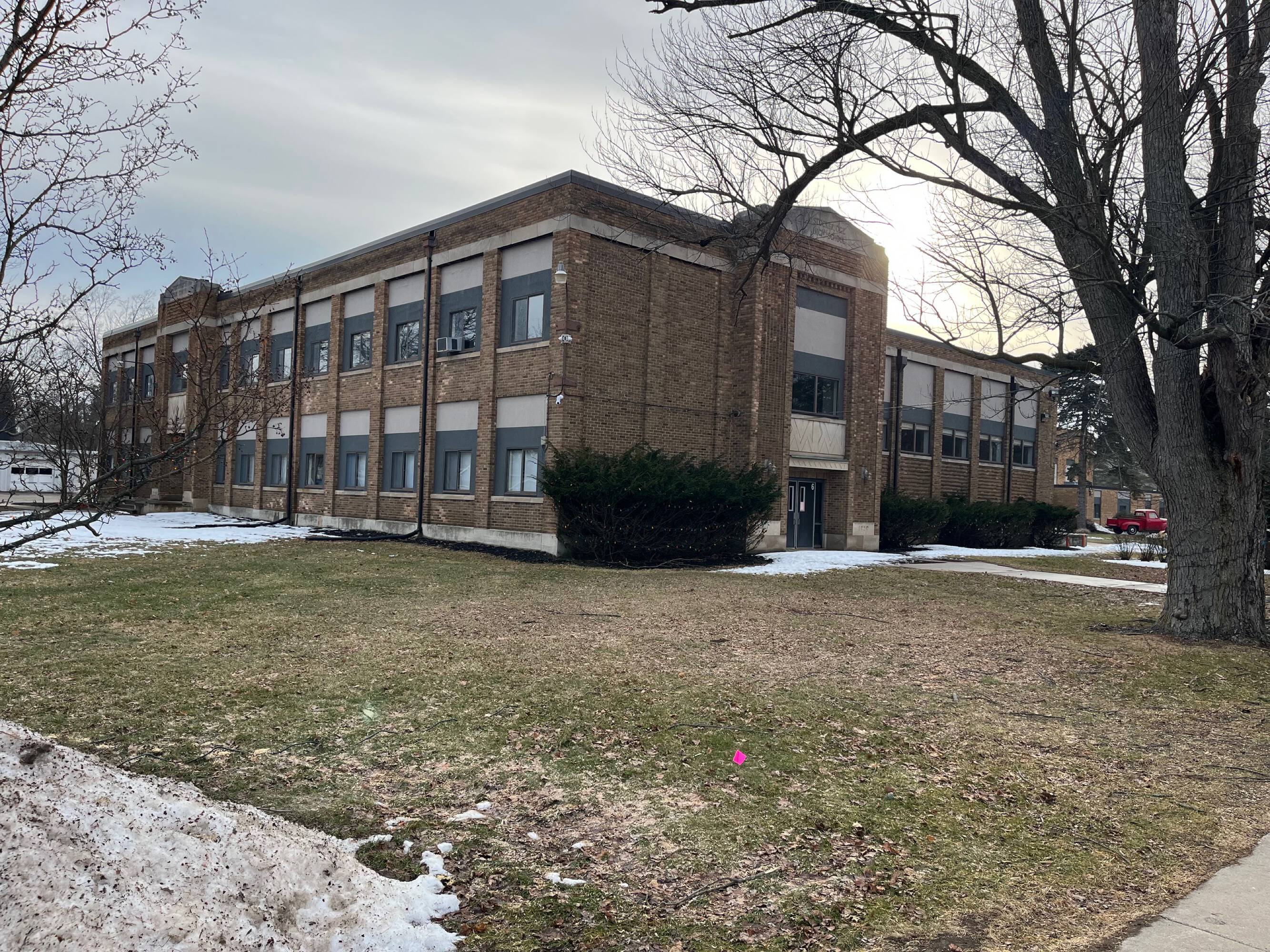 Former school building suitable for redevelopment near Stockbridge Town Square.
