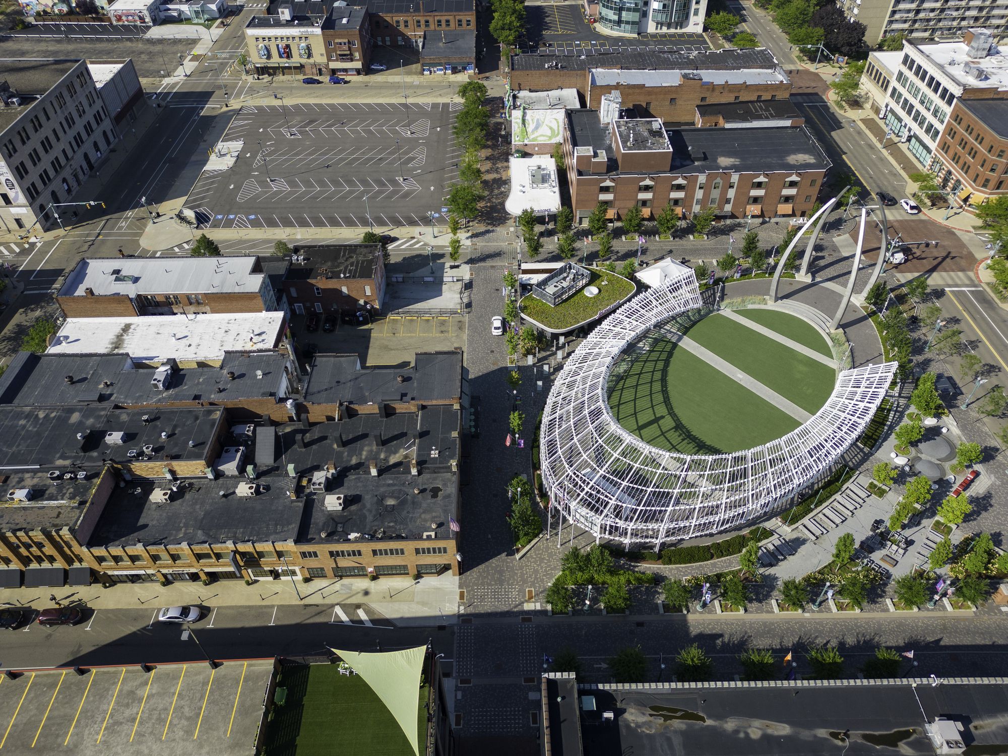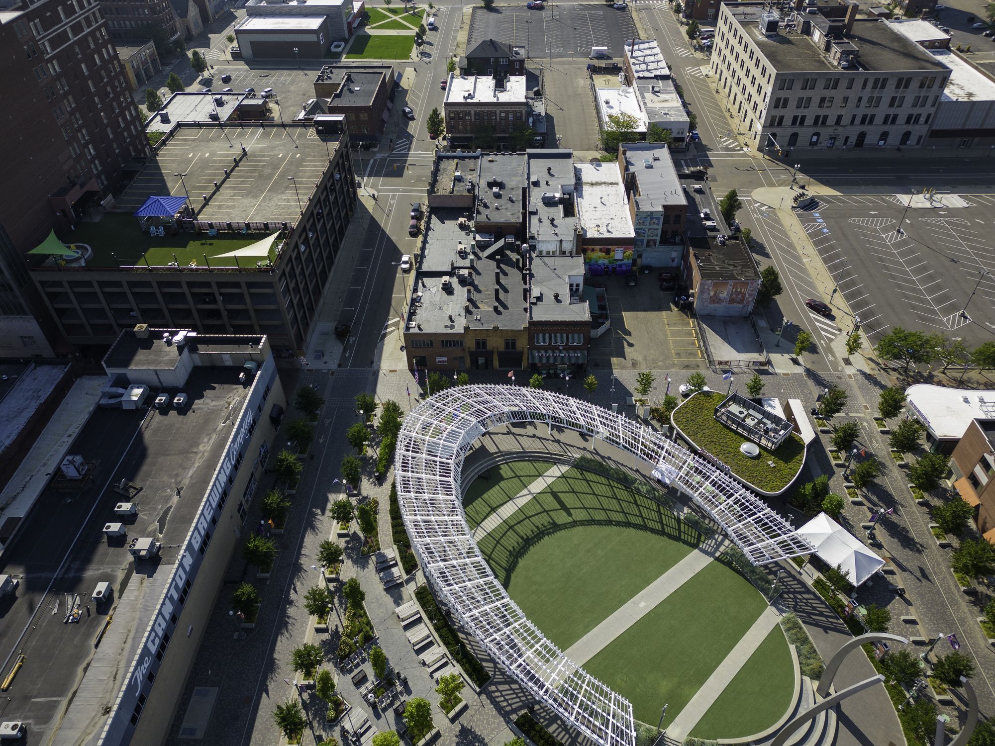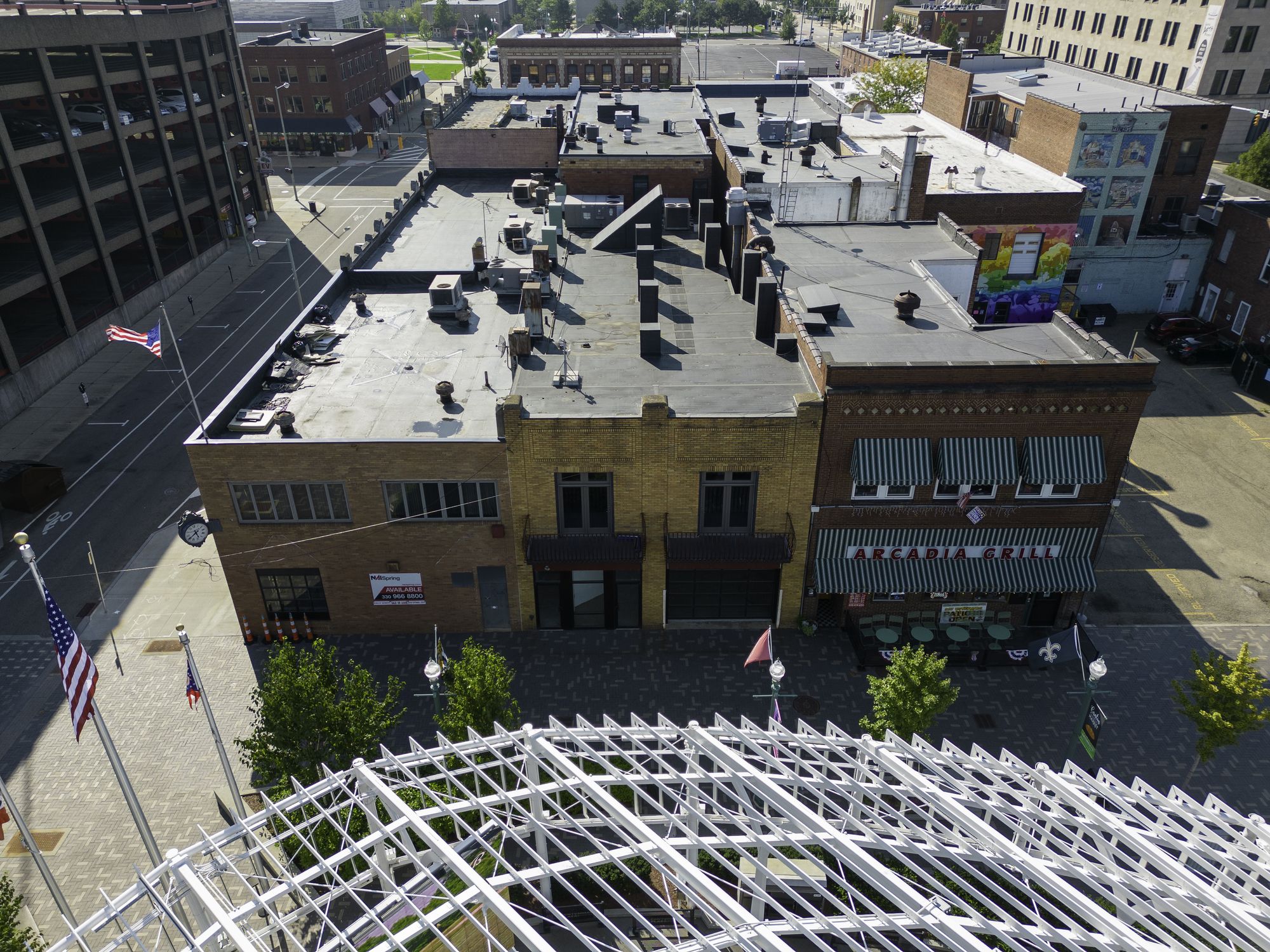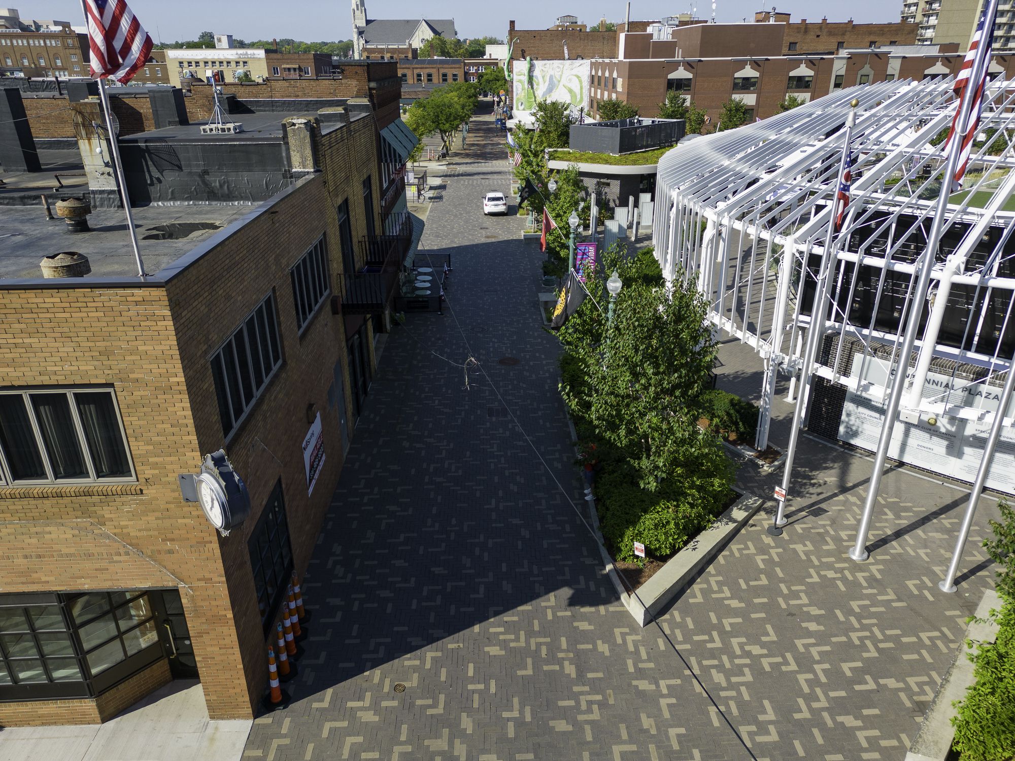 Desirable retail/office space in Downtown Canton overlooking Centennial Plaza.