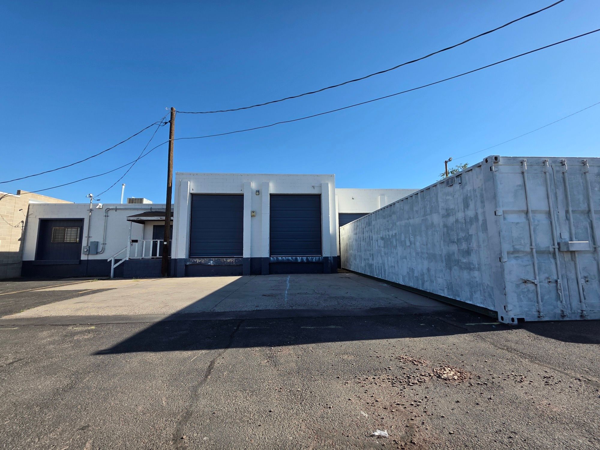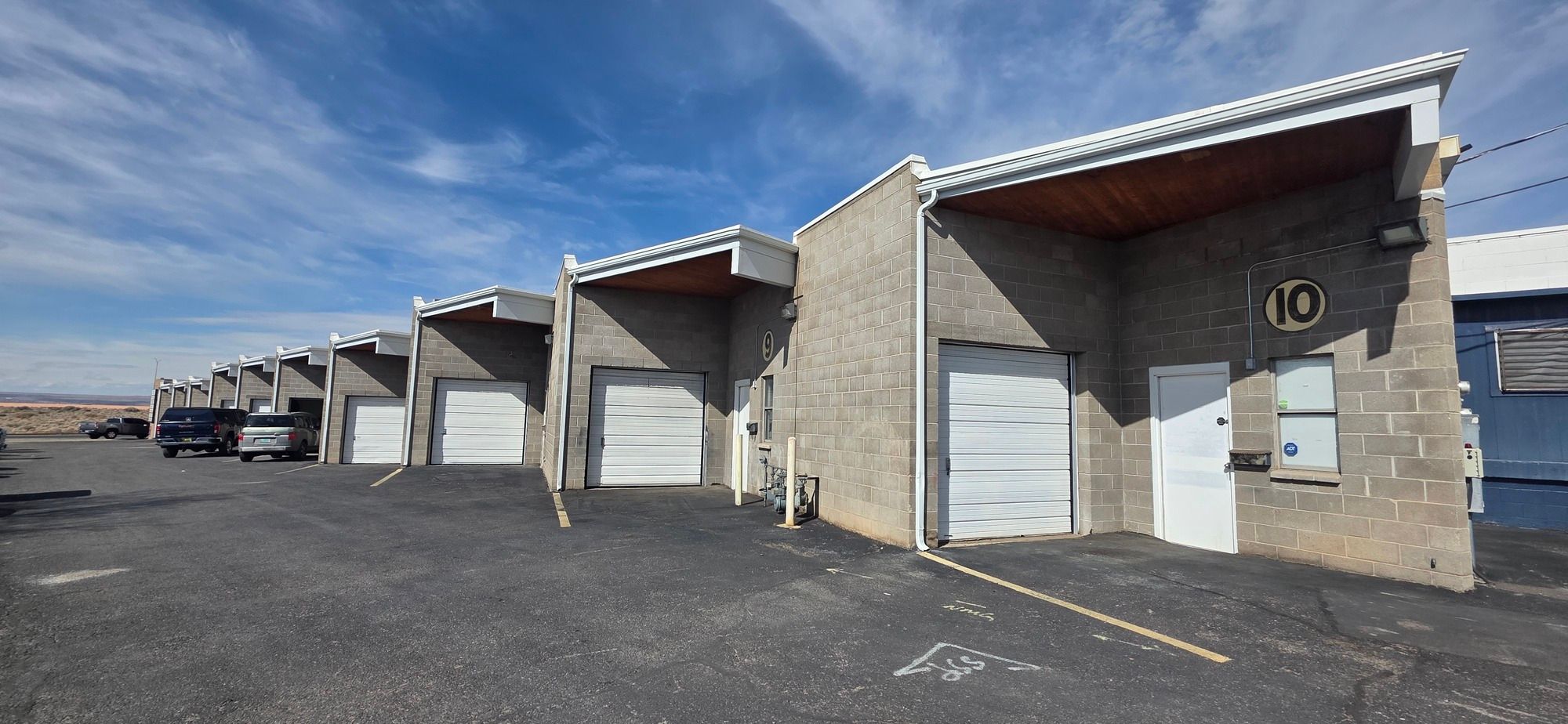 Industrial park units with dock doors and freeway access.