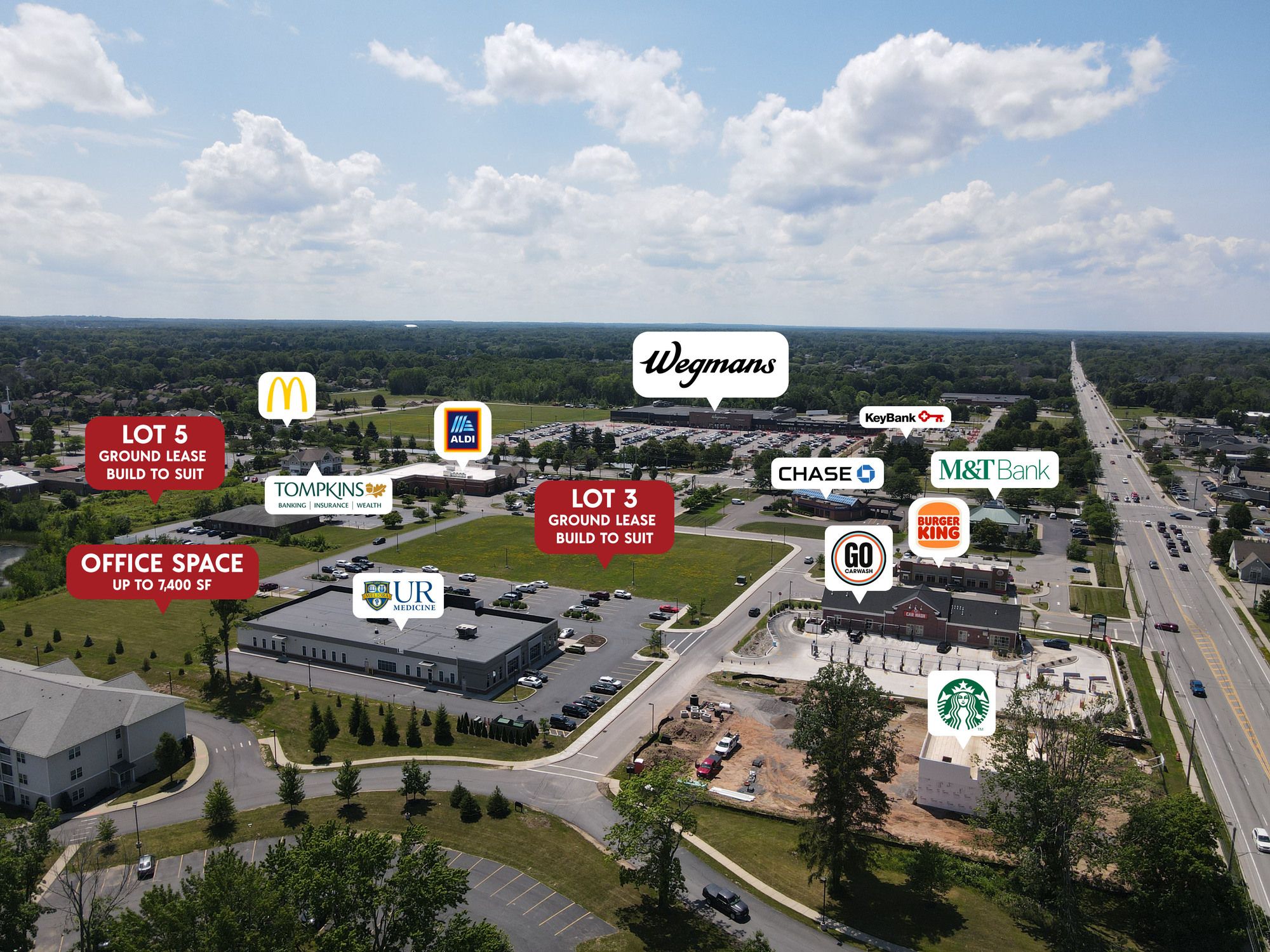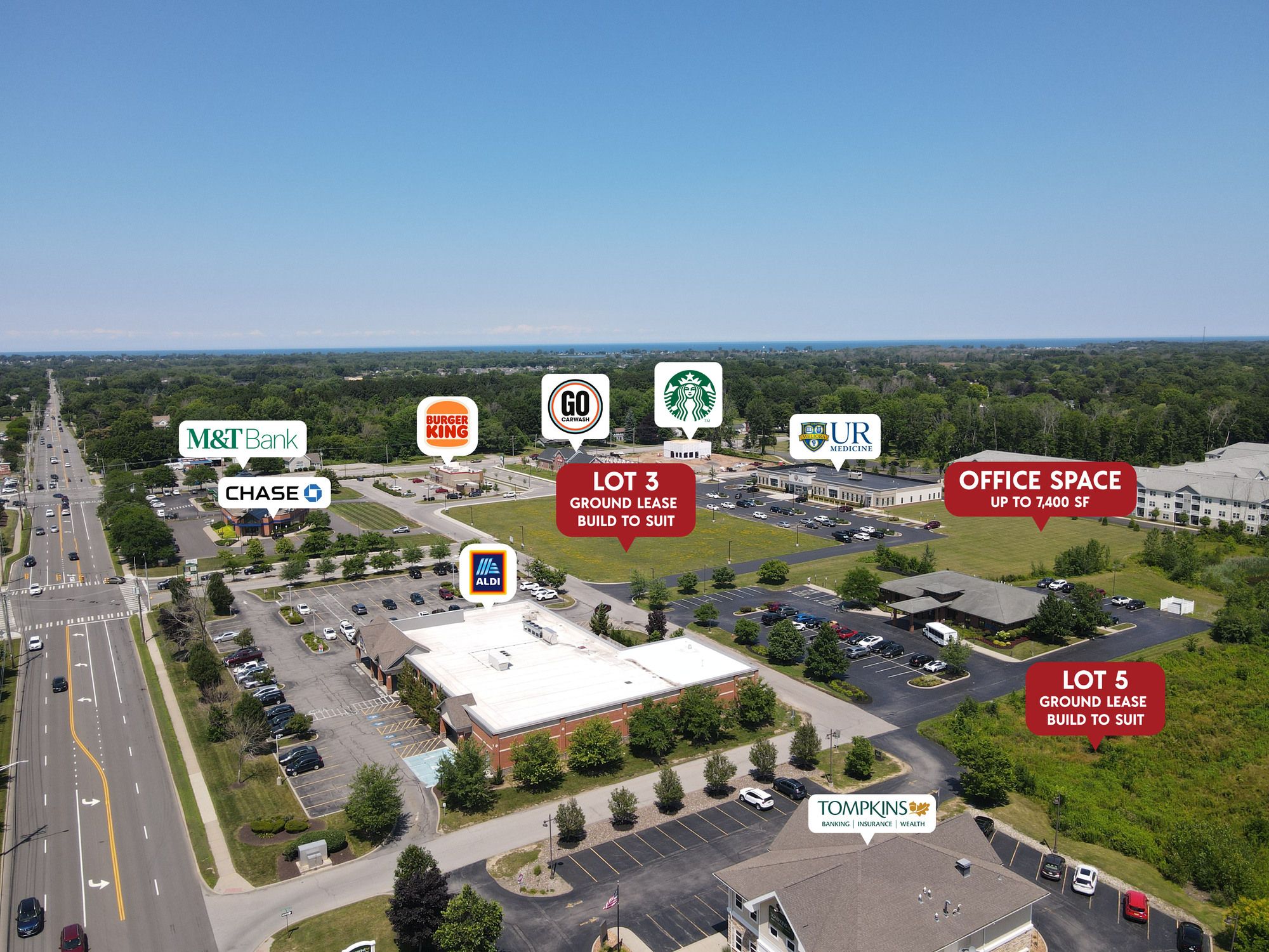 Commercial space available for ground lease or build-to-suit.