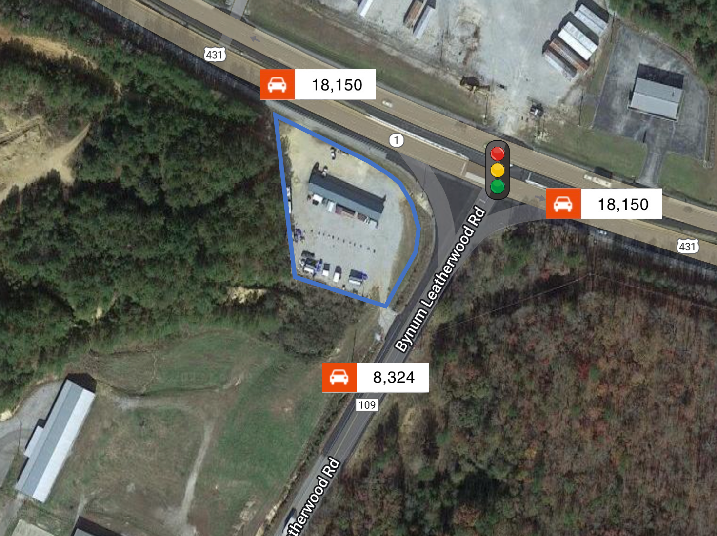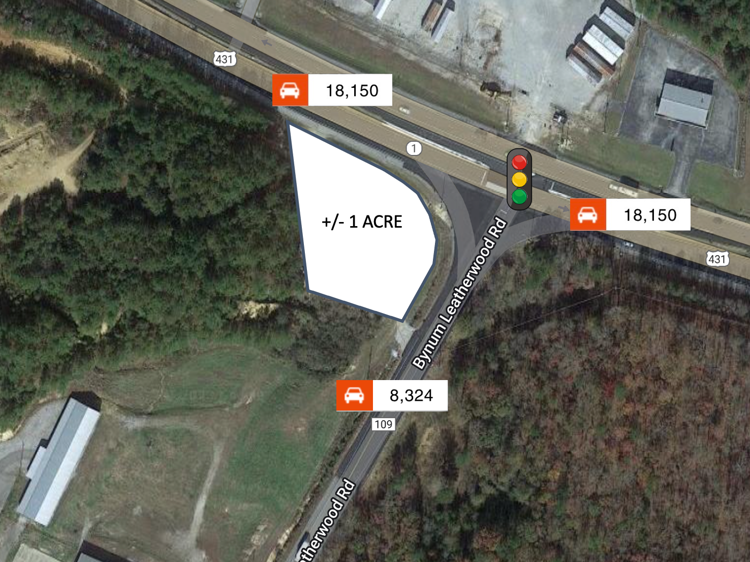One-acre corner lot with high traffic volume on Highway 431.