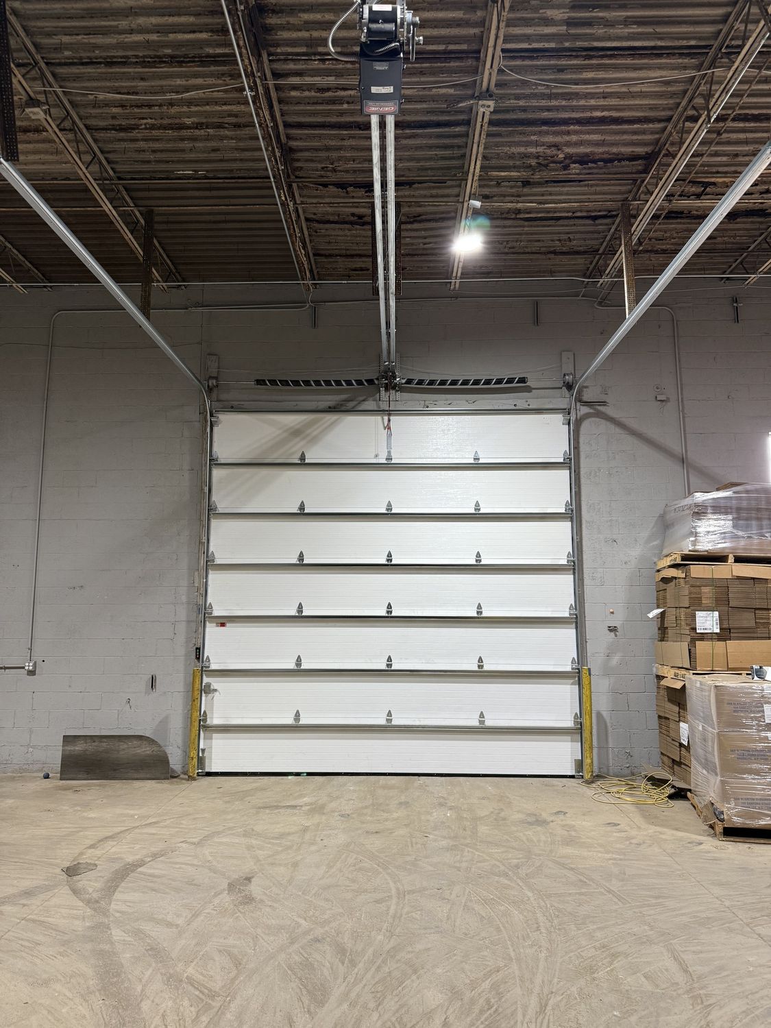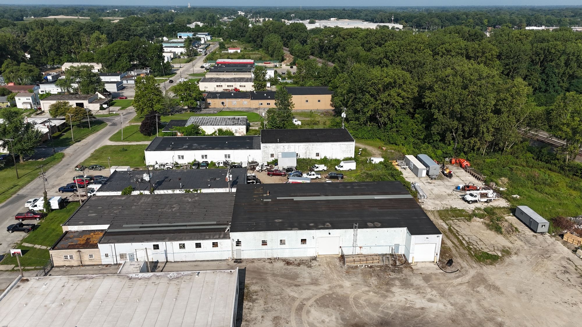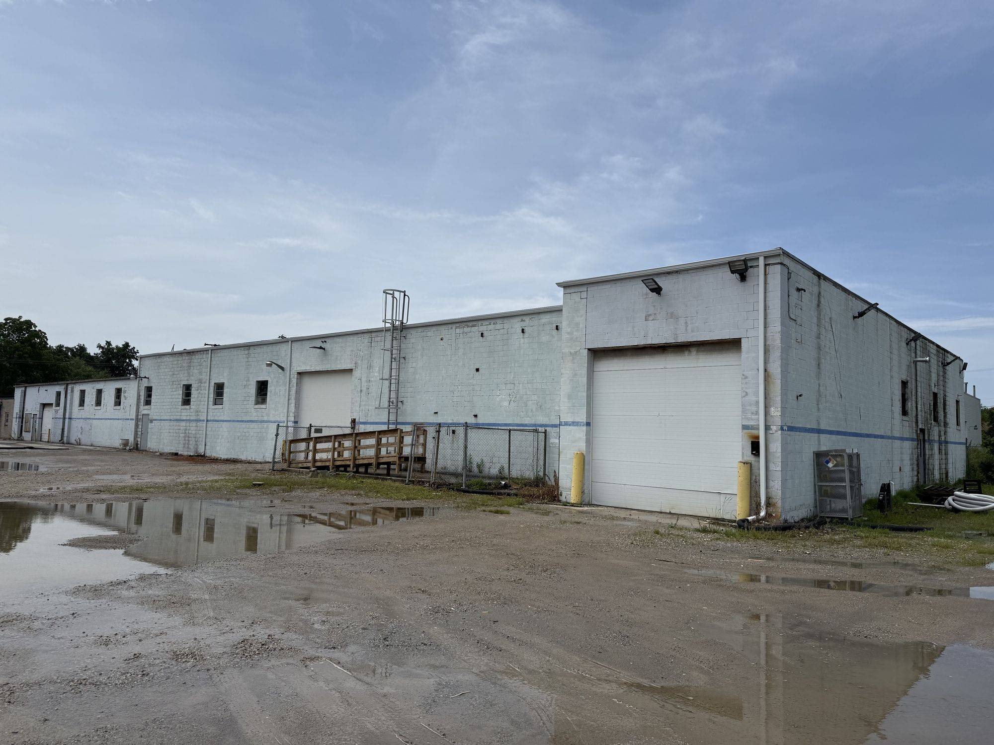 Heated warehouse with loading dock, grade doors, fenced lot.