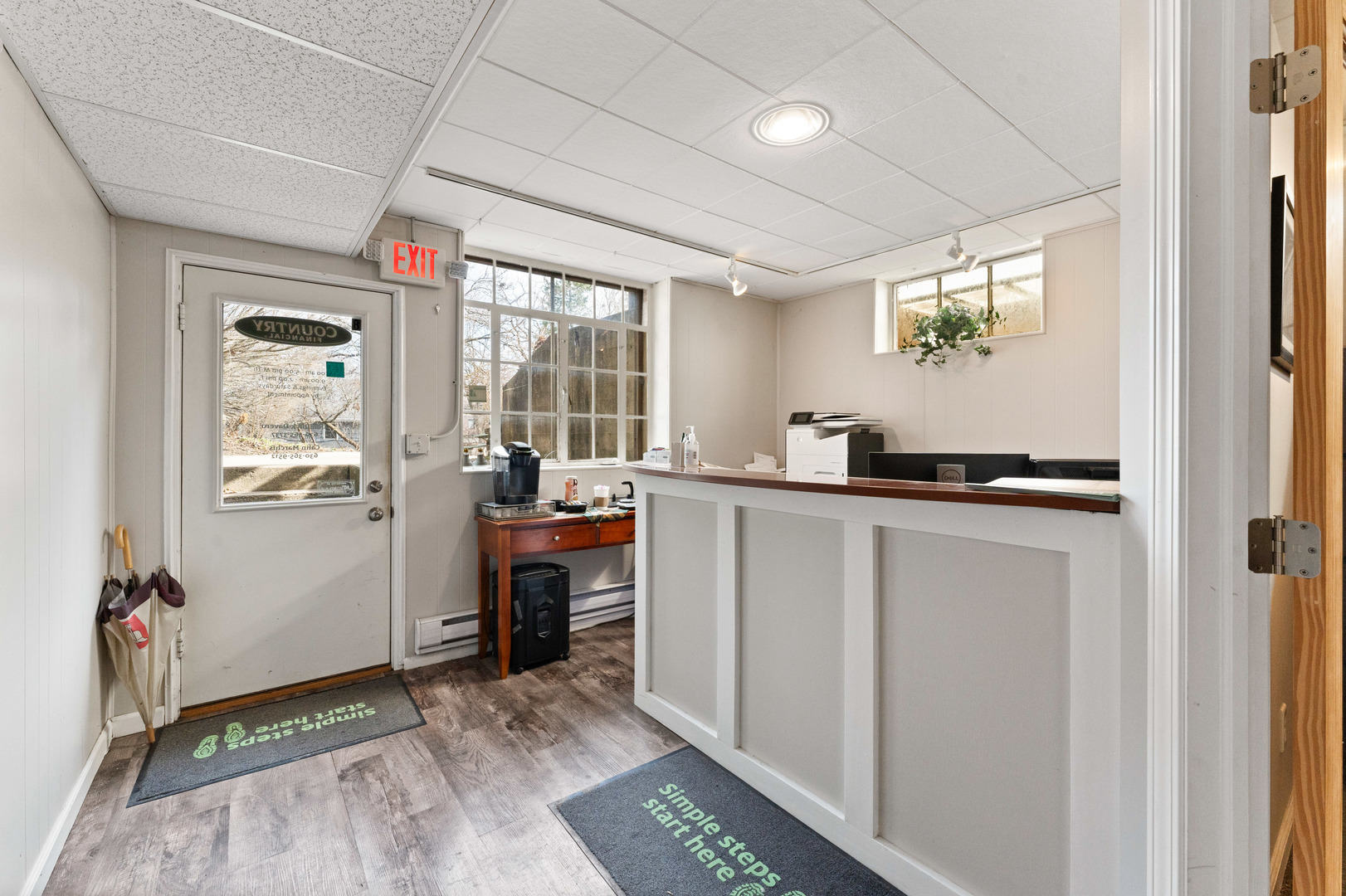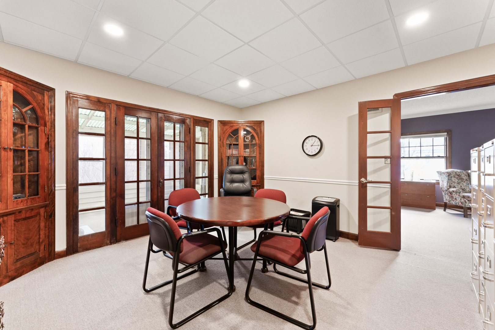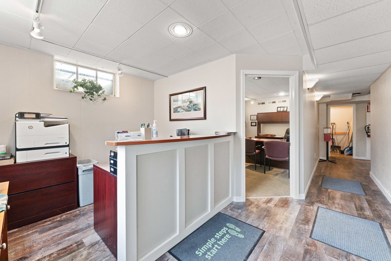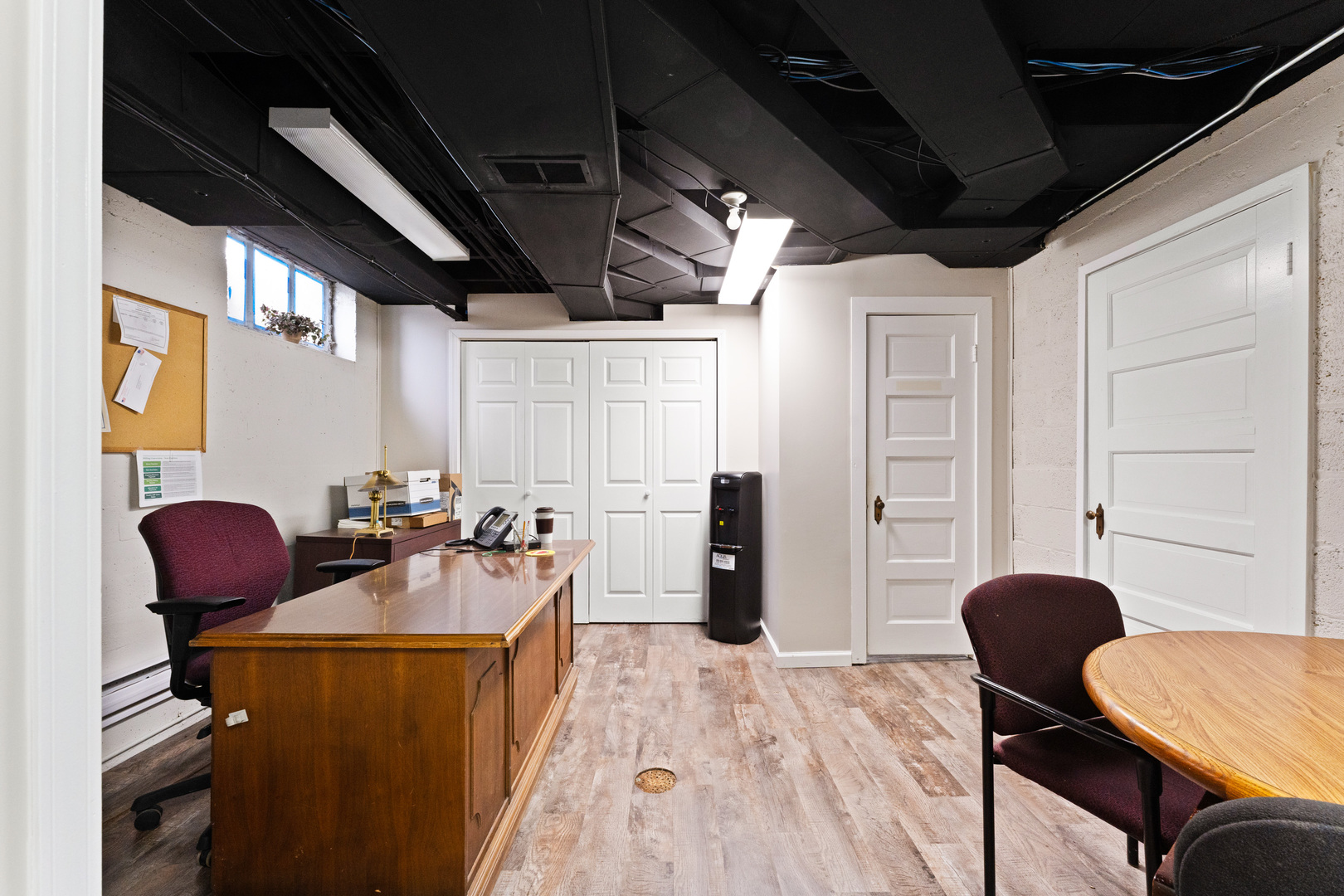 Spacious office in Elburn with kitchen and multiple bathrooms.
