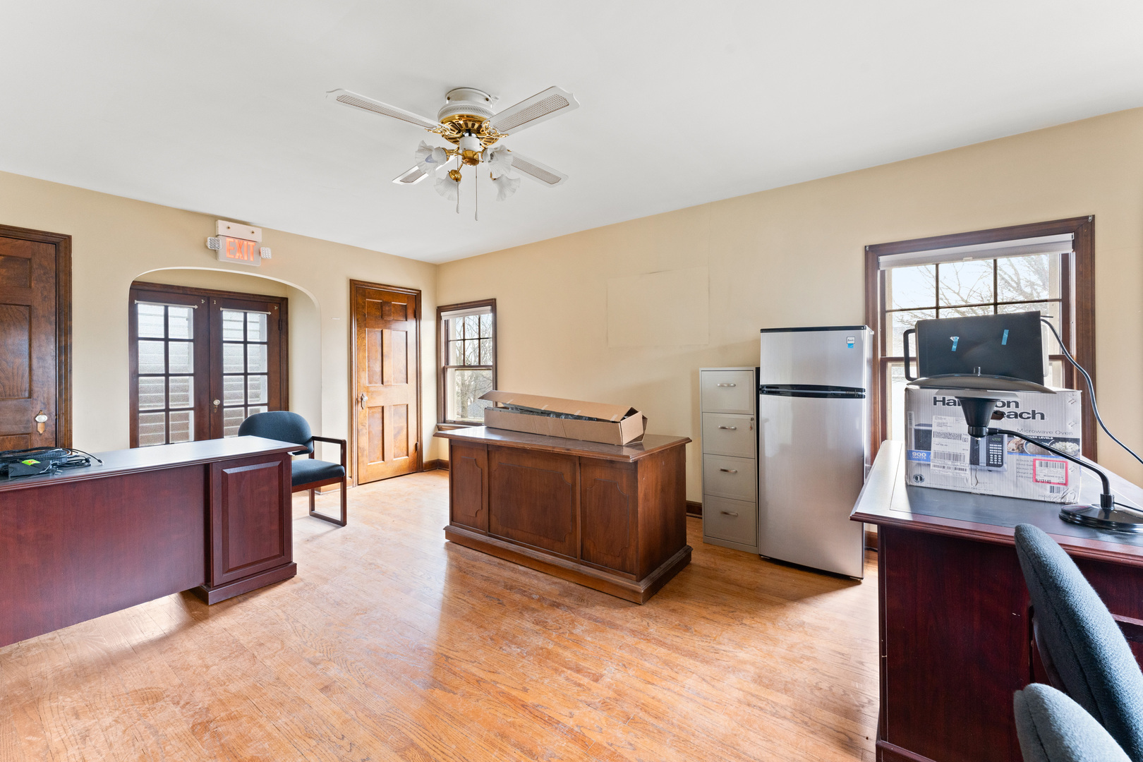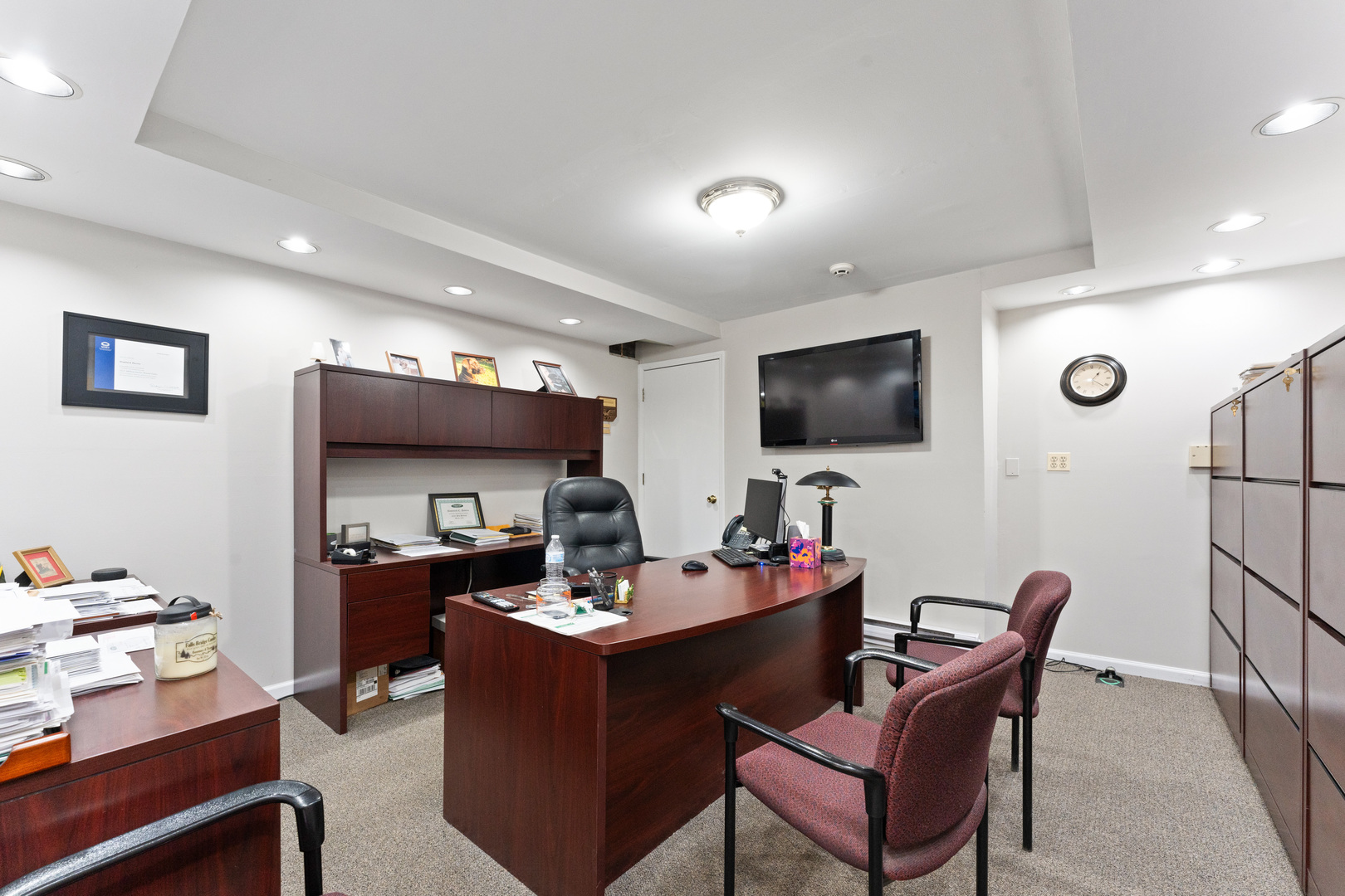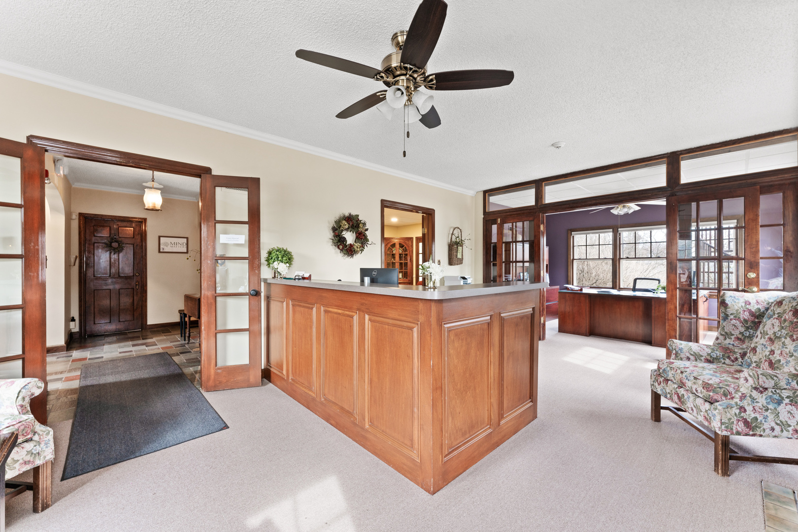 Spacious office in Elburn with kitchen and multiple bathrooms.