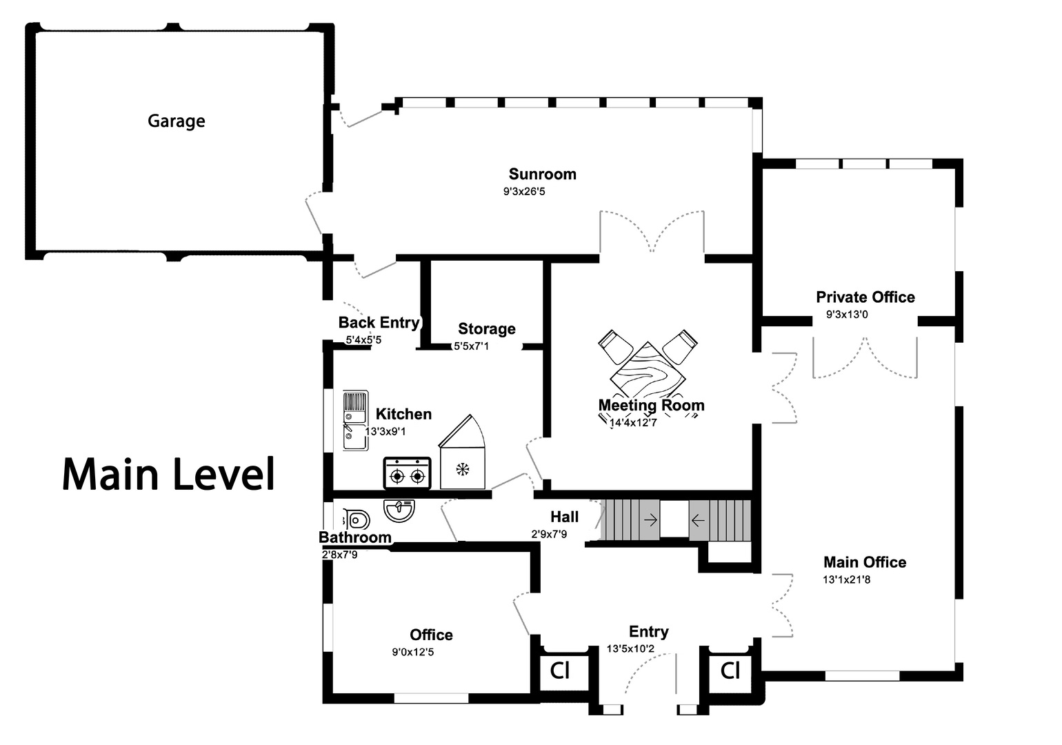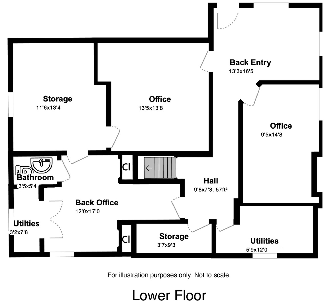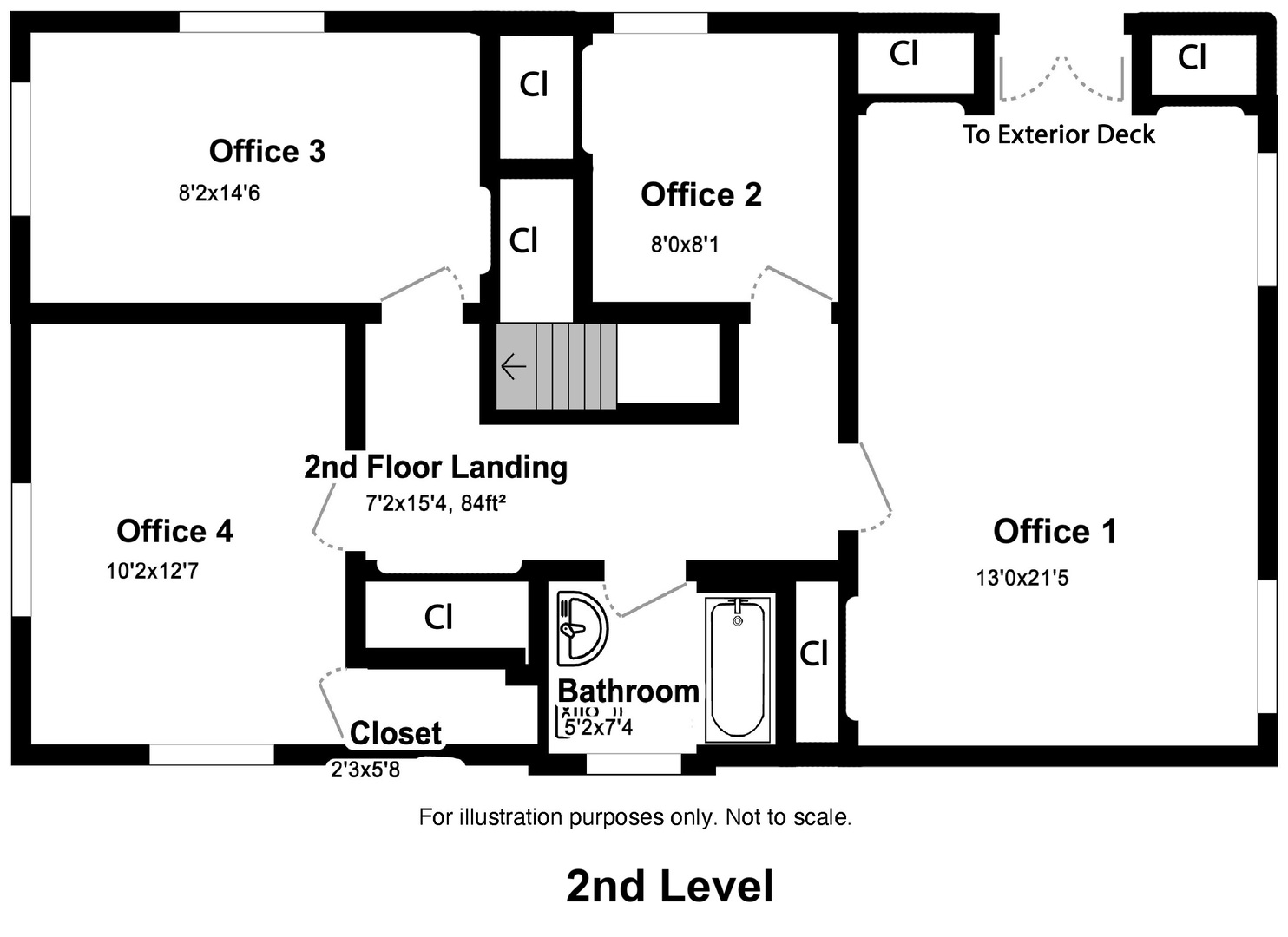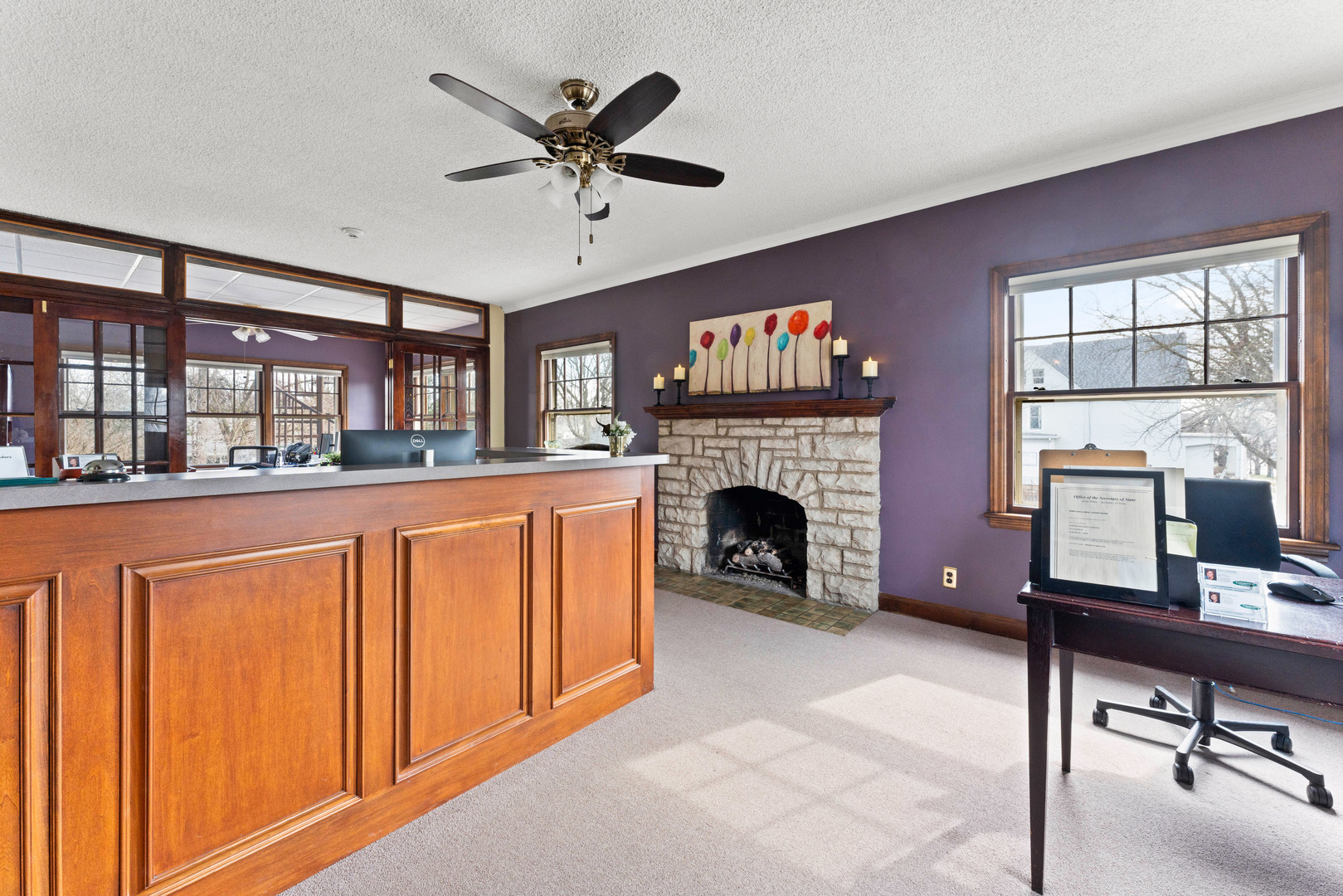 Spacious office in Elburn with kitchen and multiple bathrooms.