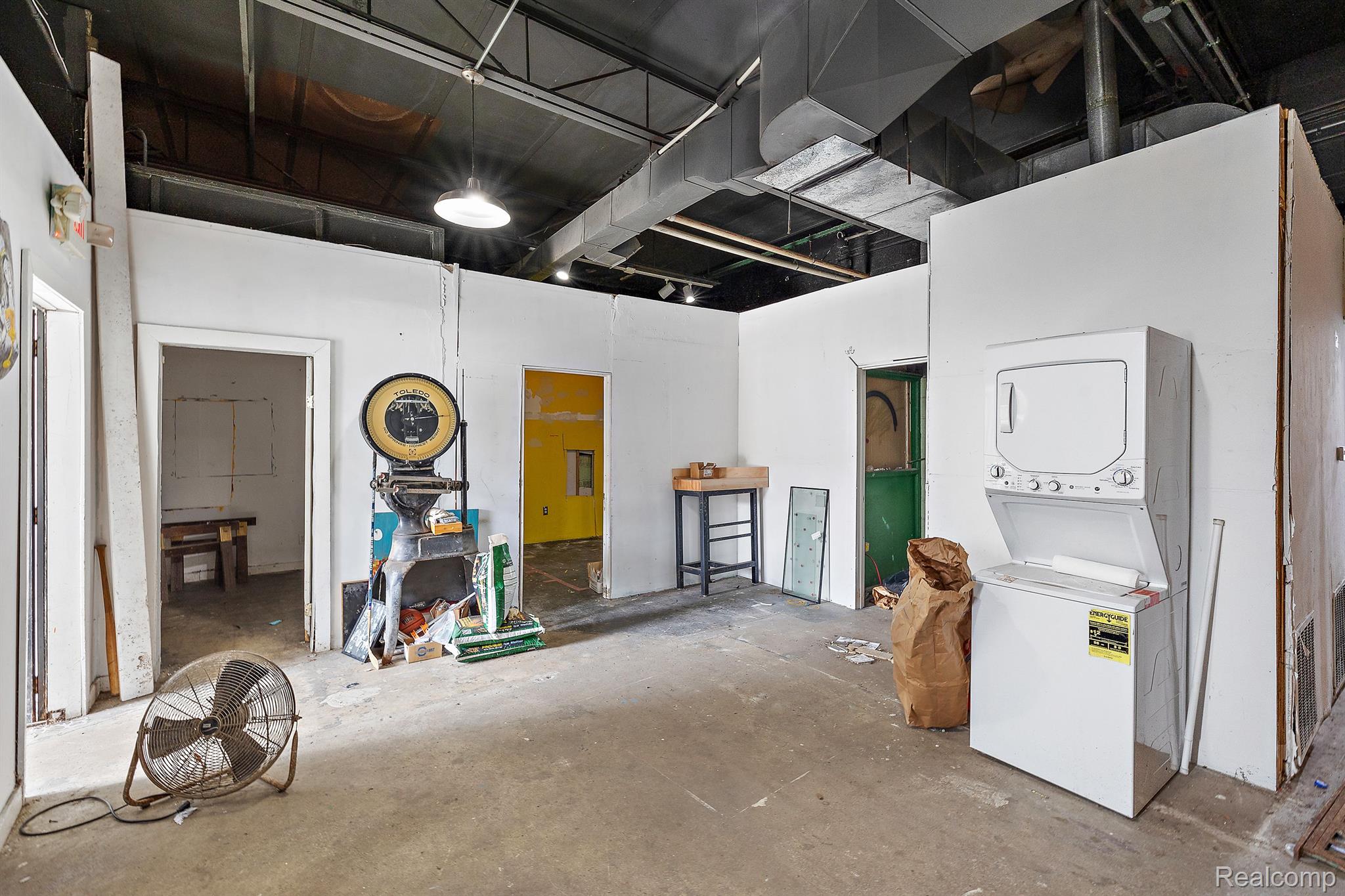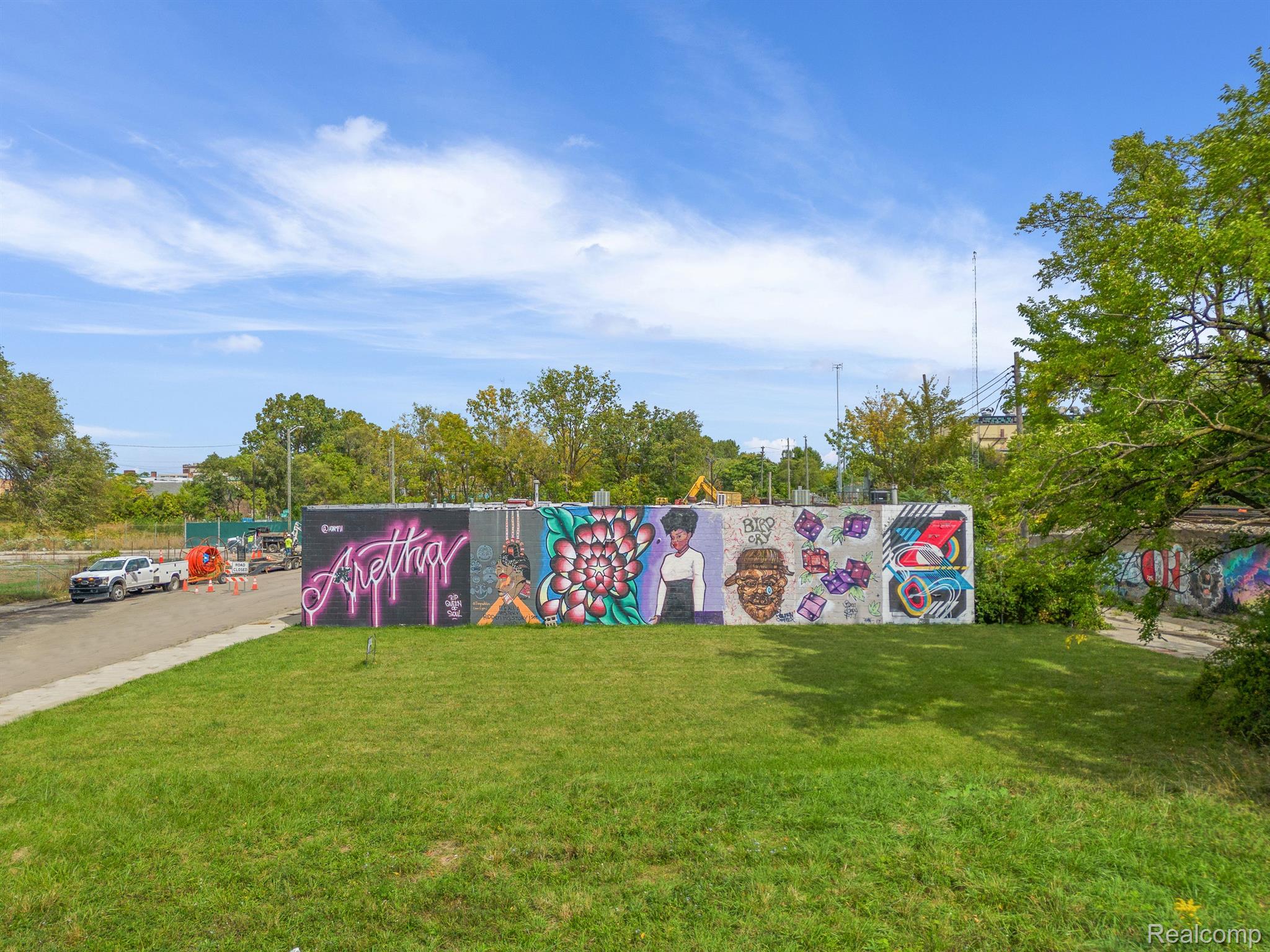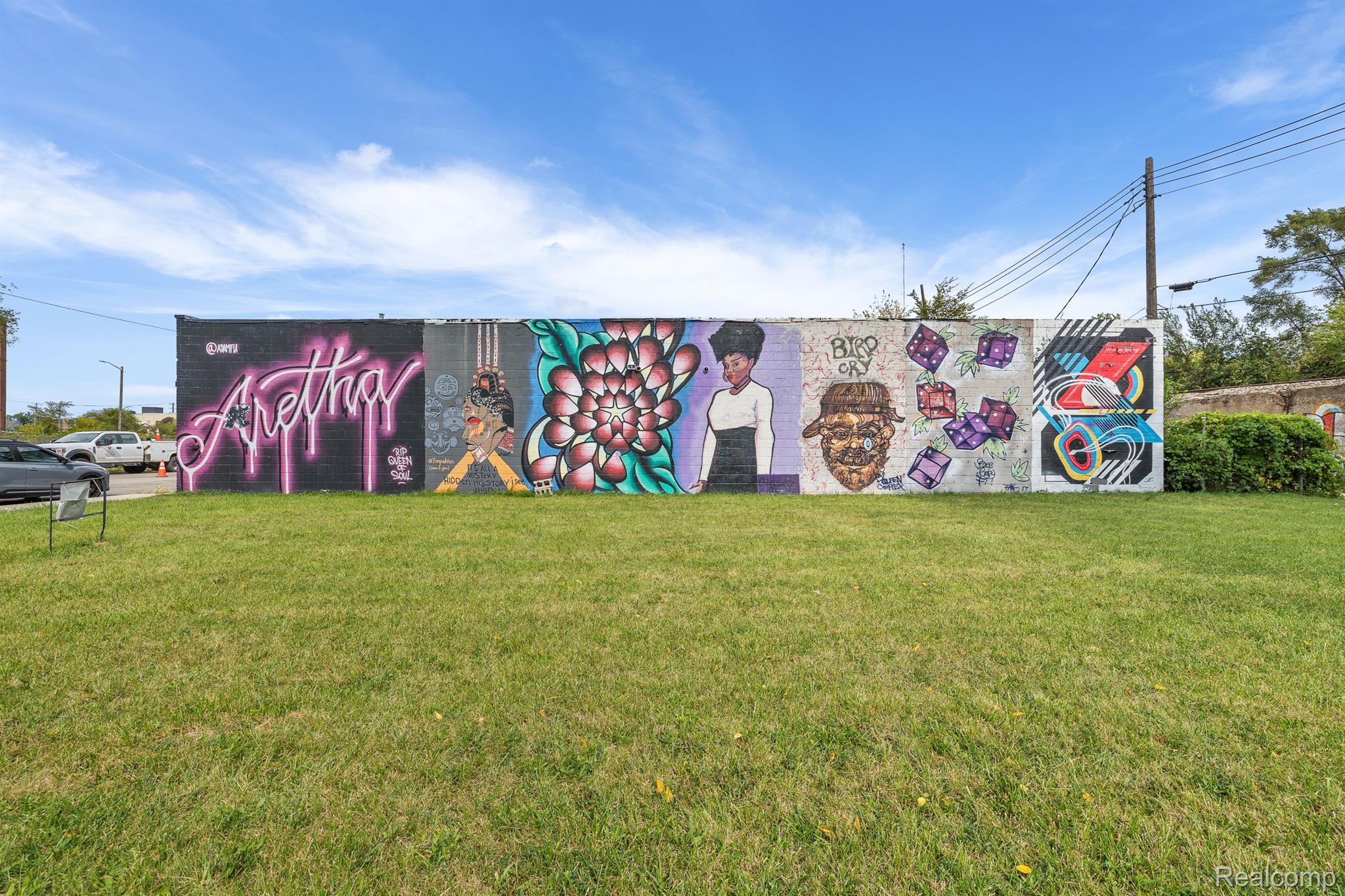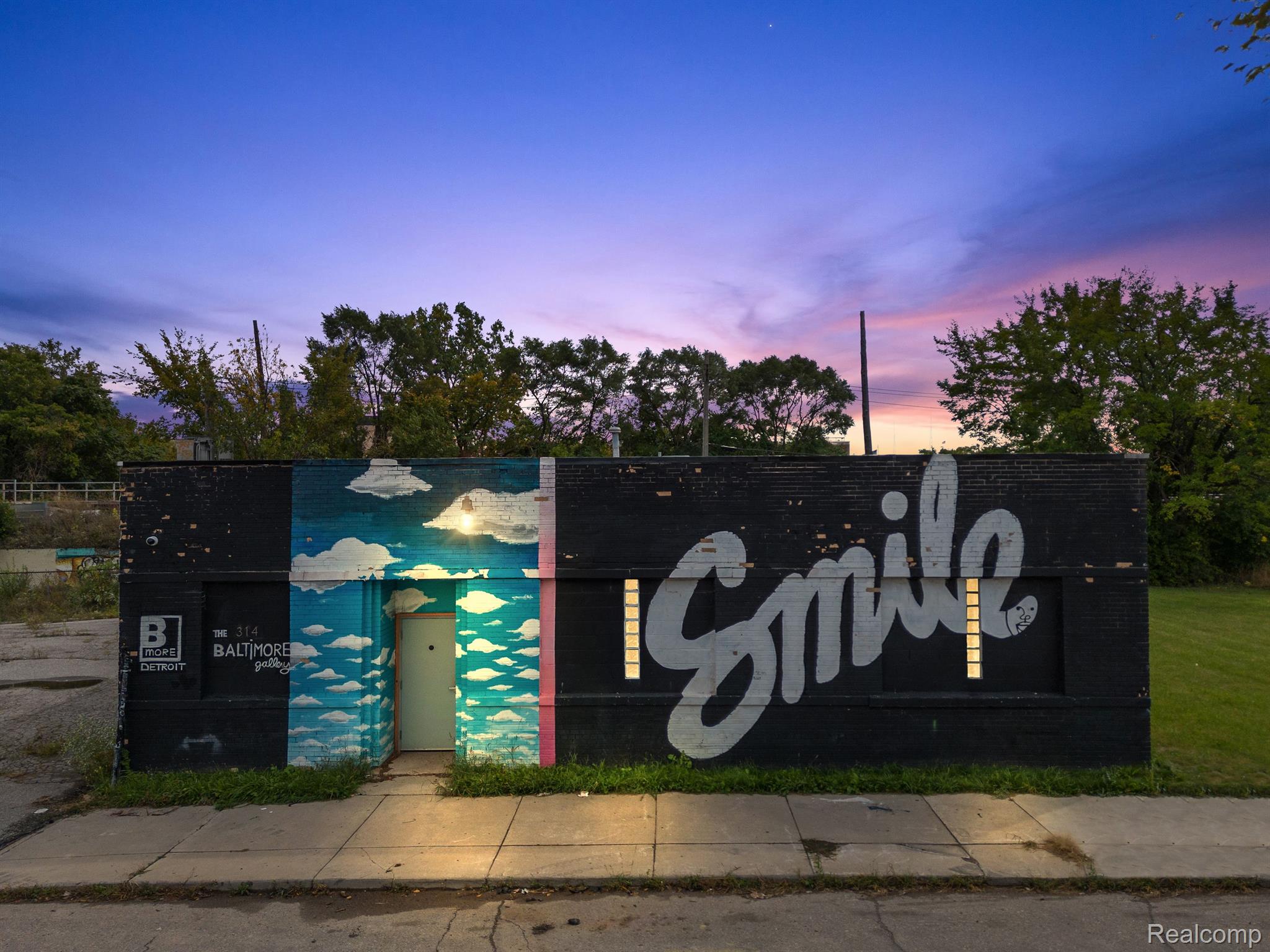 Unique industrial space with colorful murals in a trendy area.