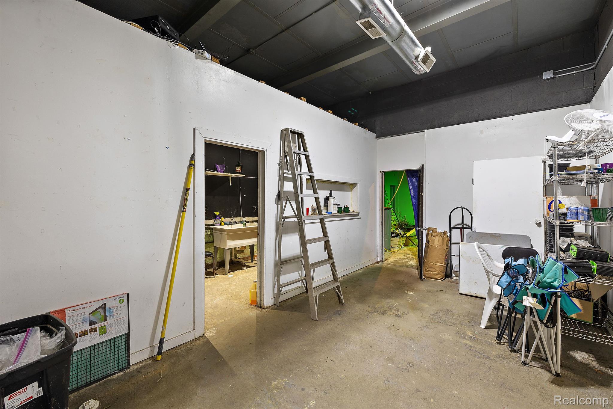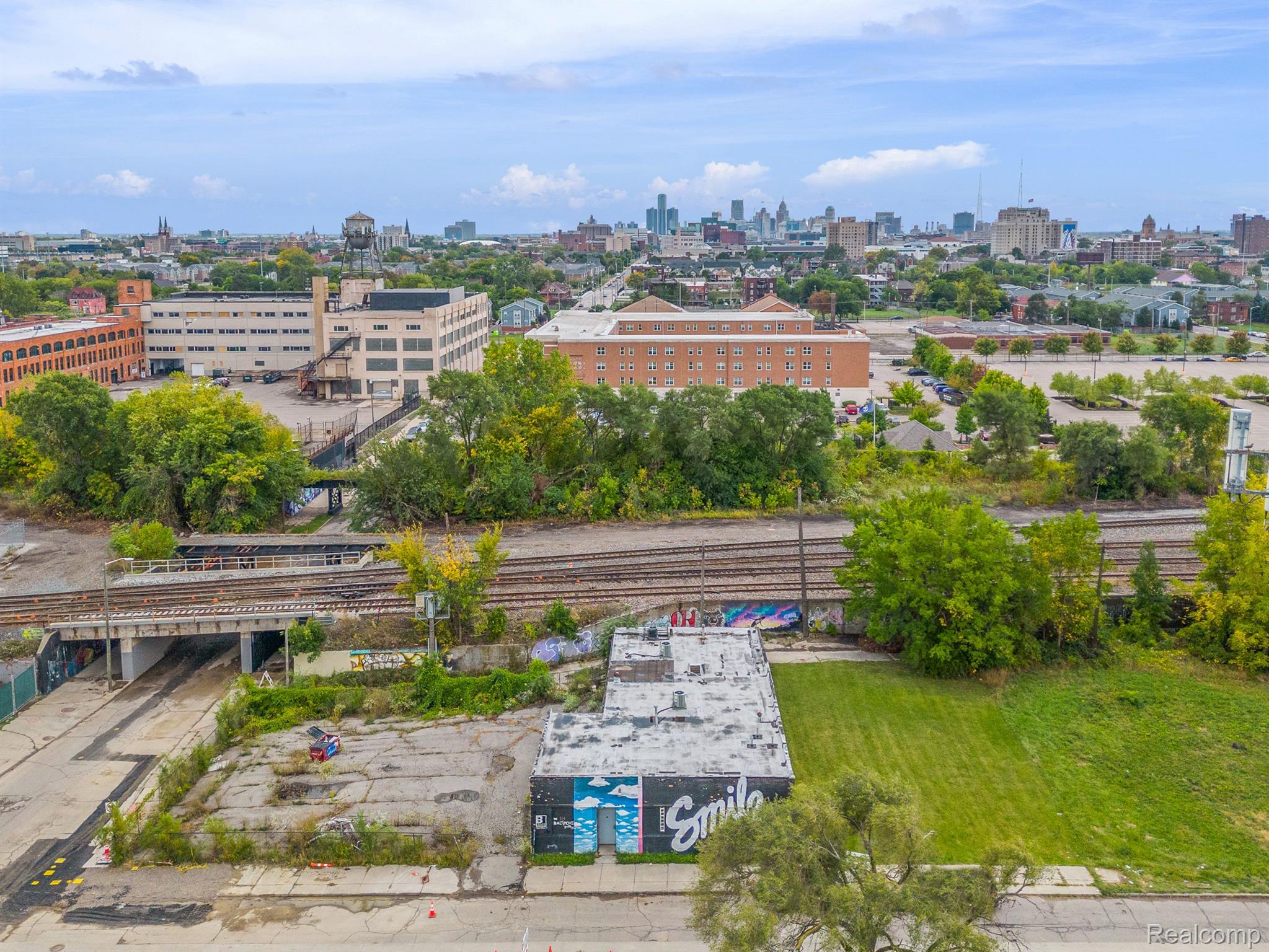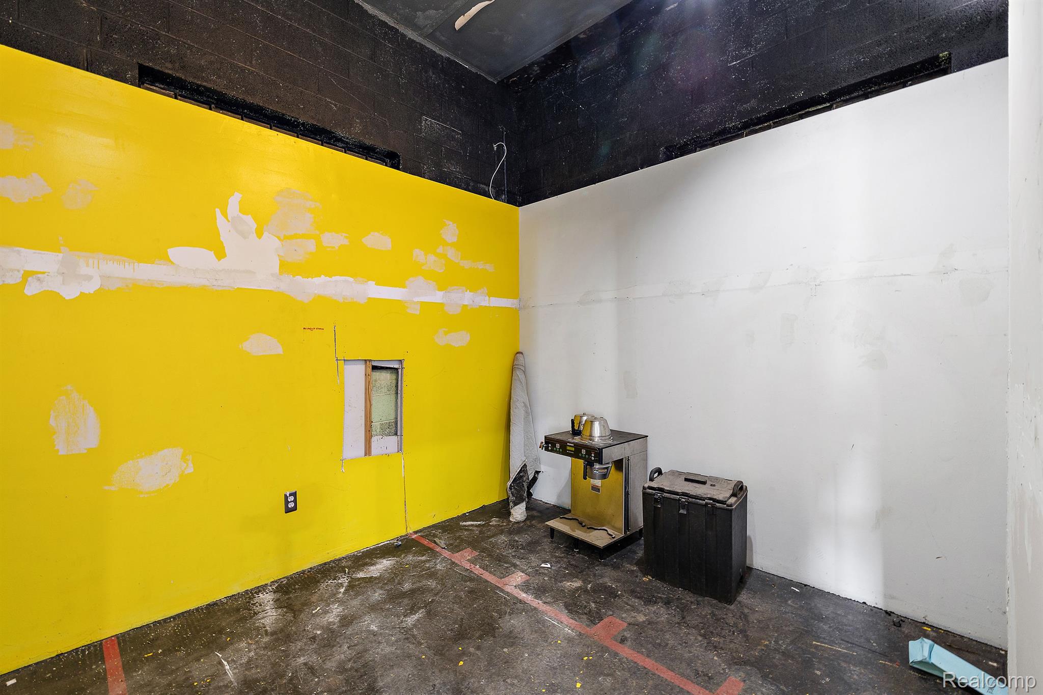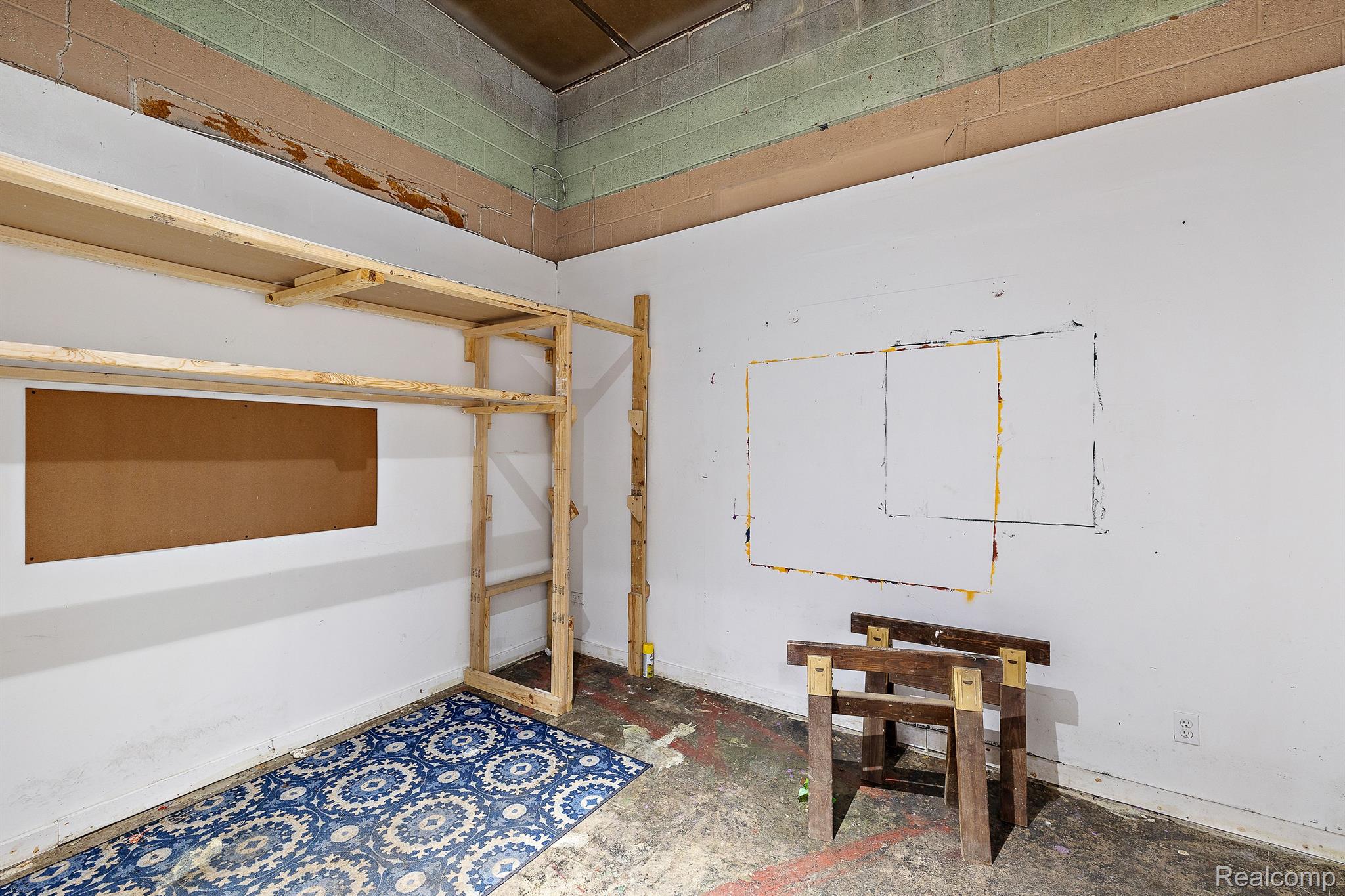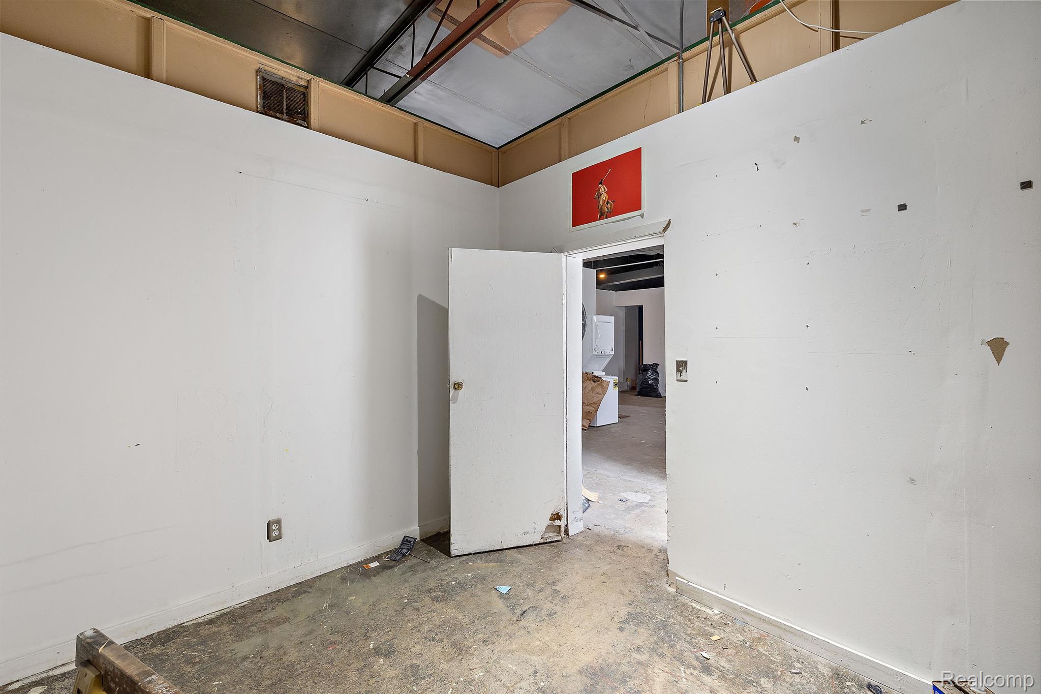 Unique industrial space with colorful murals in a trendy area.