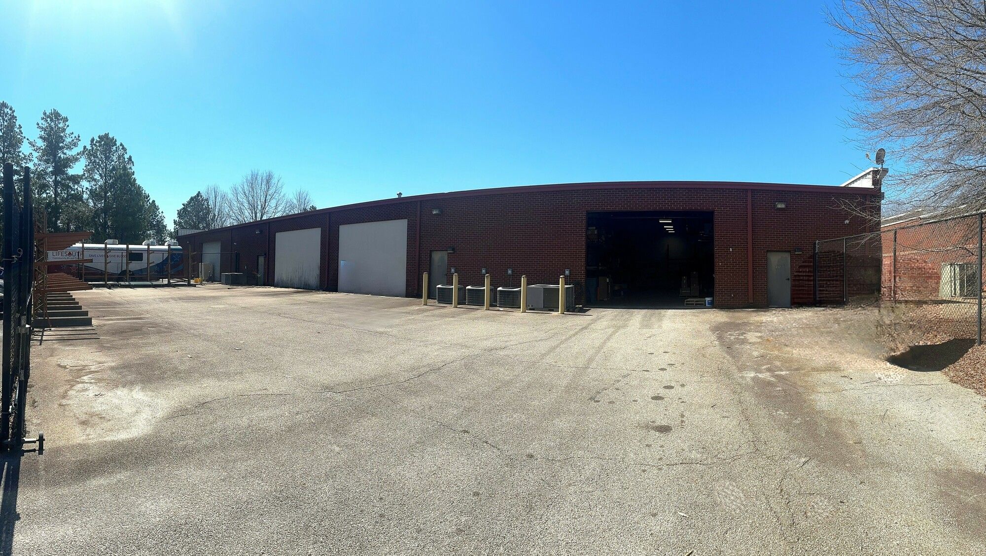 Flex space with office, warehouse, and fenced outside storage.