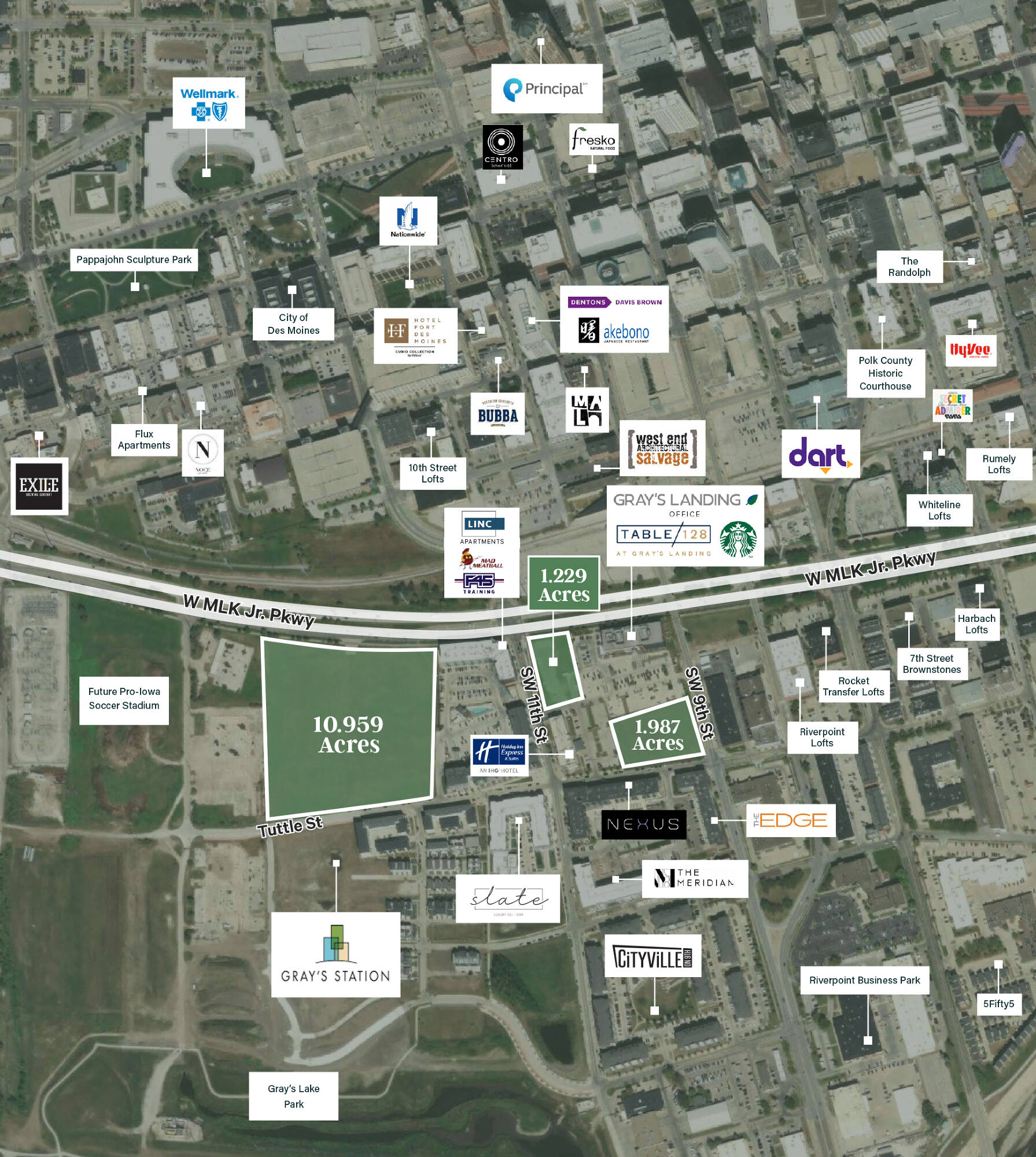 35-acre mixed-use district near downtown Des Moines.