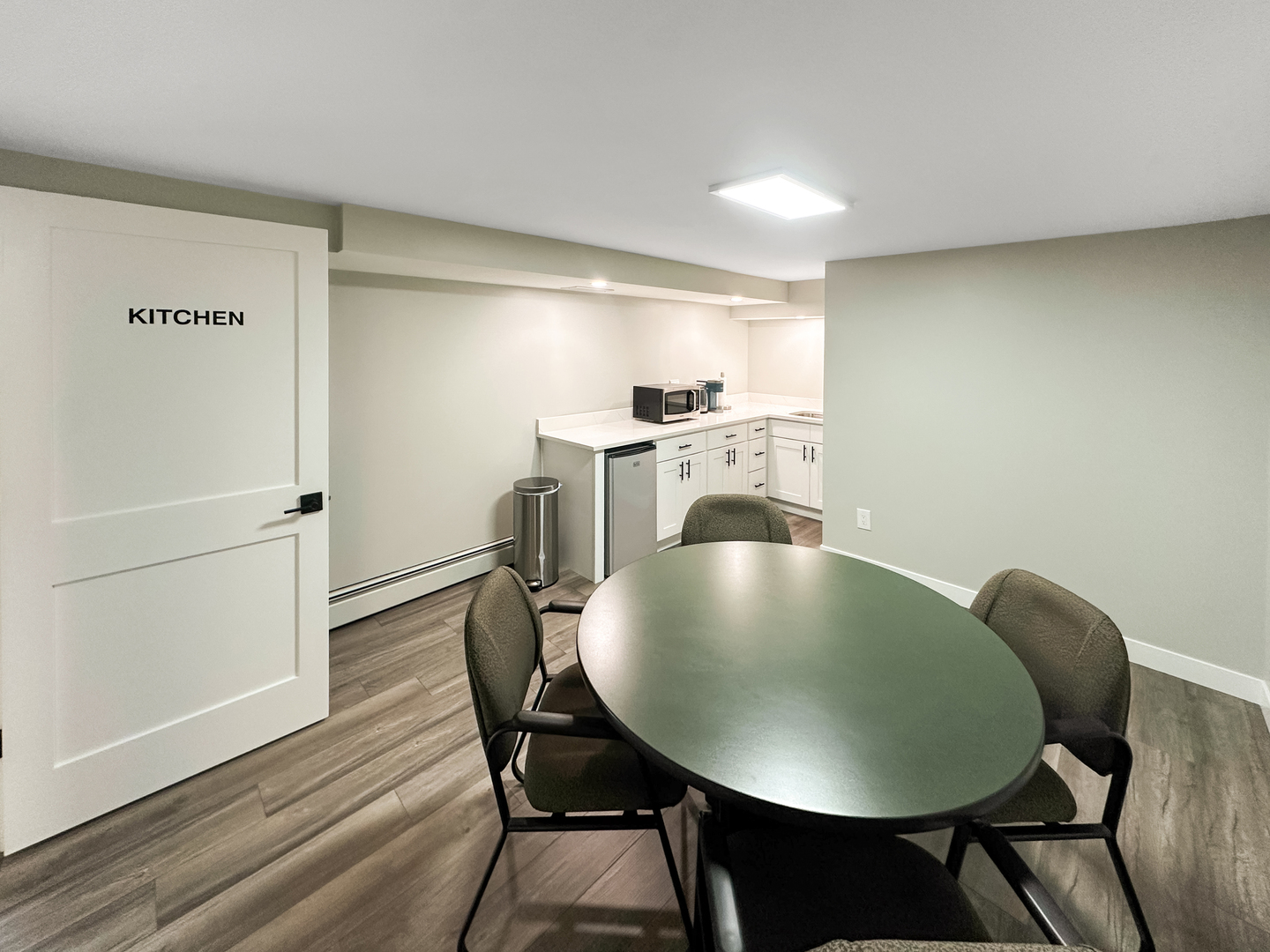 This office unit is located in downtown Geneva, across the street from the courthouse. The recently renovated unit features new flooring and fresh paint. It includes a private bathroom and access to a common kitchenette. The space is described as quiet and private. Although located on the lower level, it is bright and open.