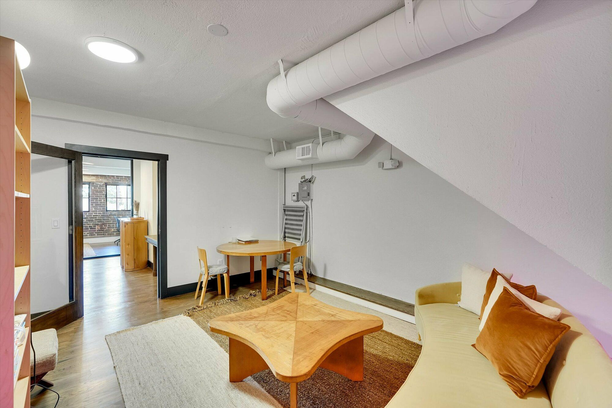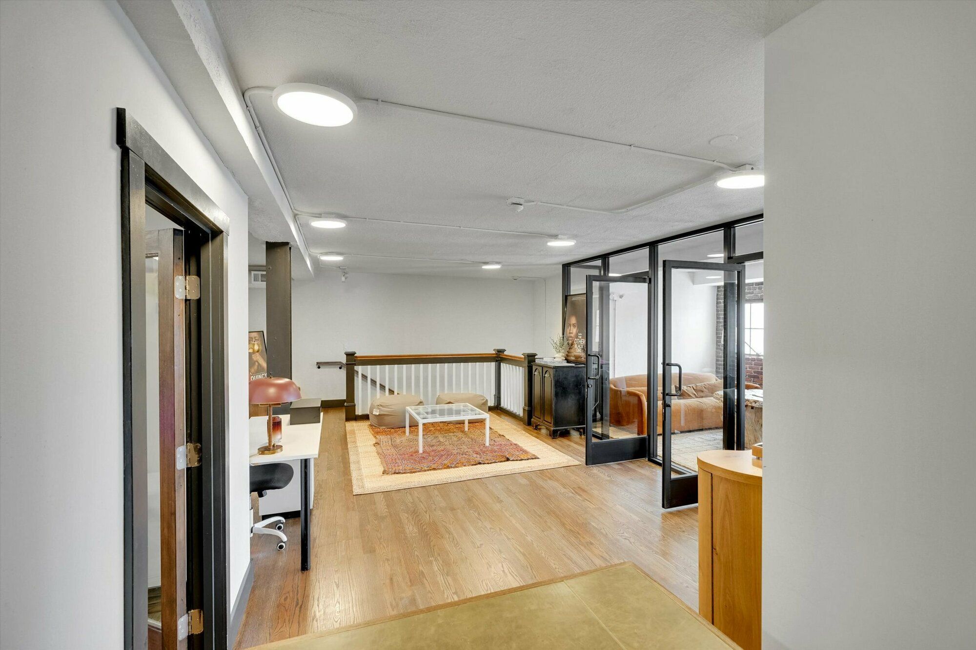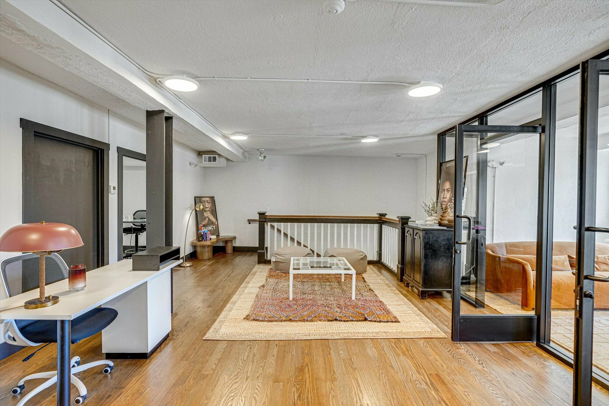 Second-floor creative office suite with private entrance and bathroom.