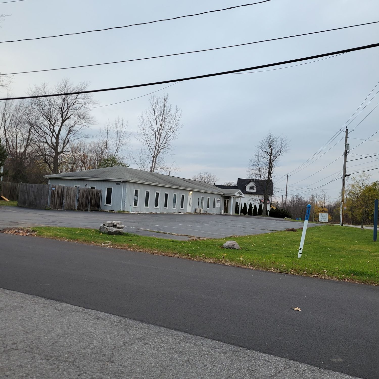 Professional office building with parking and garage near Lake Erie.