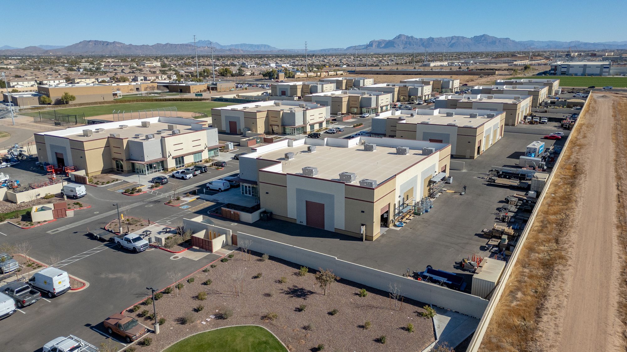 Industrial condos with yards for lease in Gilbert, Arizona.