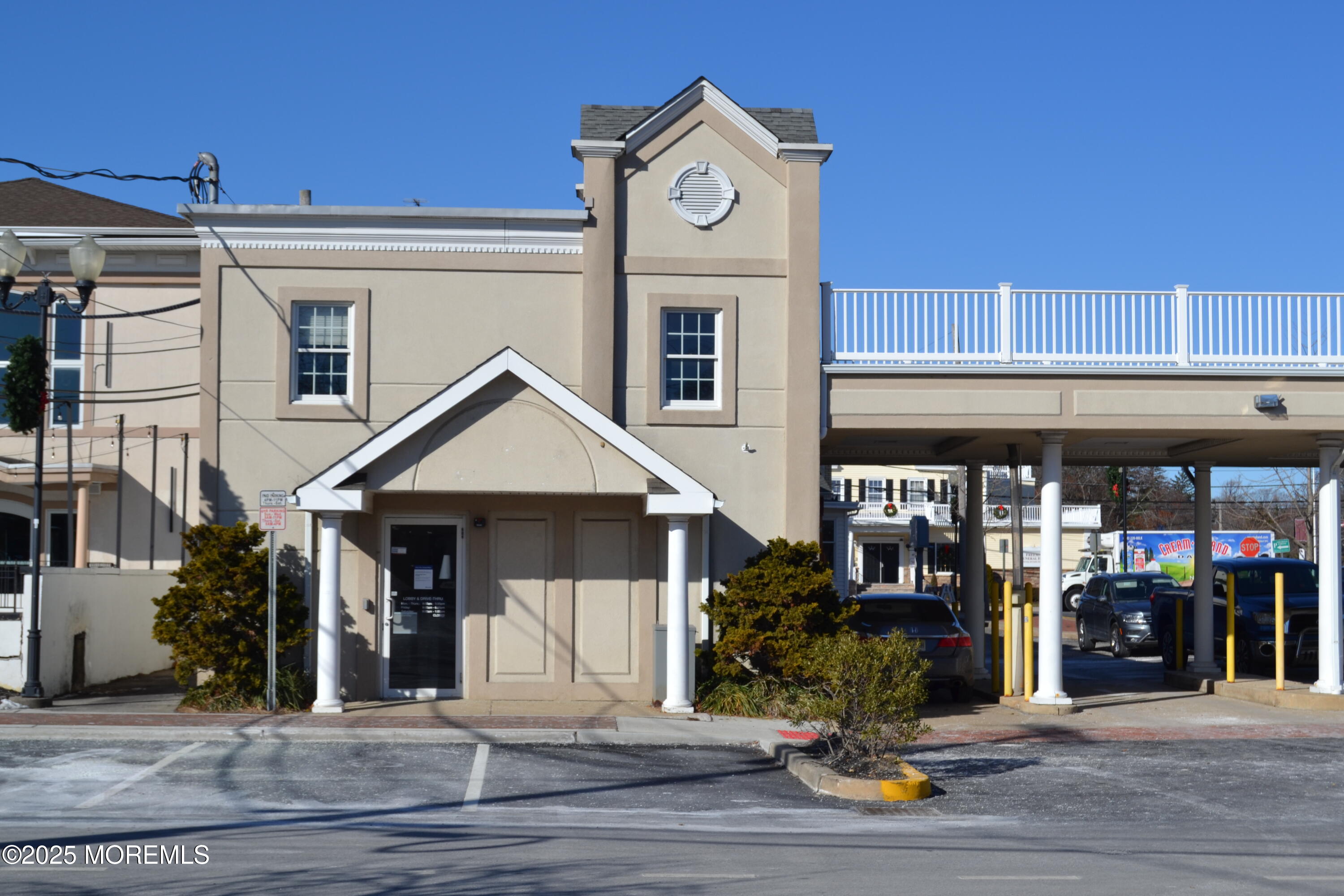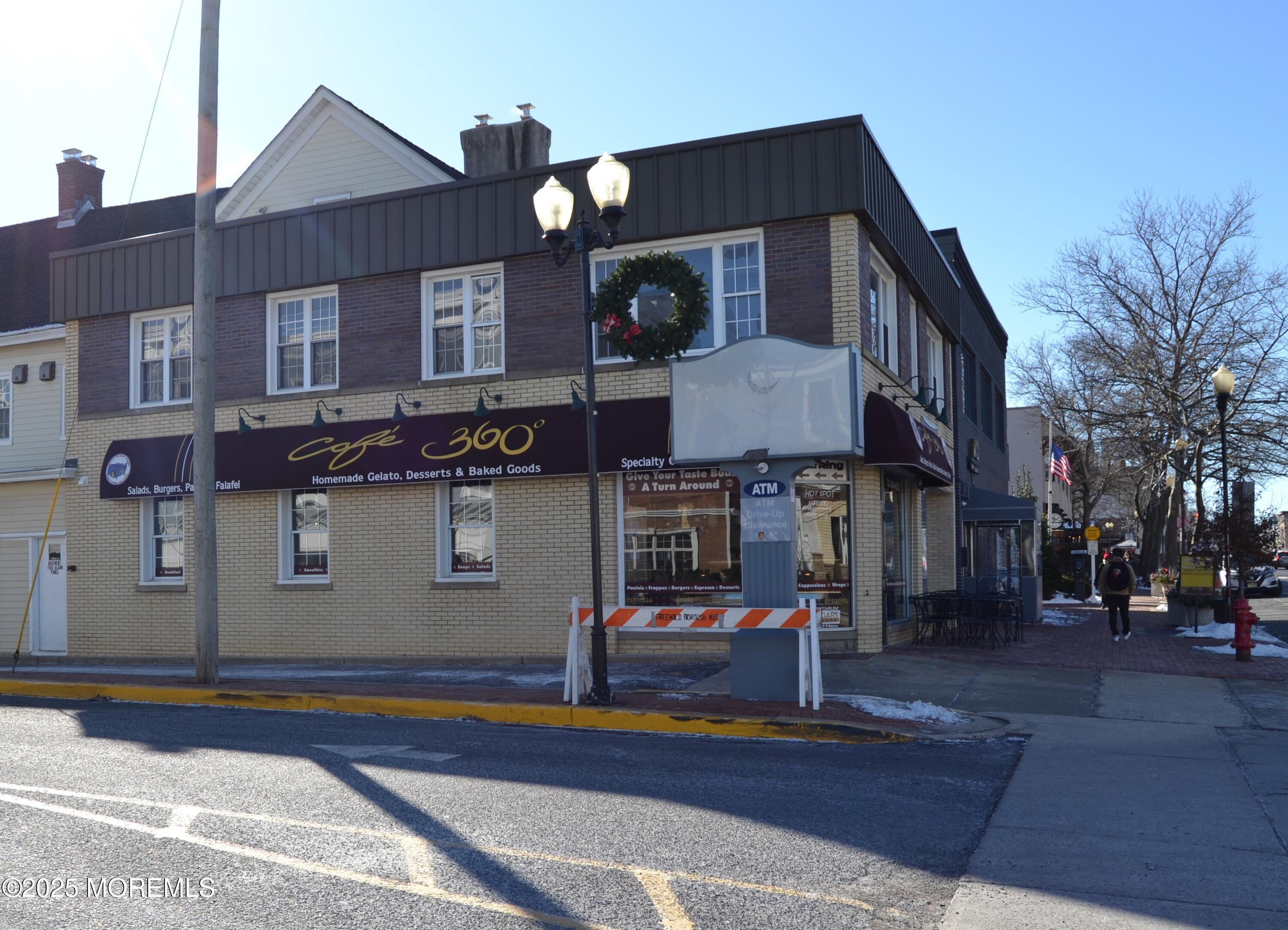 This landmark property in Freehold Borough presents an opportunity for ownership in a high-demand real estate market. Situated on Main Street in downtown Freehold Borough, the County Seat of Monmouth County, the property features two separate buildings on an 8,799 square foot lot. The location benefits from ample public parking, including a large municipal parking lot adjacent to the site. One of the buildings is a former bank, encompassing 3,300 square feet across two stories and includes three drive-up lanes. The second building houses two retail stores fronting Main Street. One store offers 1,900 square feet with an additional basement, while the second store provides 660 square feet. The second story of the building contains 2,400 square feet of space that was formerly office space. There is a possibility to convert both second-story spaces into residential apartments, offering redevelopment potential.