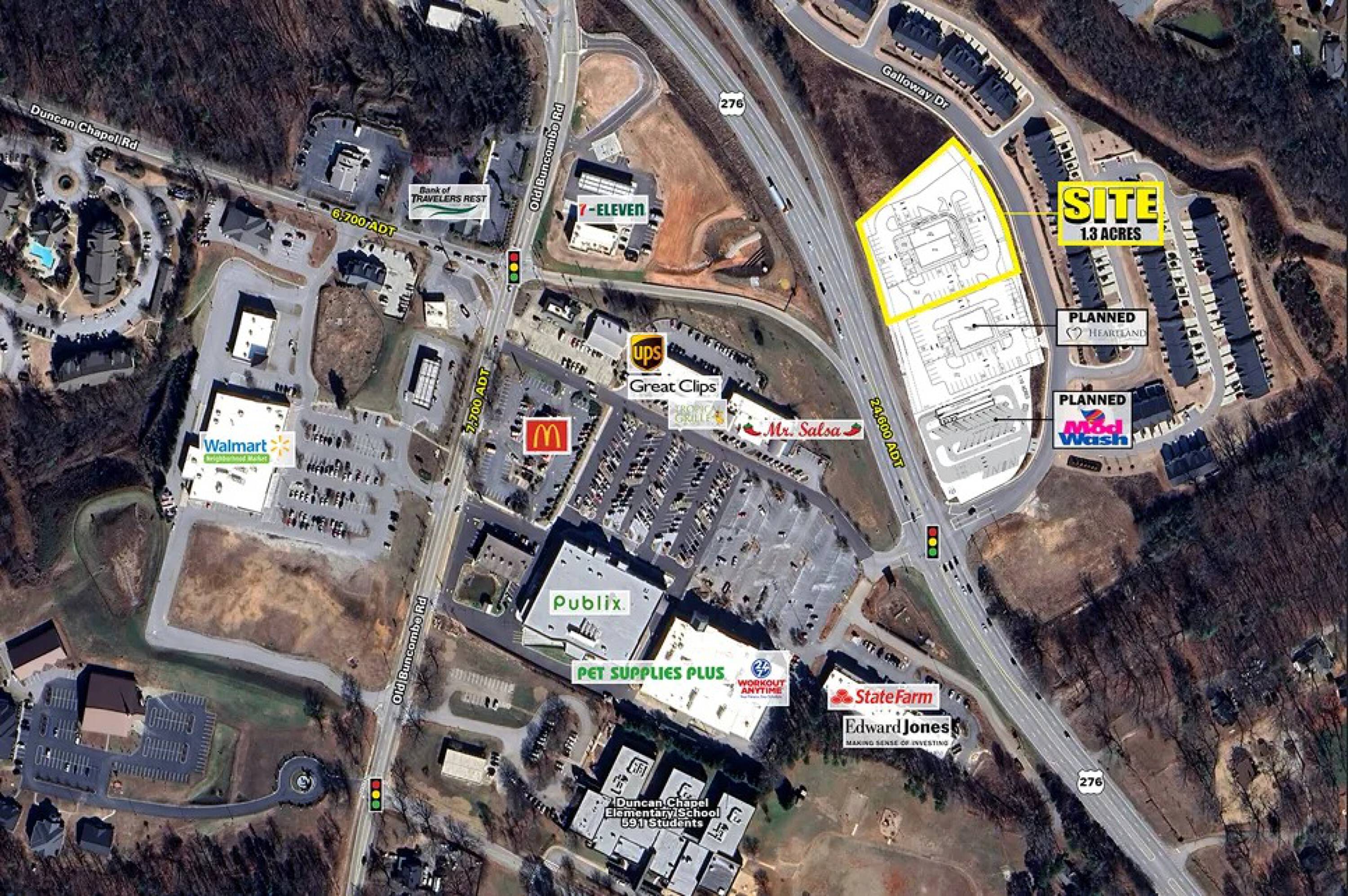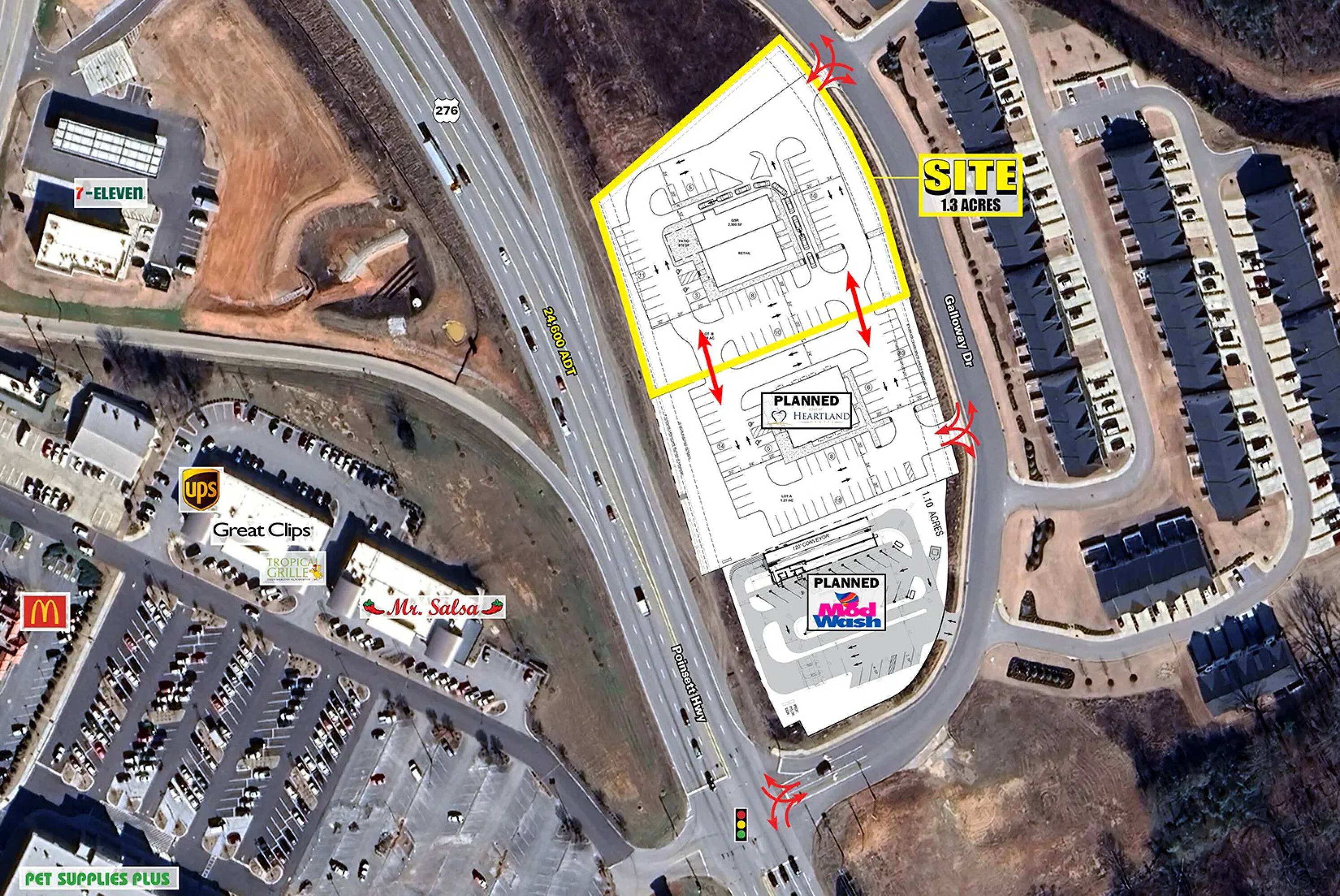 Approximately 1.3 acres of commercial land available for sale or lease.