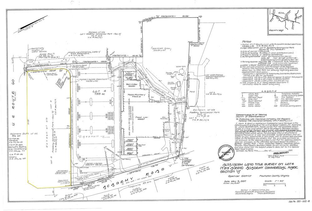 This property features: Over 550’ of direct frontage on Anderson Highway (Route 60), Powhatan’s major thoroughfare.; Fronting Powhatan Plaza, a Food Lion anchored shopping center.; 4‑Way controlled signalized intersection.