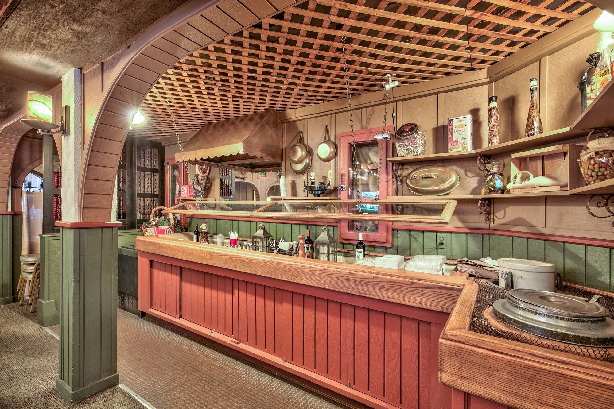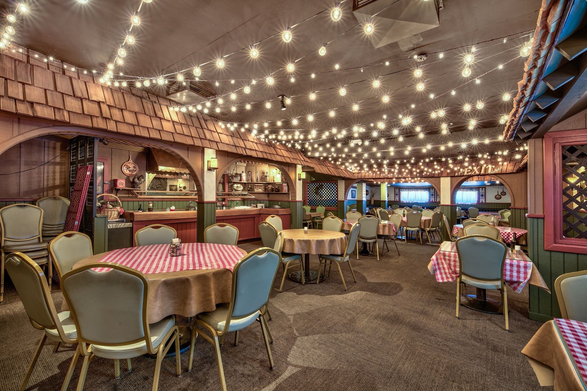 Restaurant space with cocktail lounge, bar, and commercial kitchen.