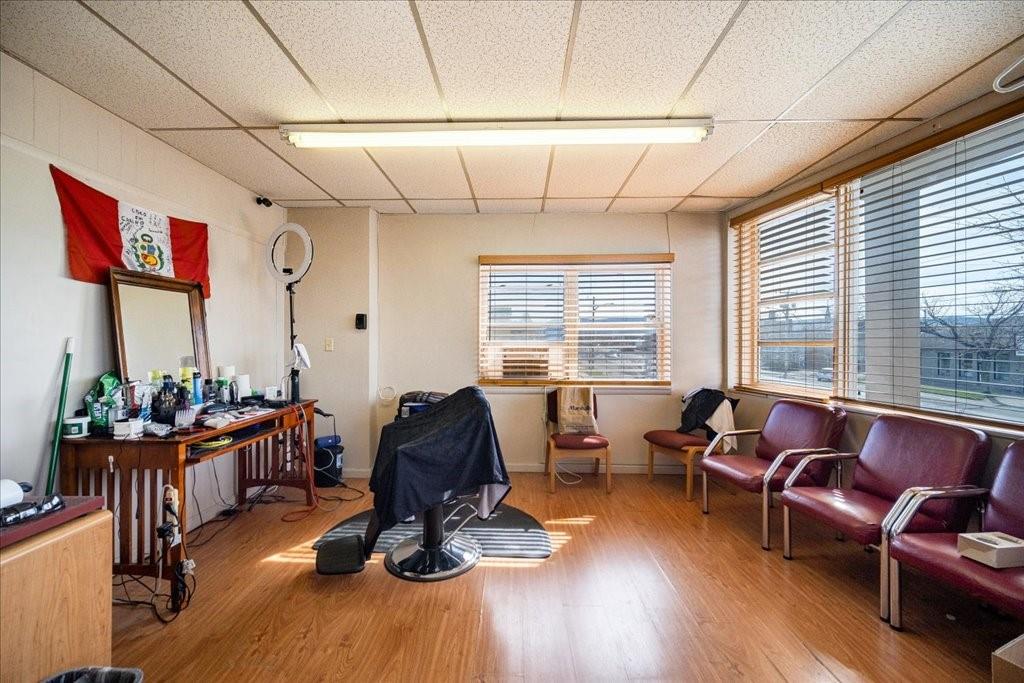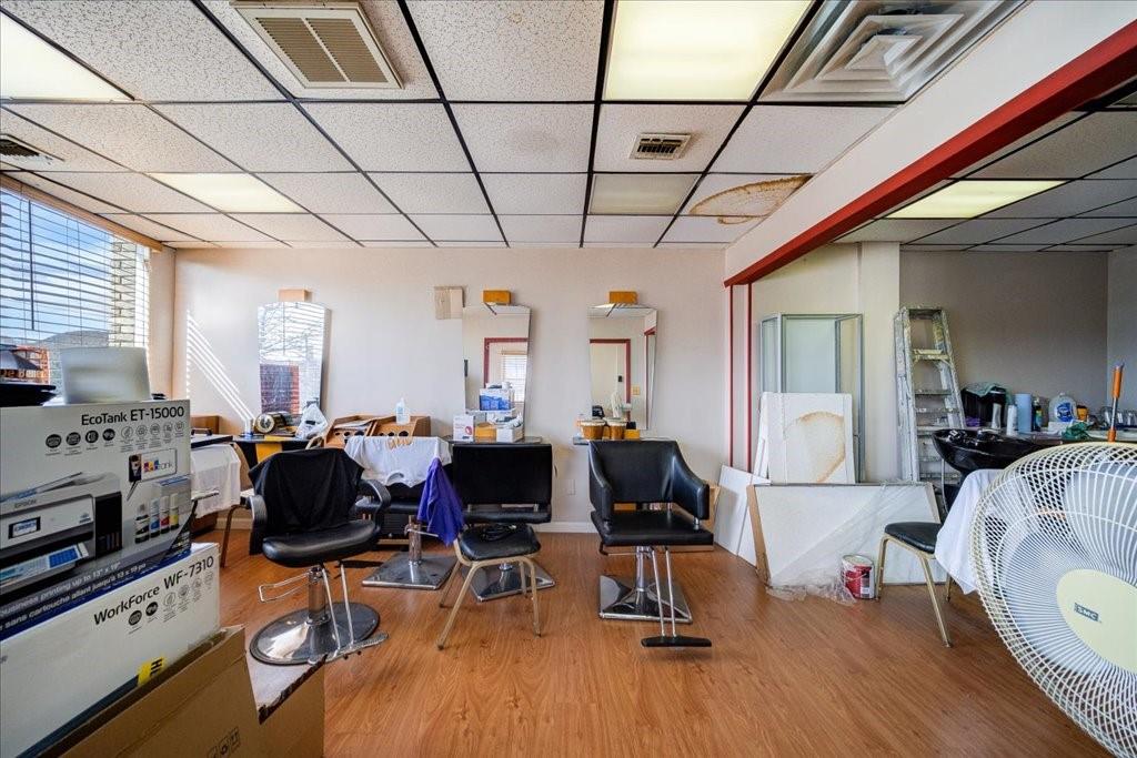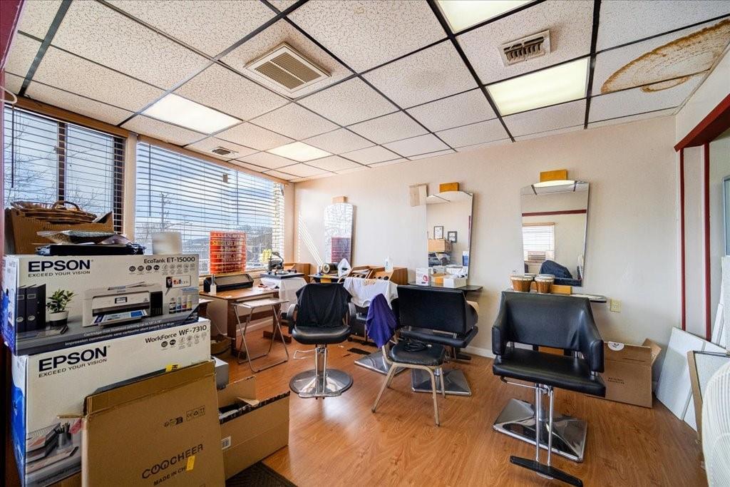 Commercial building with restaurant, salon, and office spaces for sale.