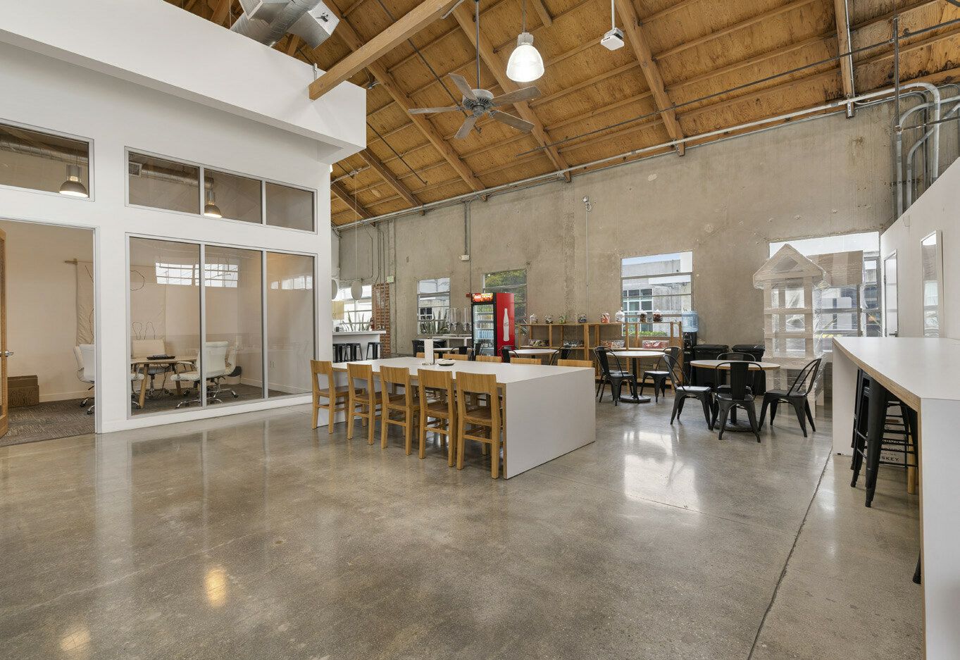 This property features: Freestanding creative office building in the heart of Hayden Tract.; **High, exposed bow truss ceilings (14 ft. to bottom, 24 ft. to top).**; Multiple loading doors: 3 ground level and 3 dock high.