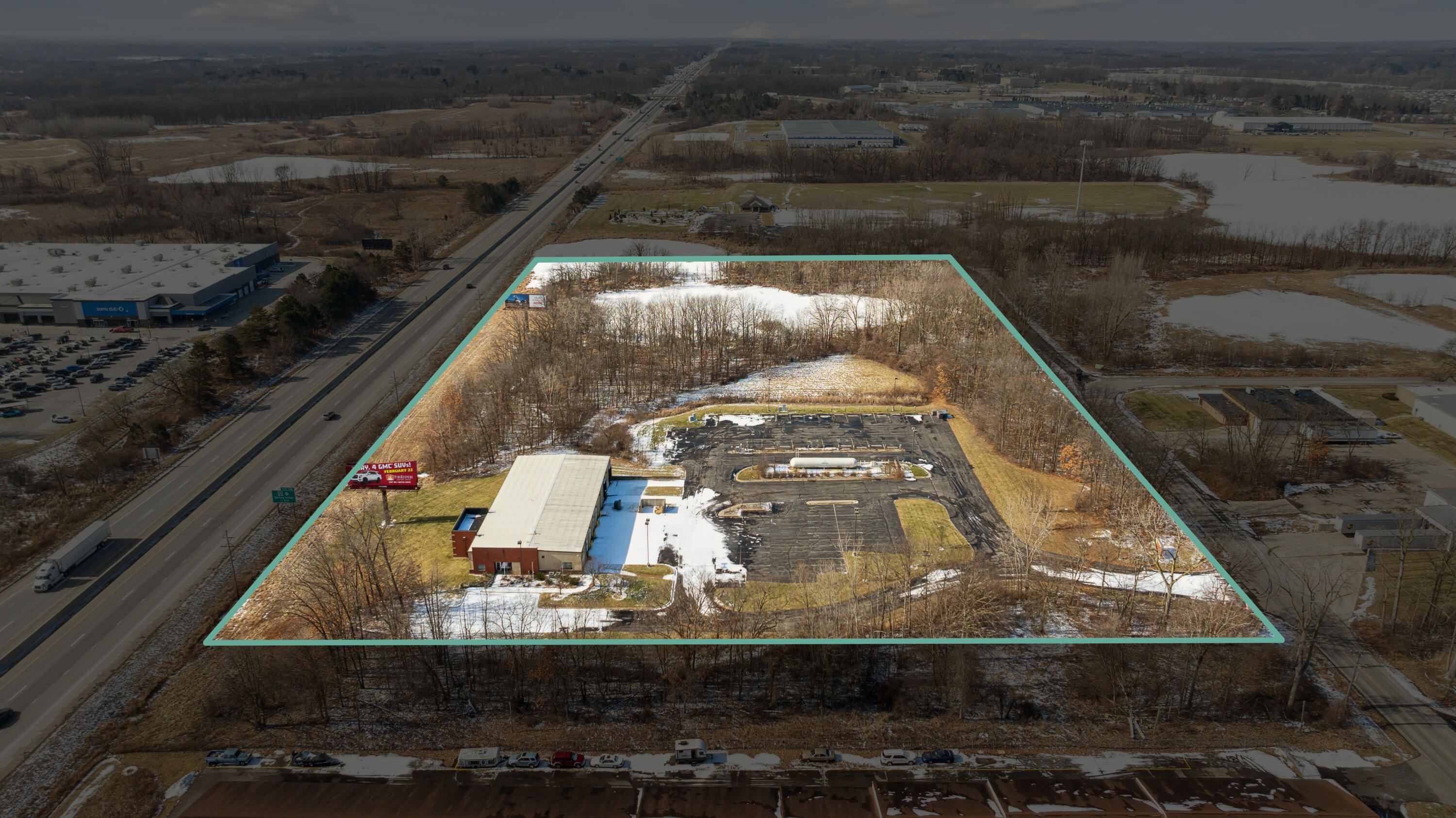 Distribution center with high visibility on 15 acres for sale.