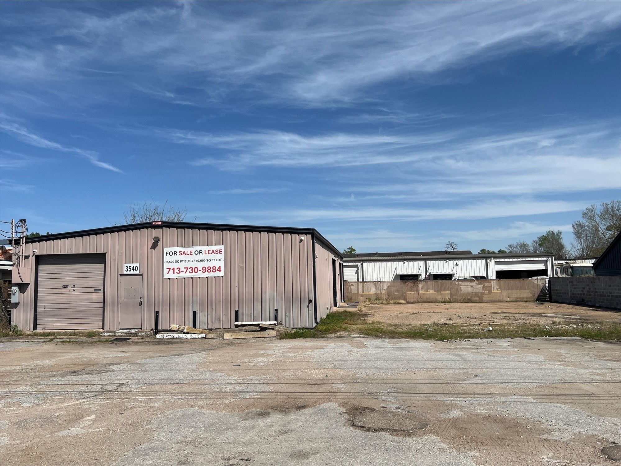 2,600 SF warehouse on 0.25 acres near The Heights.