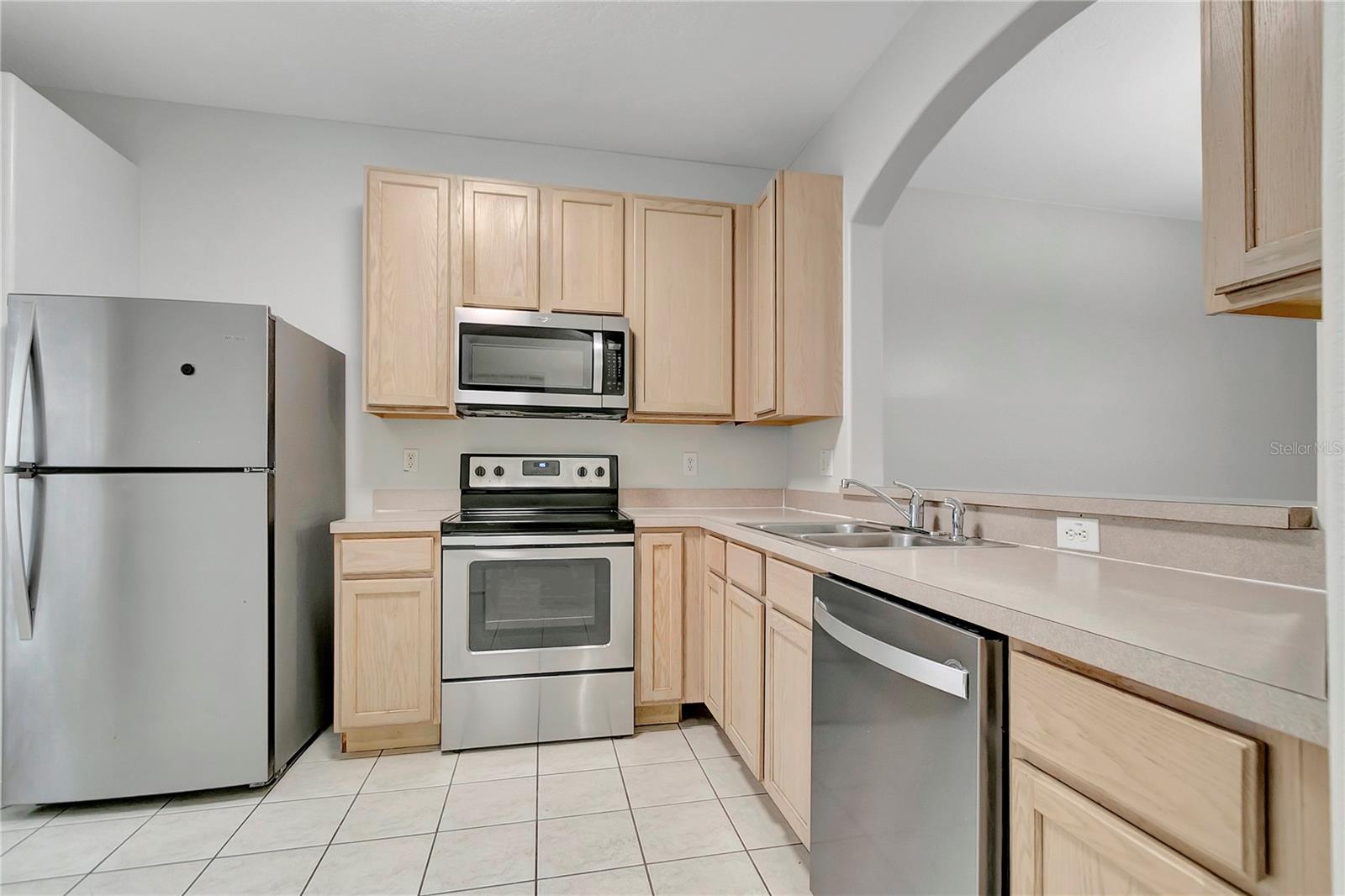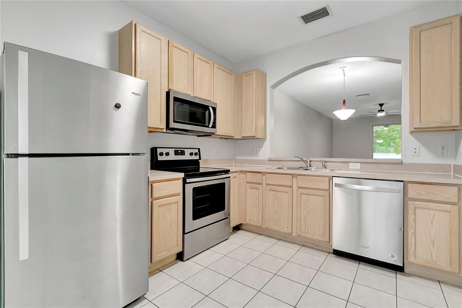 Two-bedroom townhome with stainless appliances, pond view, and community pool.