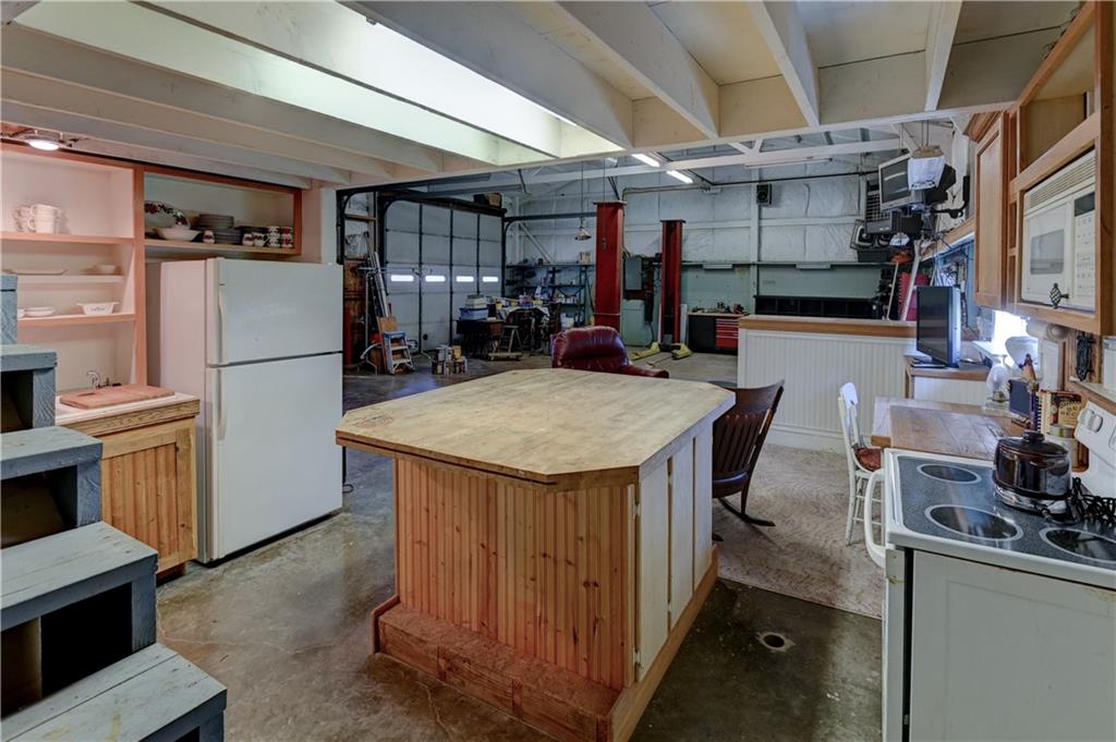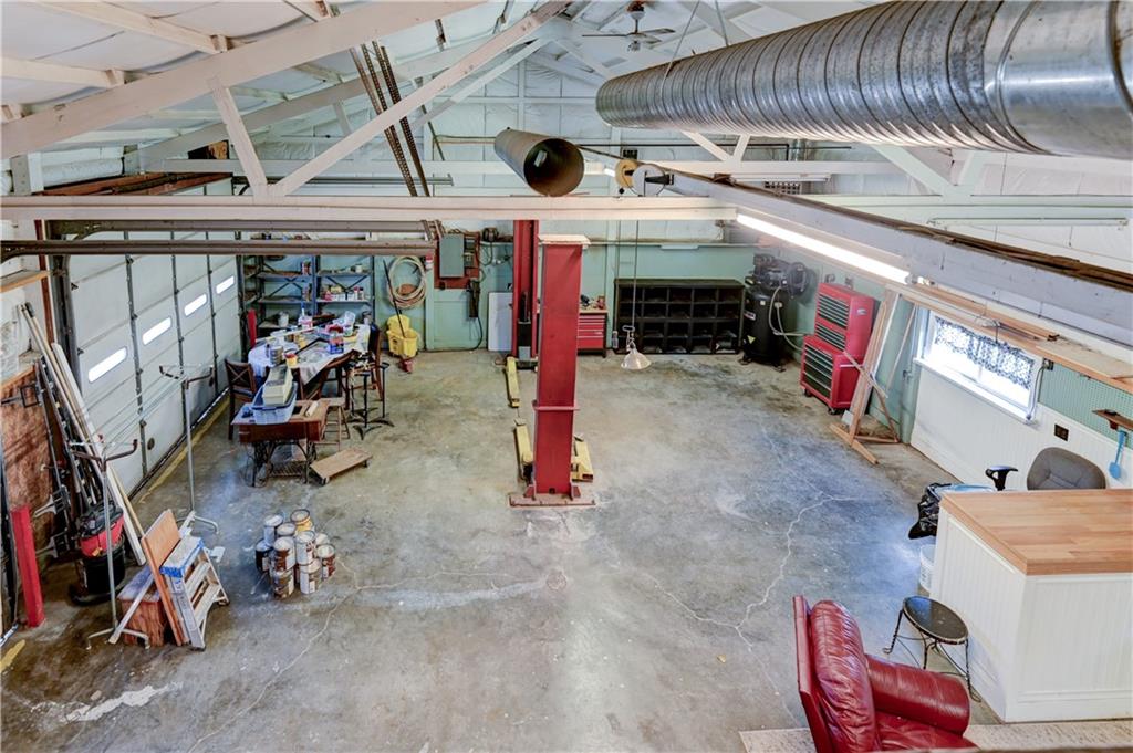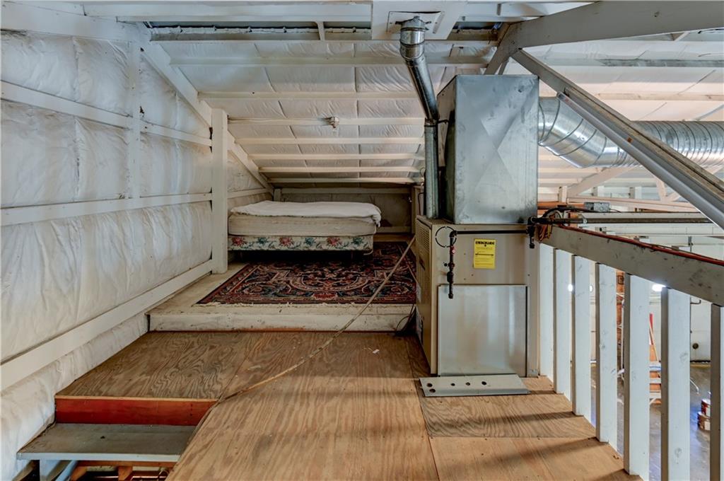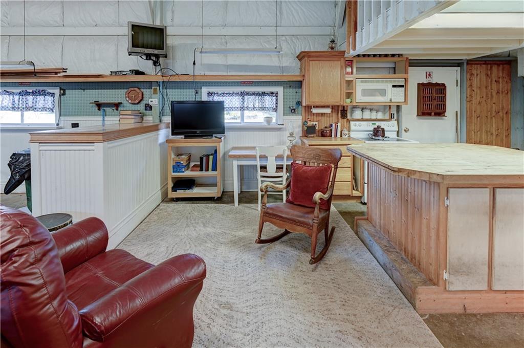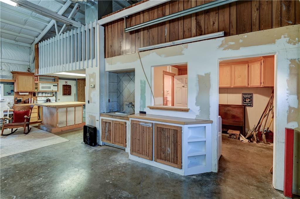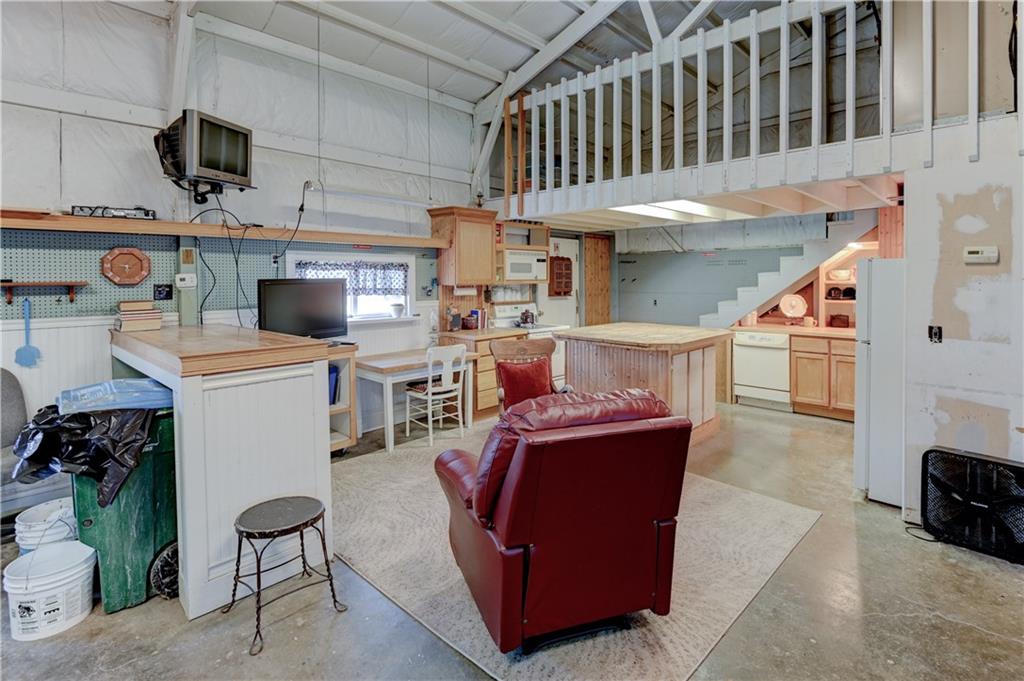 Open metal building with expandable loft, kitchen, and bathroom.