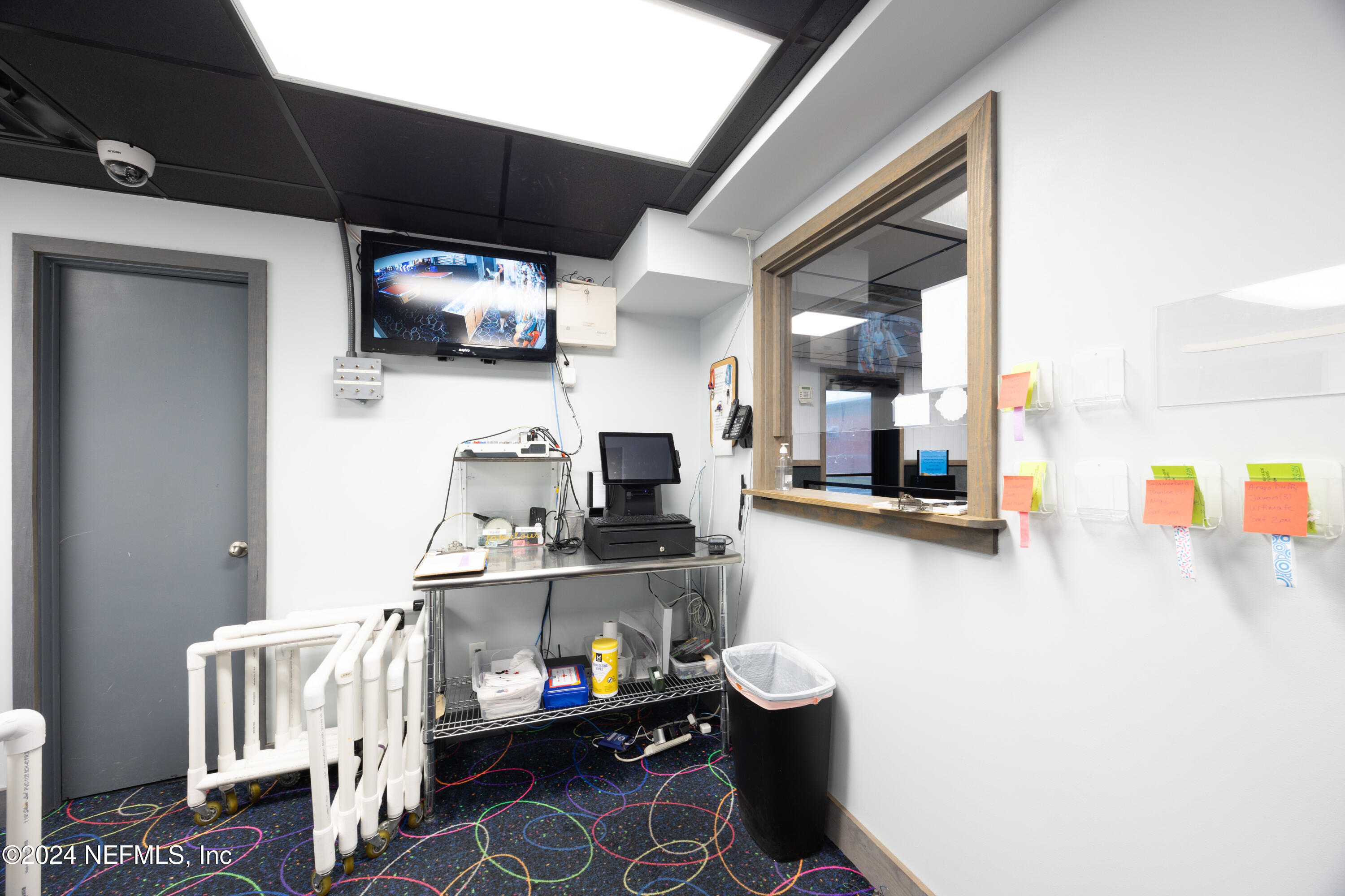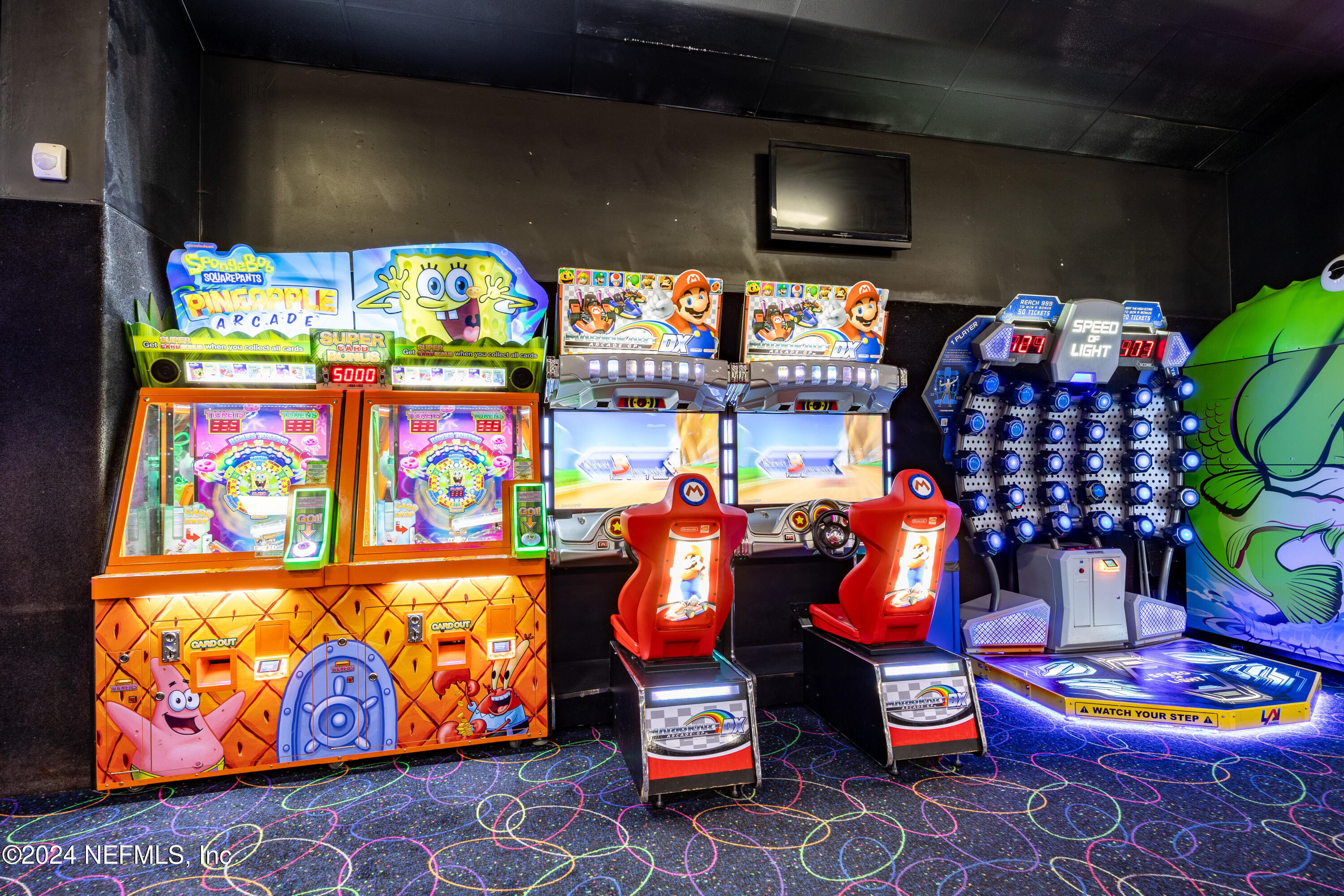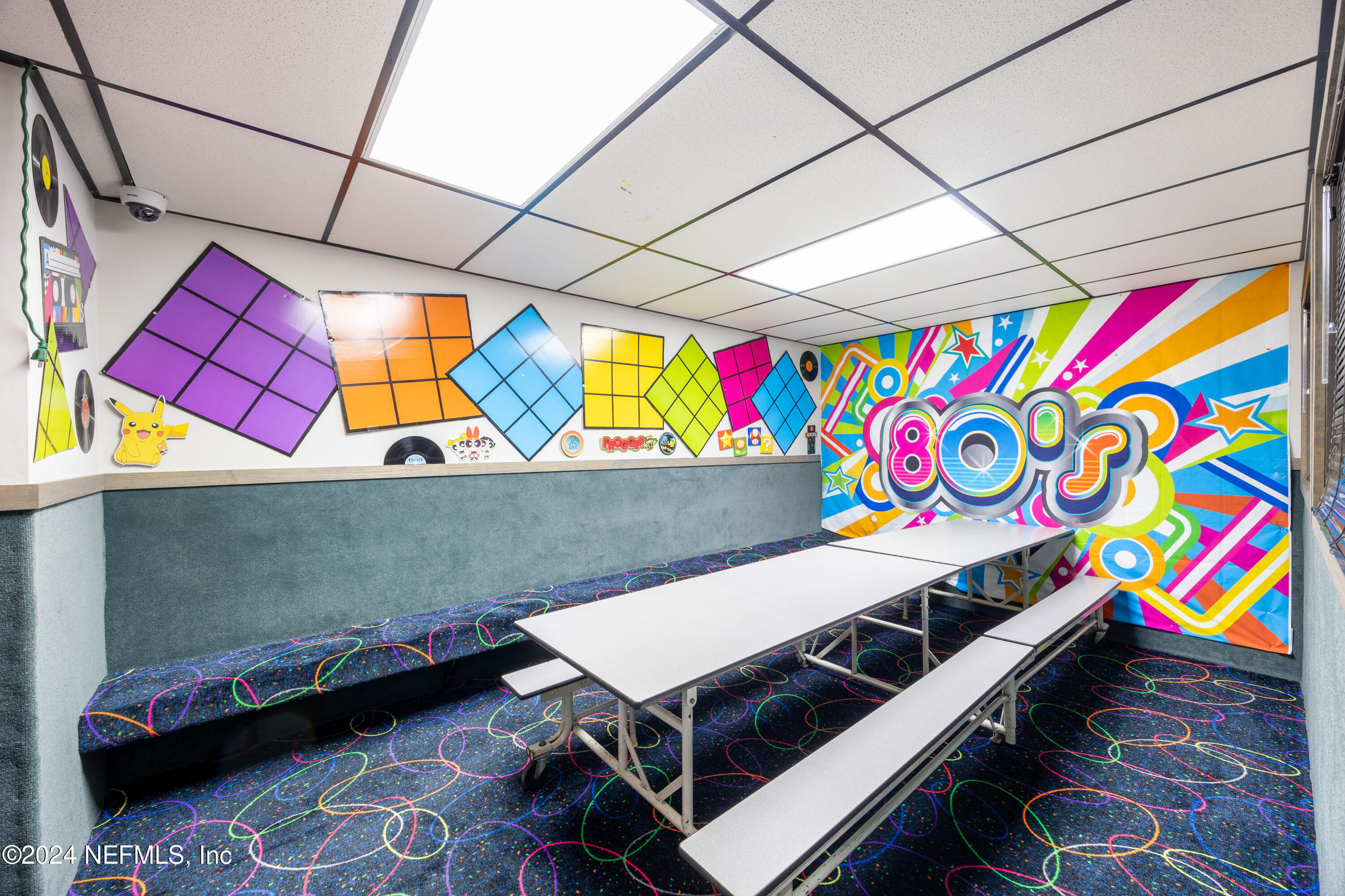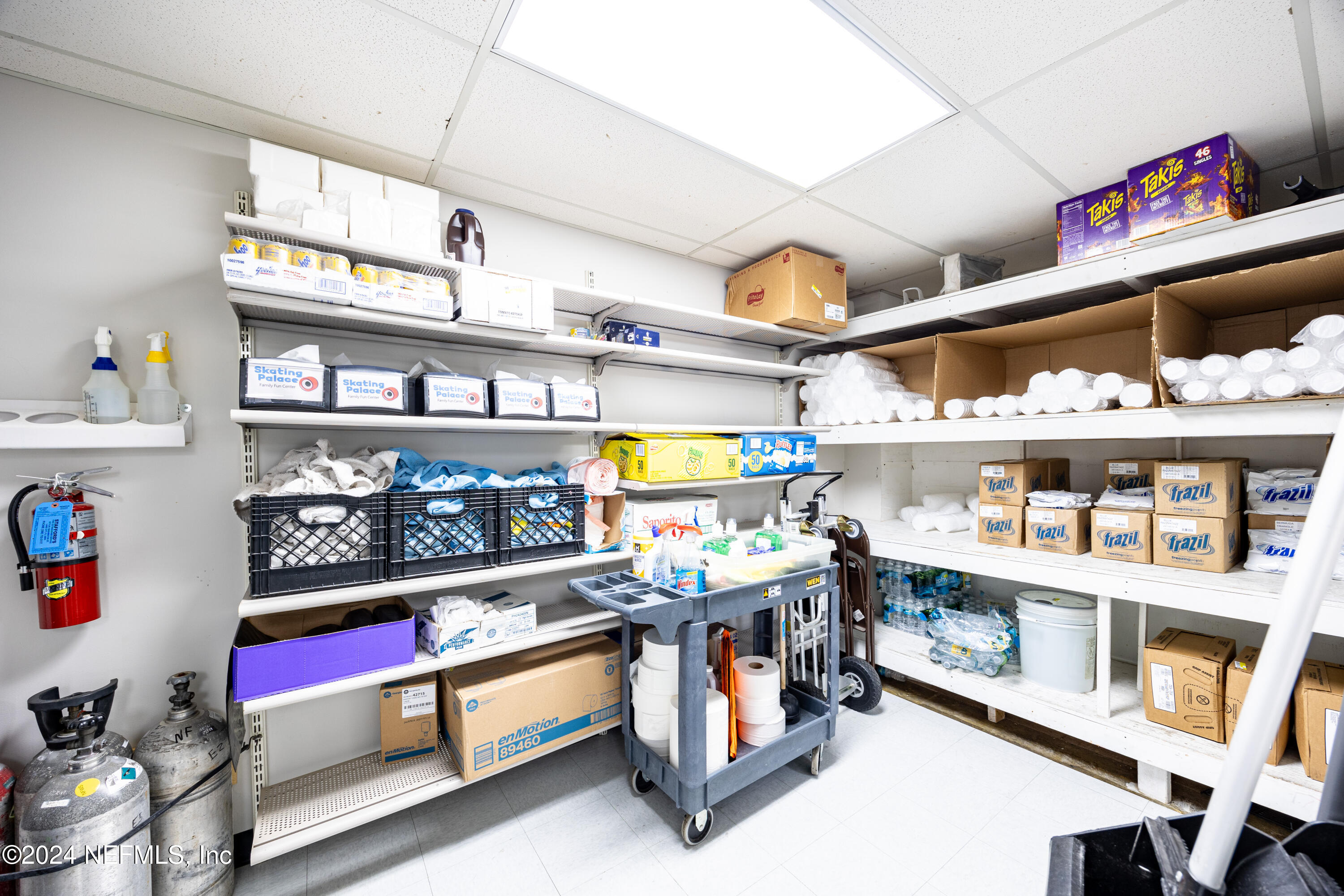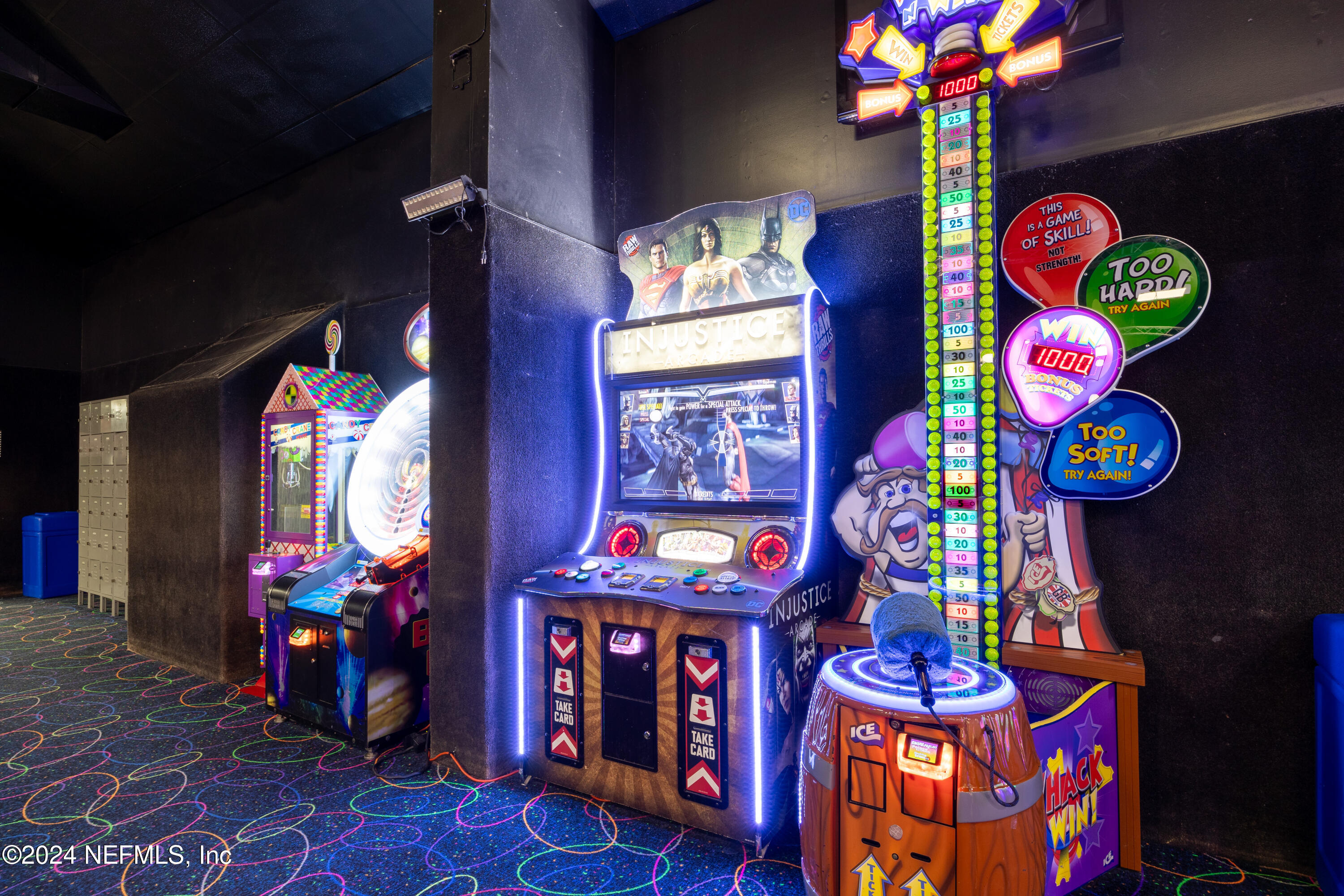 Spacious skating rink with snack bar and arcade games.