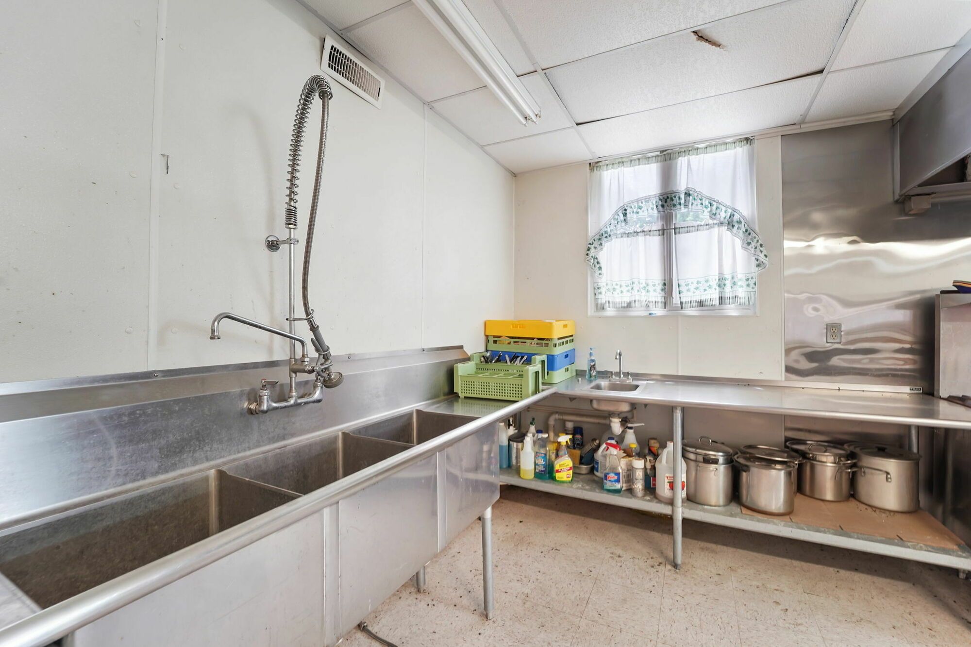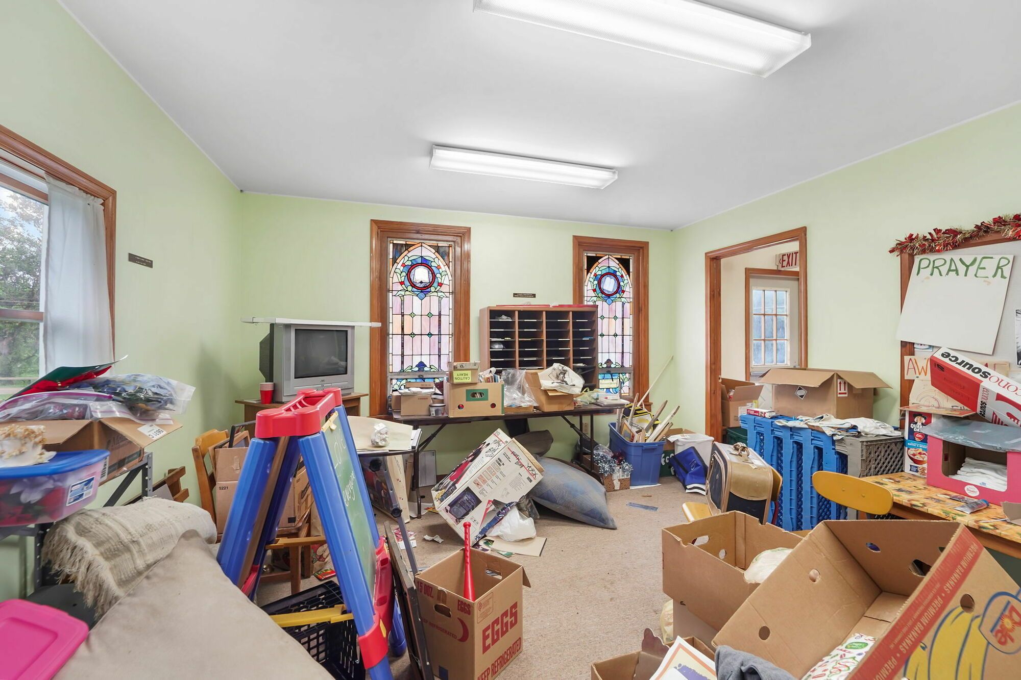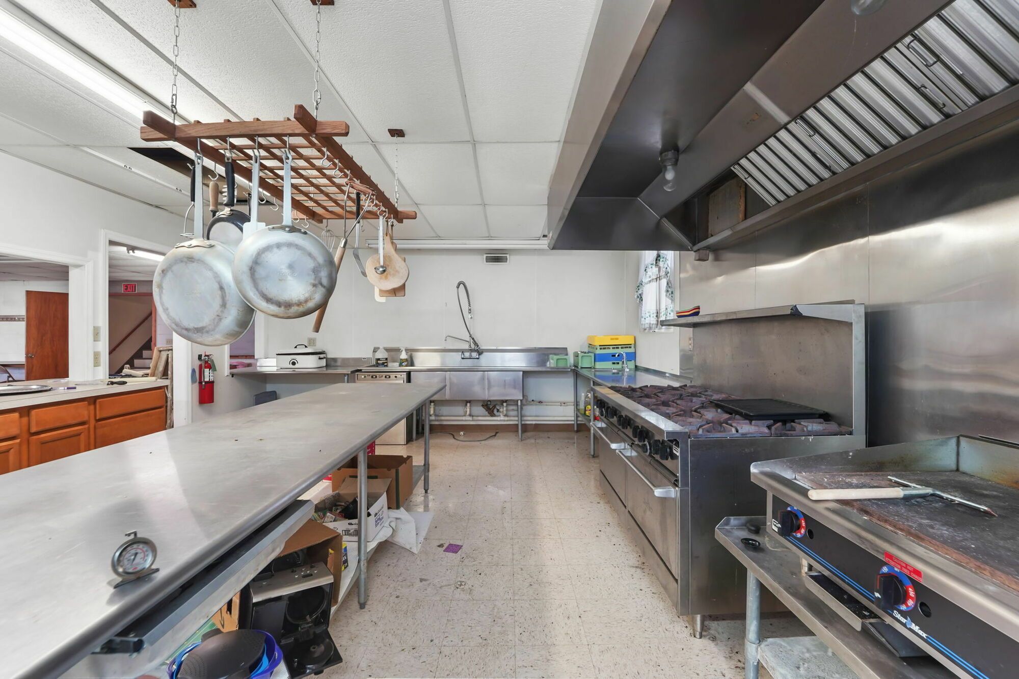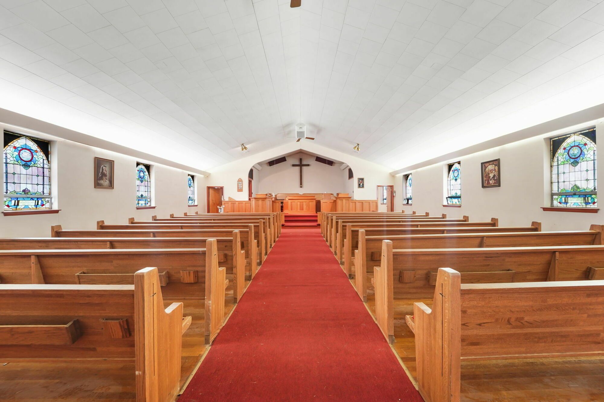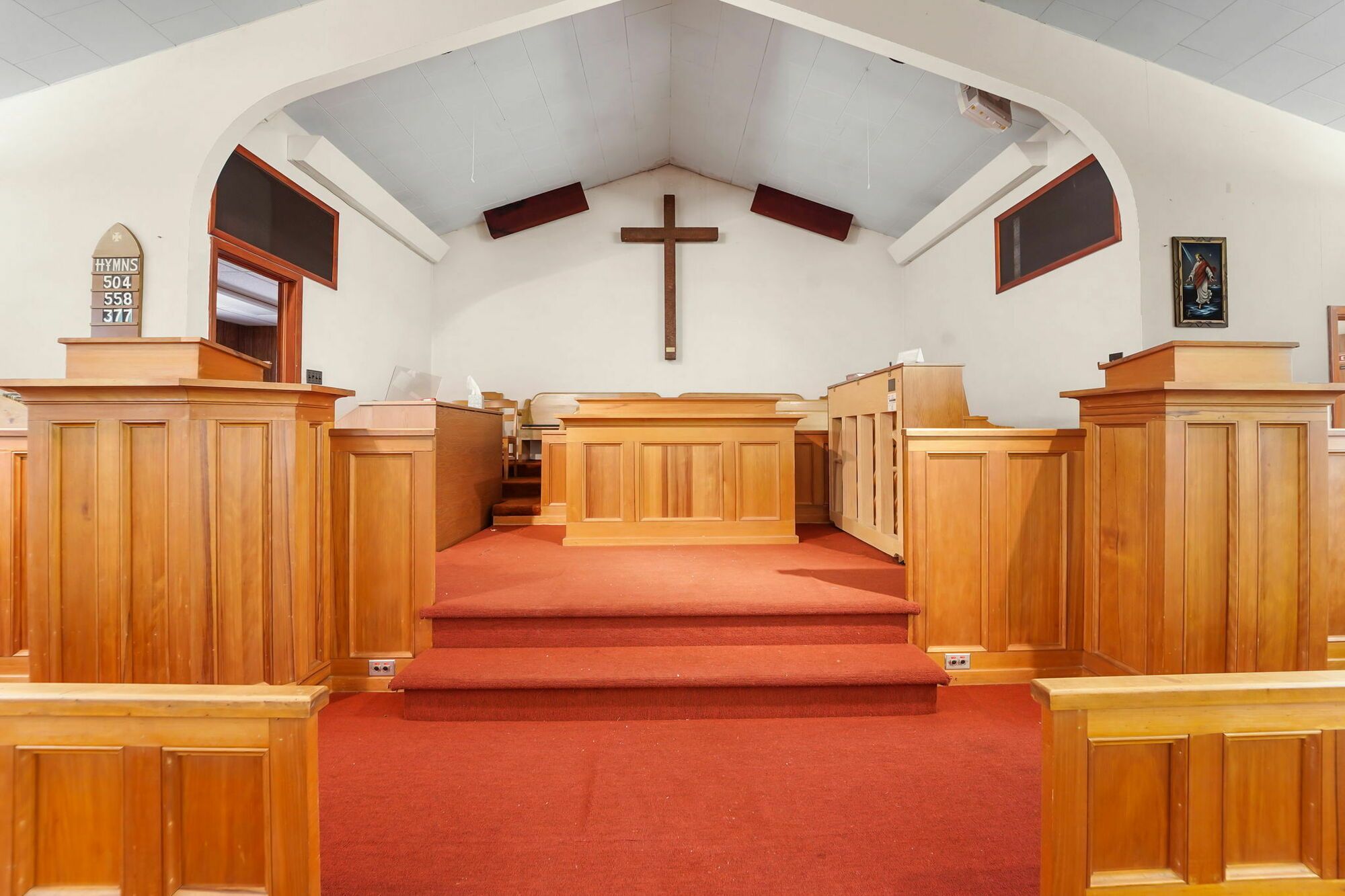 Spacious church with commercial kitchen and ample parking.