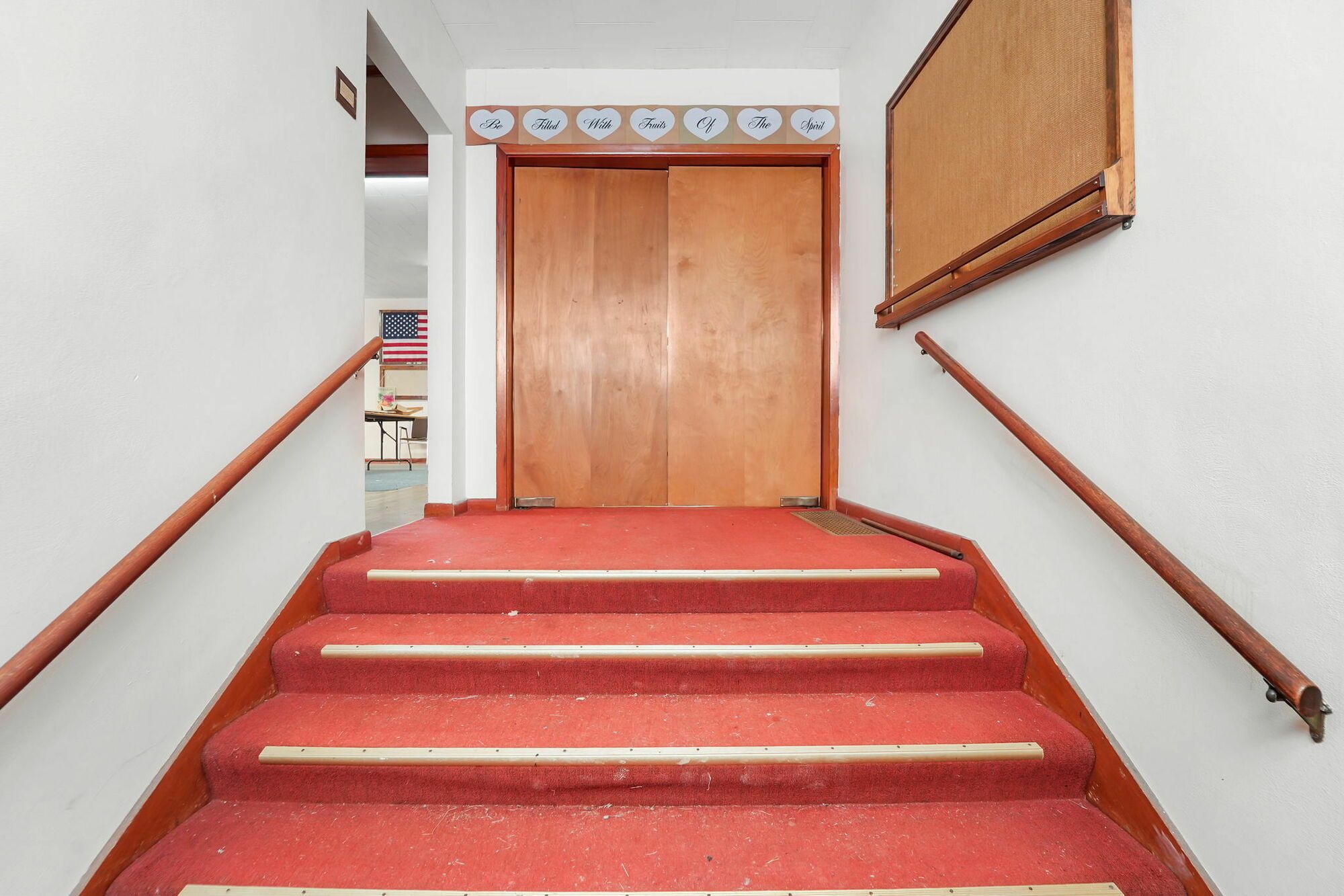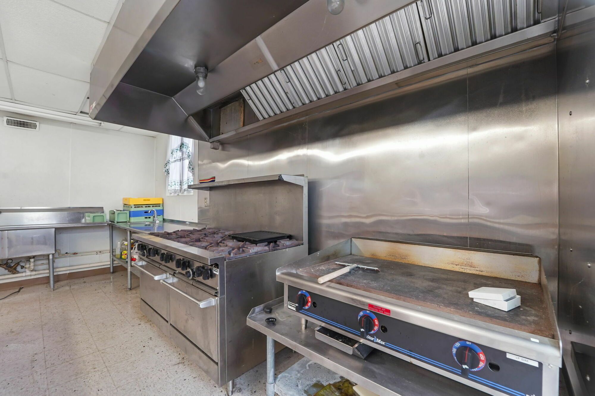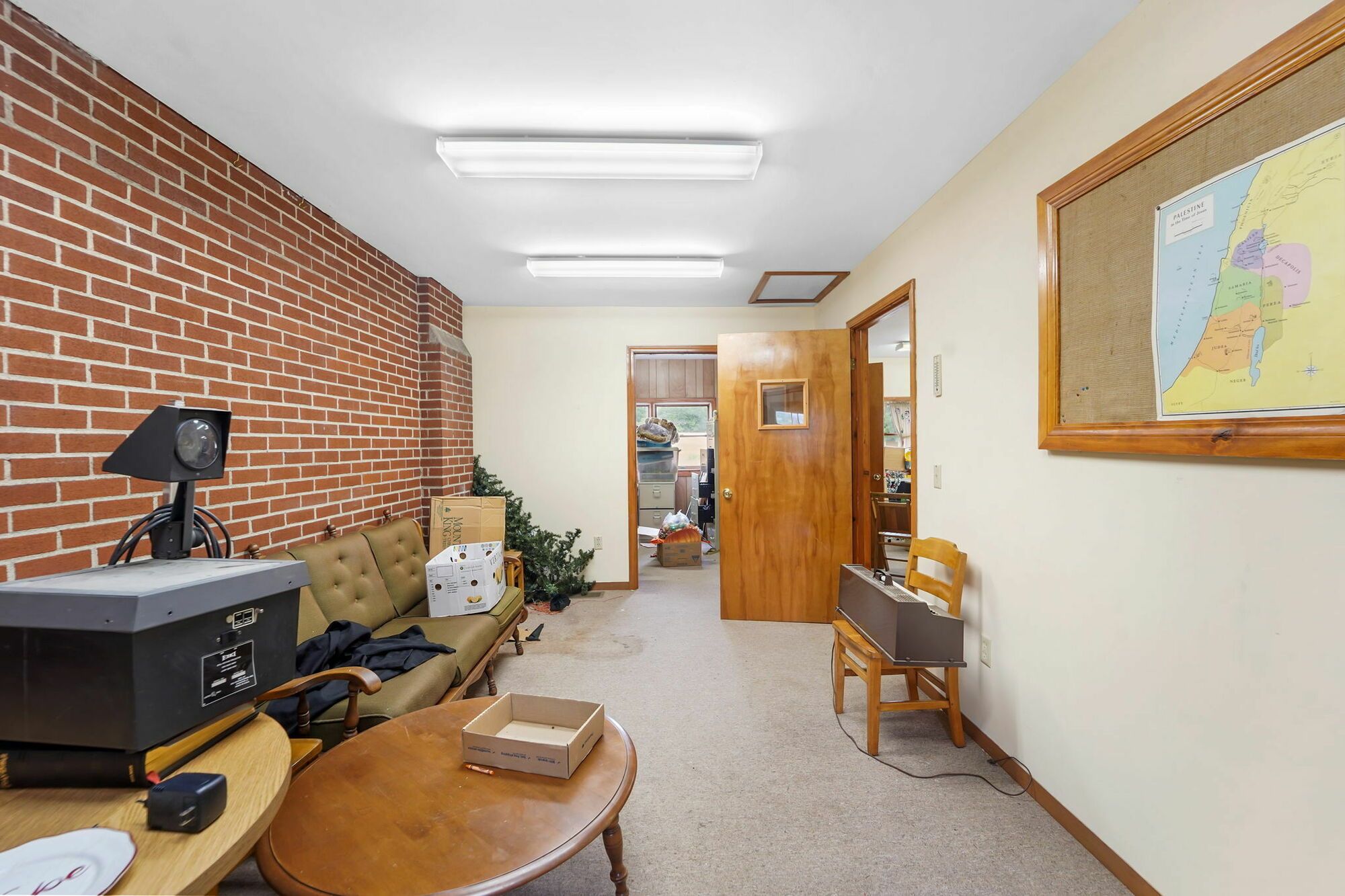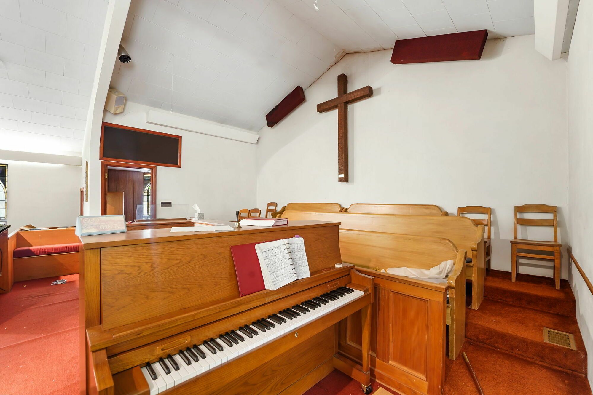 Spacious church with commercial kitchen and ample parking.