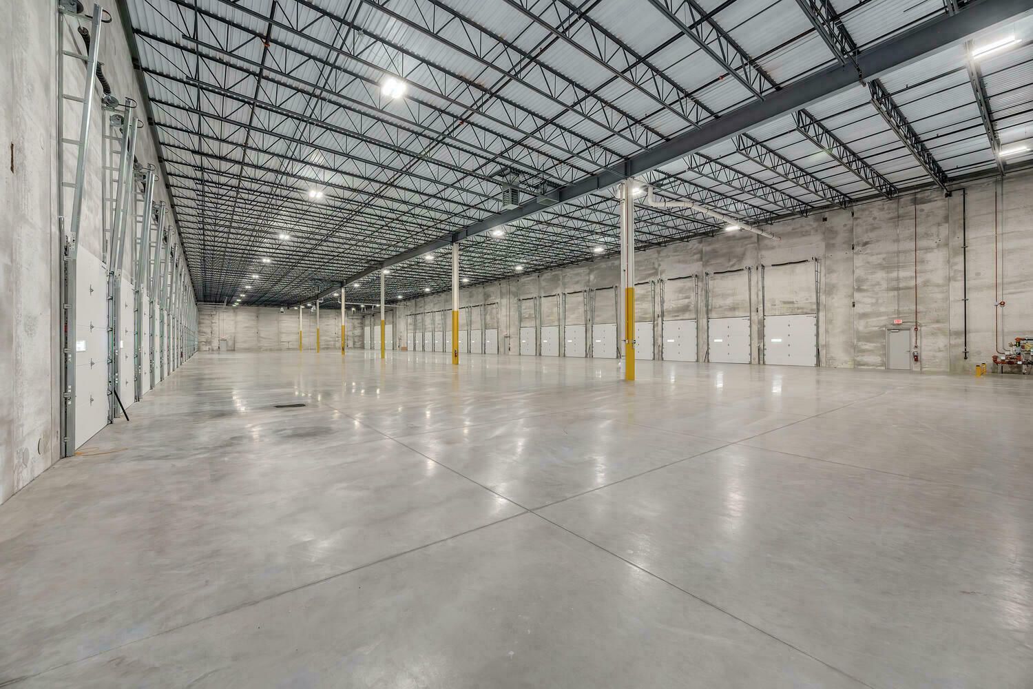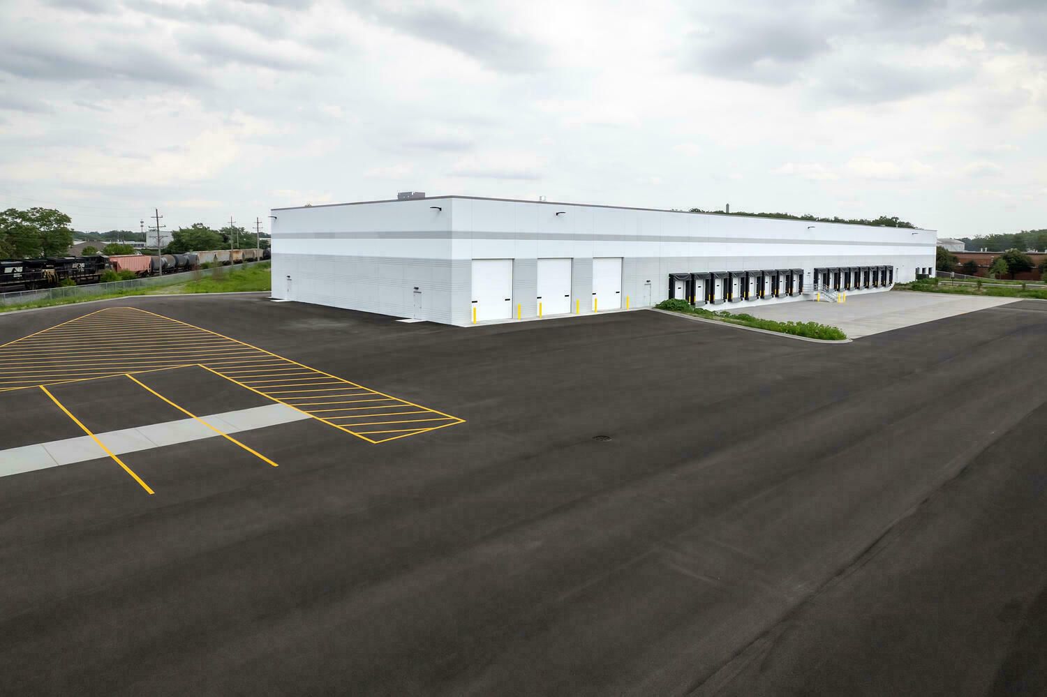 New construction warehouse with trailer parking and maintenance bays.
