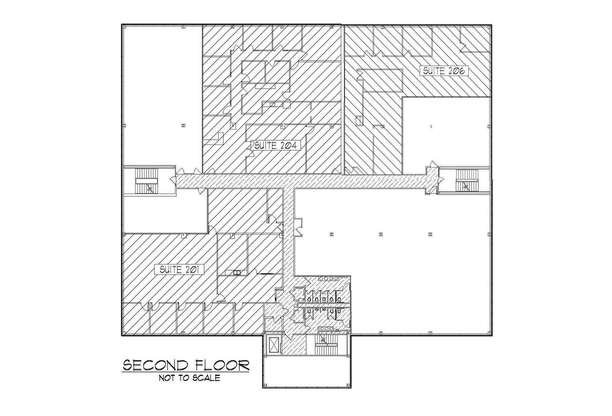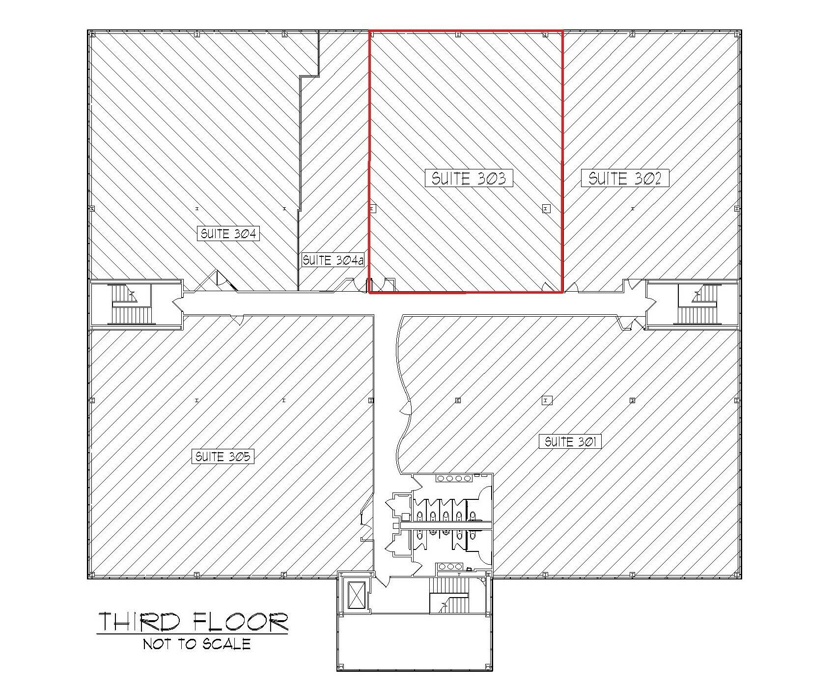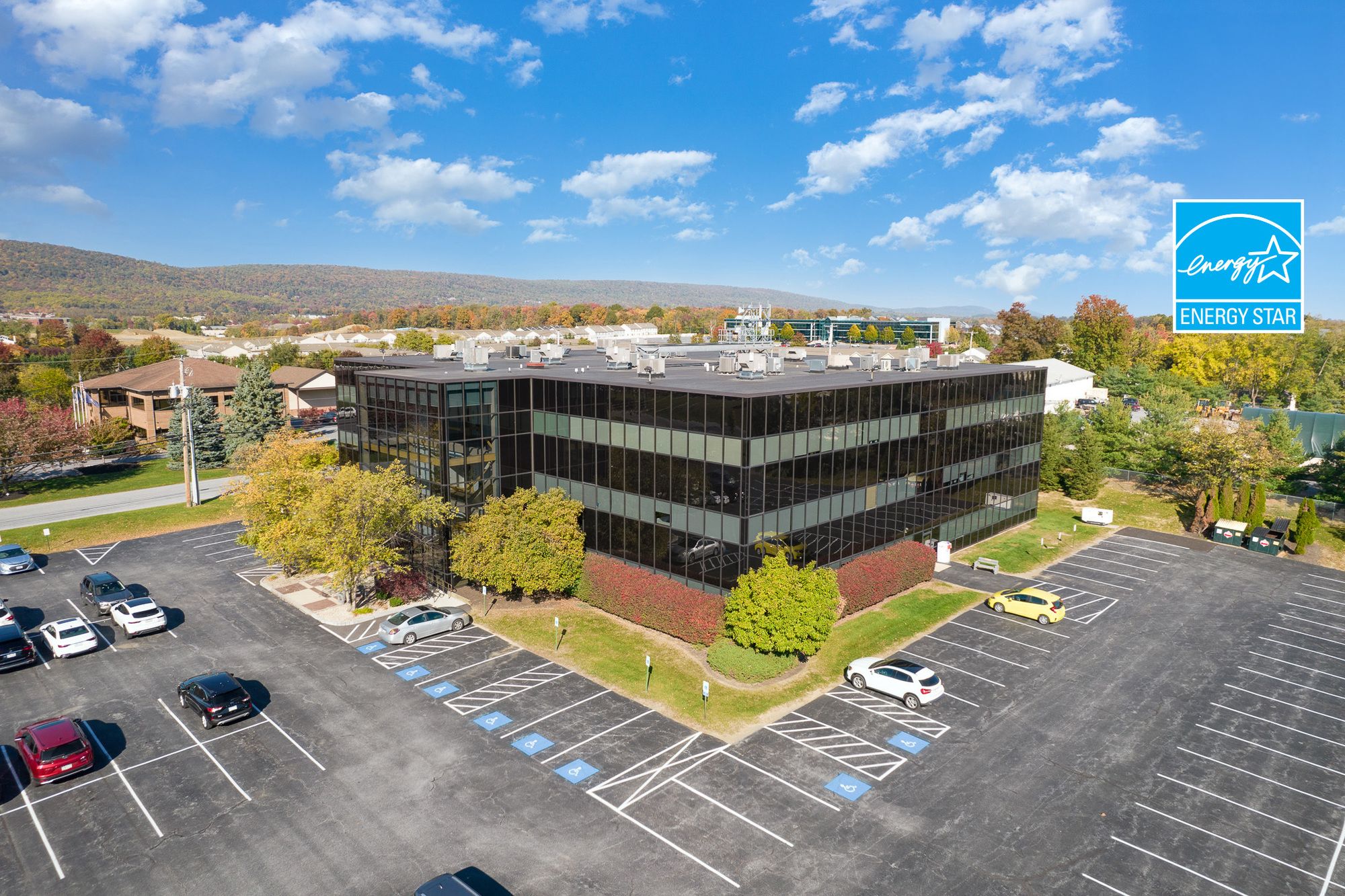 Three-story office building with ample parking and convenient highway access.